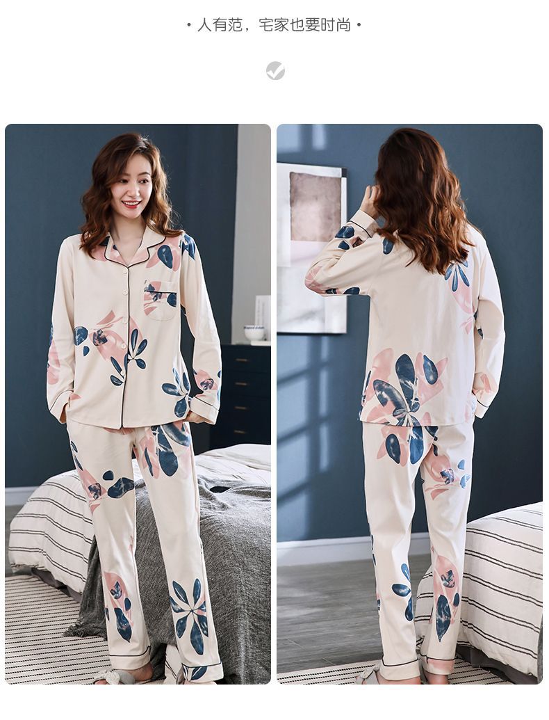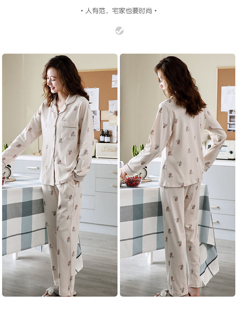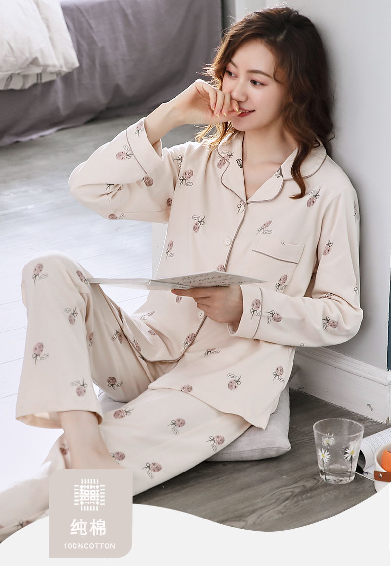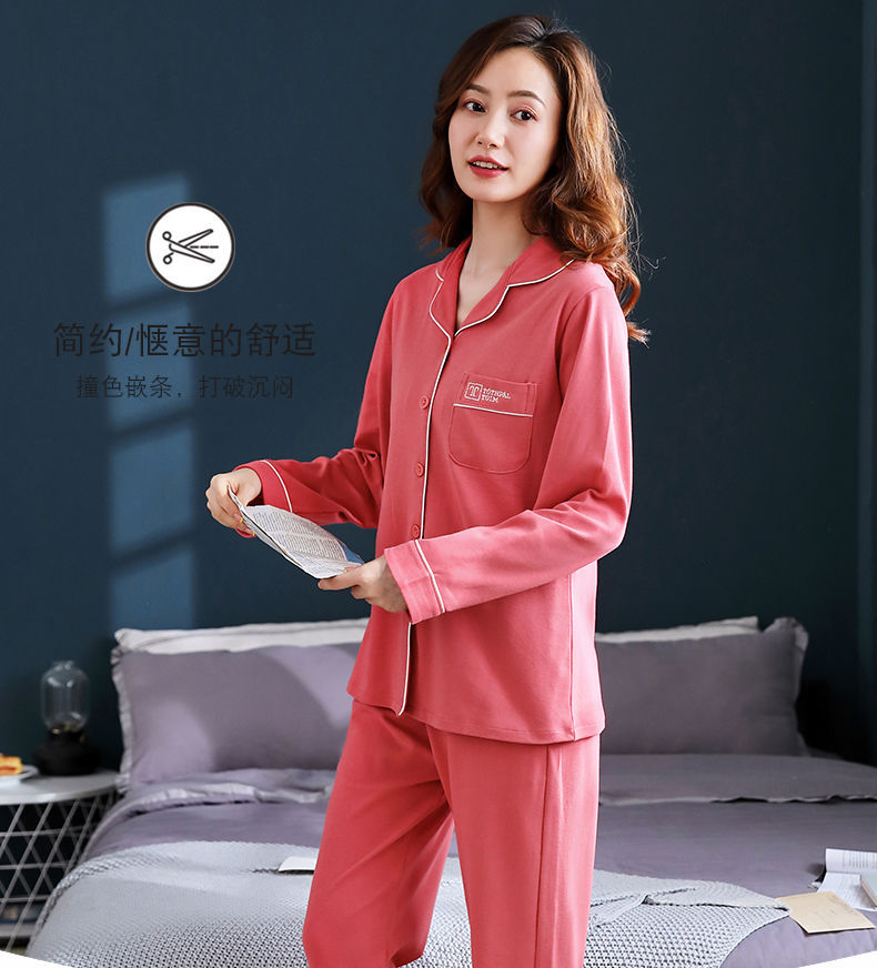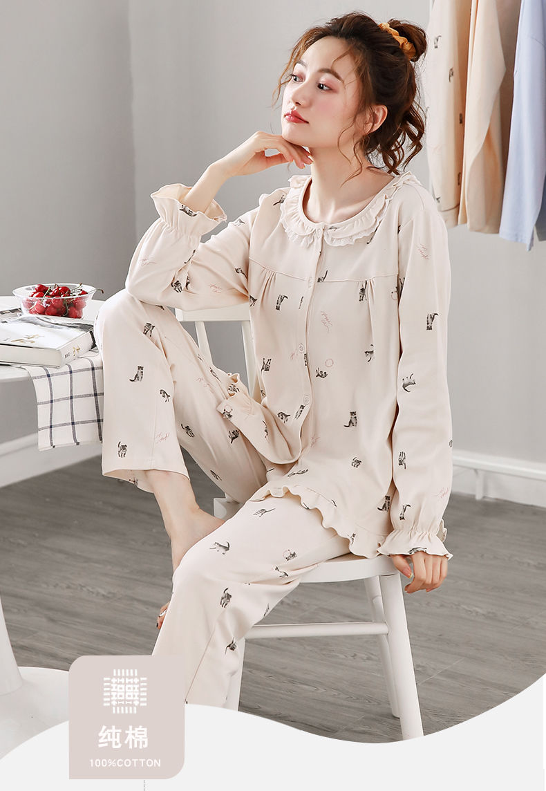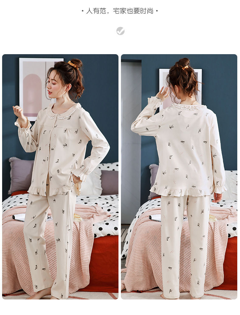 Pijamas de mujer de manga larga primavera y otoño 100% algodón estilo coreano de las mujeres más tamaño Delgado Otoño e Invierno ropa de casa traje de dos piezas
