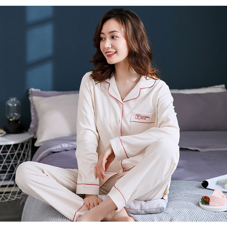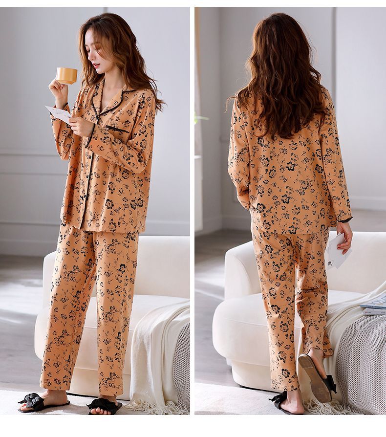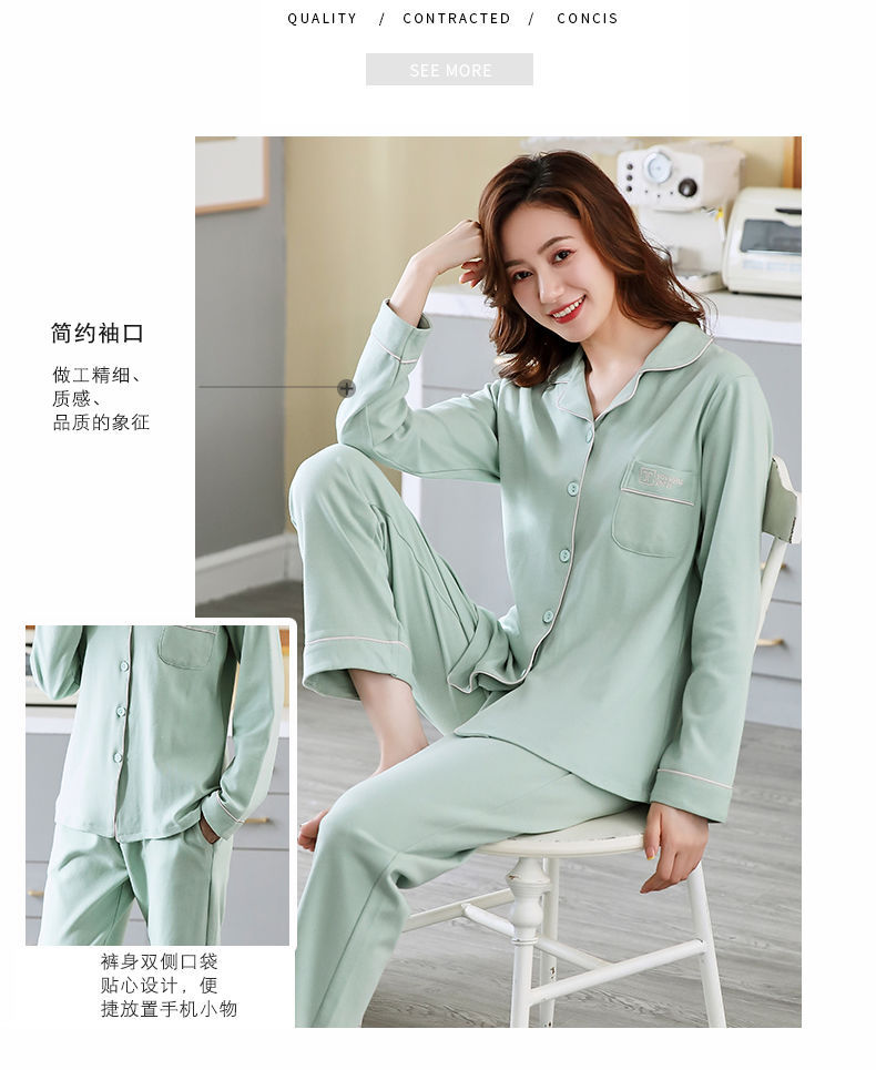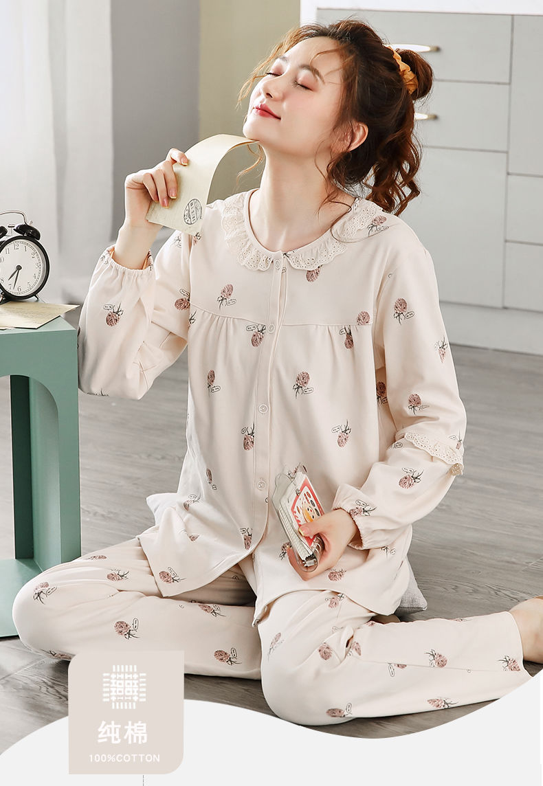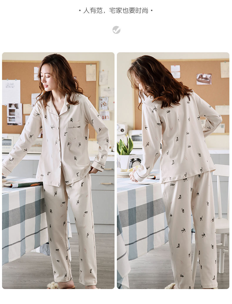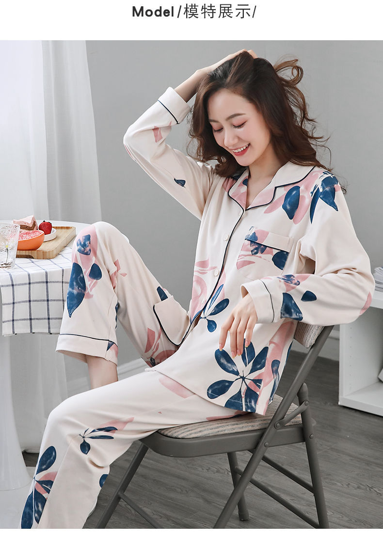 Pijamas de mujer de manga larga primavera y otoño 100% algodón estilo coreano de las mujeres más tamaño Delgado Otoño e Invierno ropa de casa traje de dos piezas