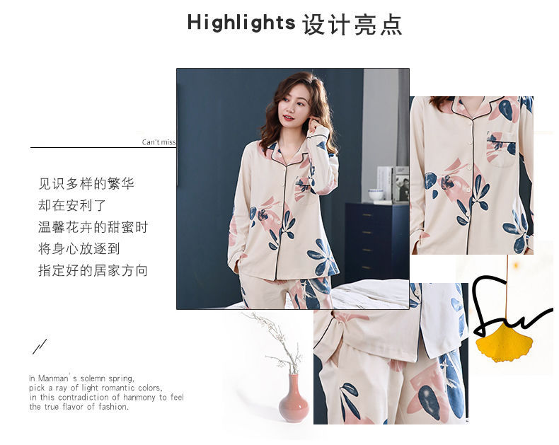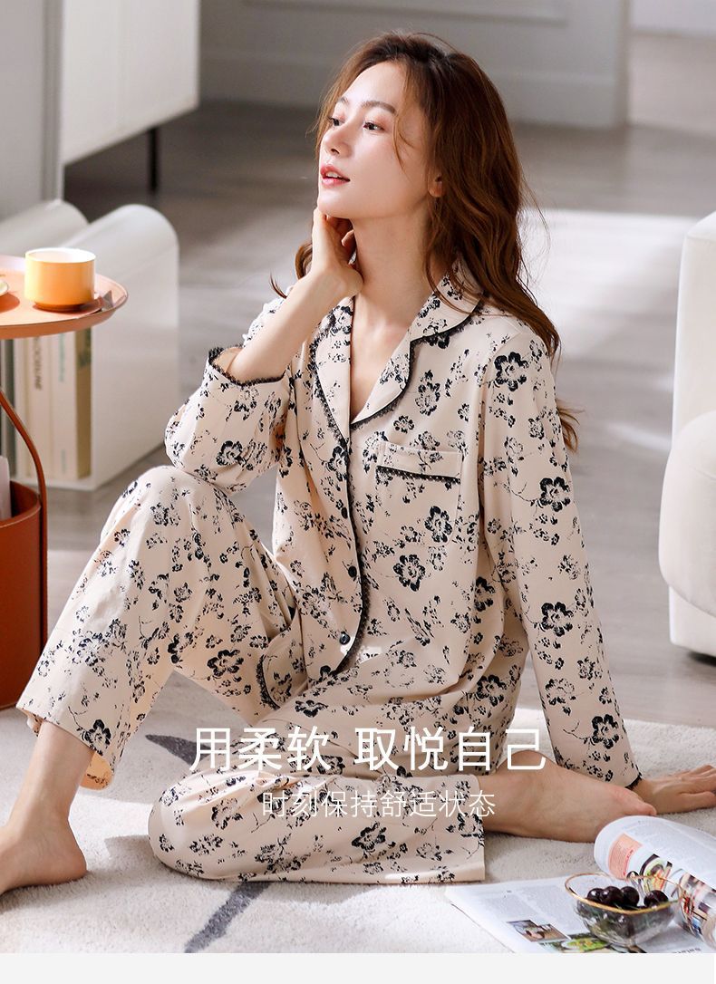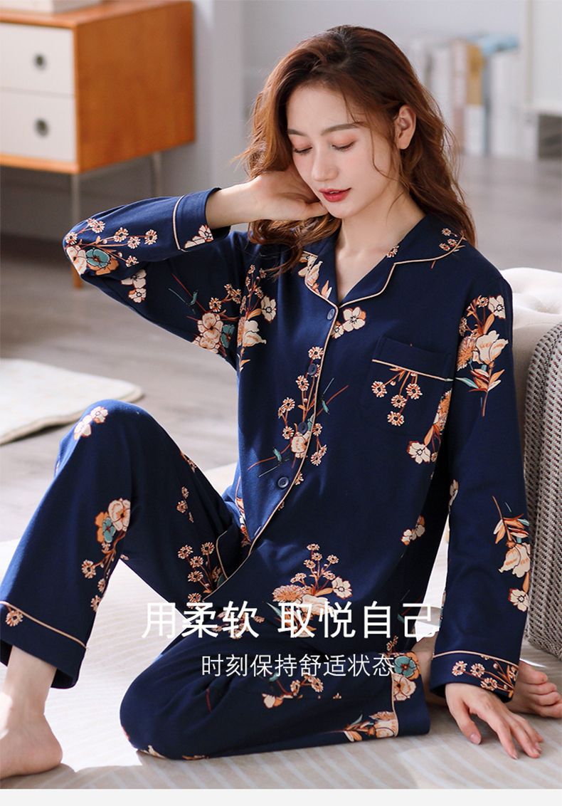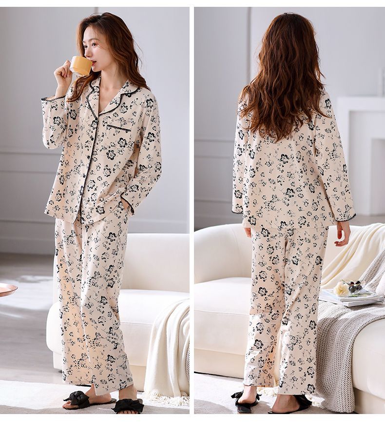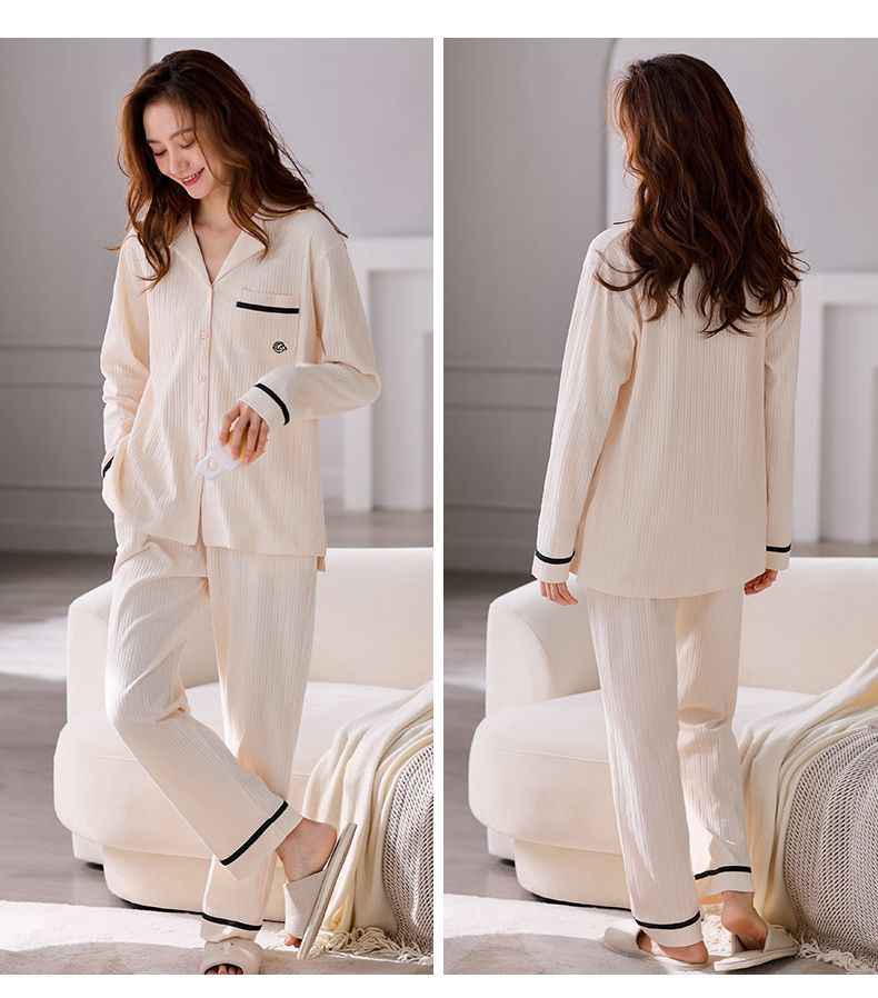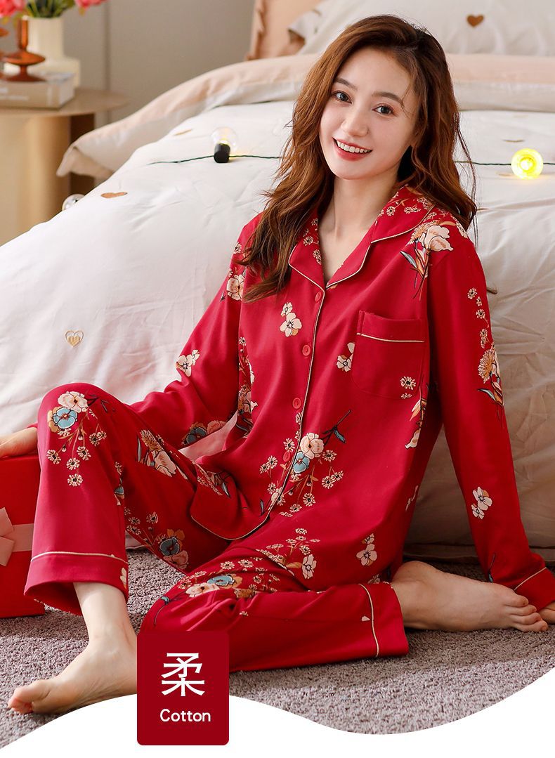 Pijamas de mujer de manga larga primavera y otoño 100% algodón estilo coreano de las mujeres más tamaño Delgado Otoño e Invierno ropa de casa traje de dos piezas