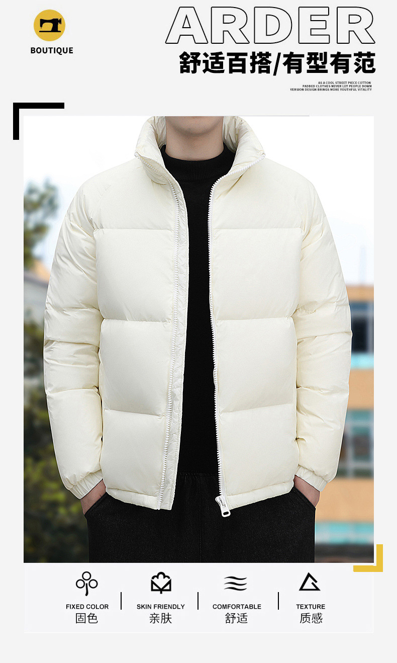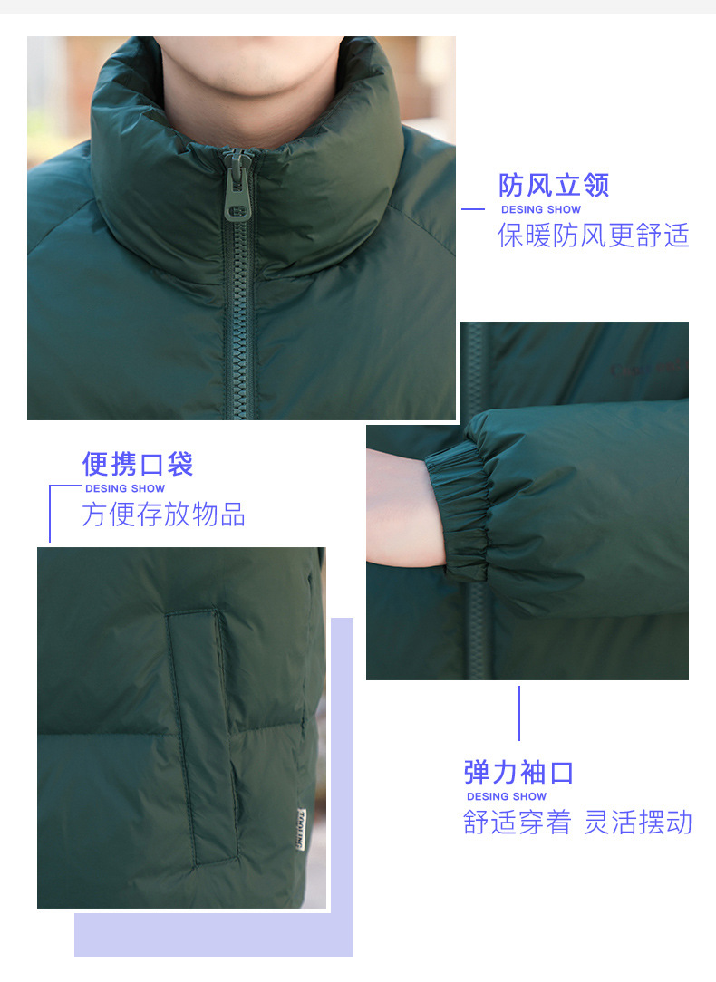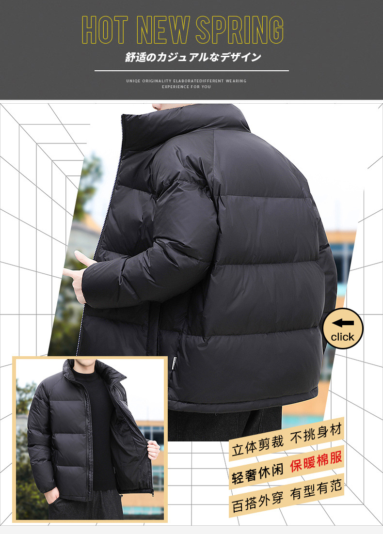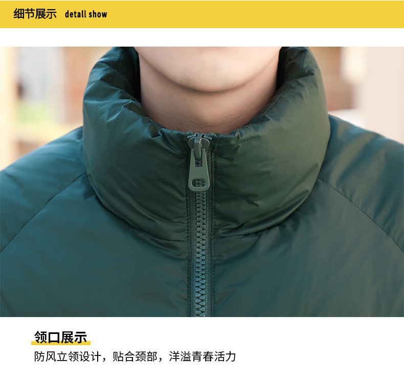 Collar del soporte de los hombres de invierno abajo Chaqueta de algodón acolchado juventud color sólido luz gruesa caliente abrigo de algodón acolchado abrigo suelto pan venta al por mayor