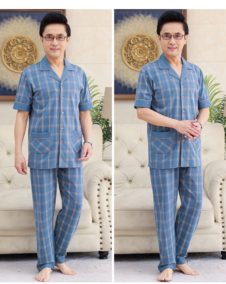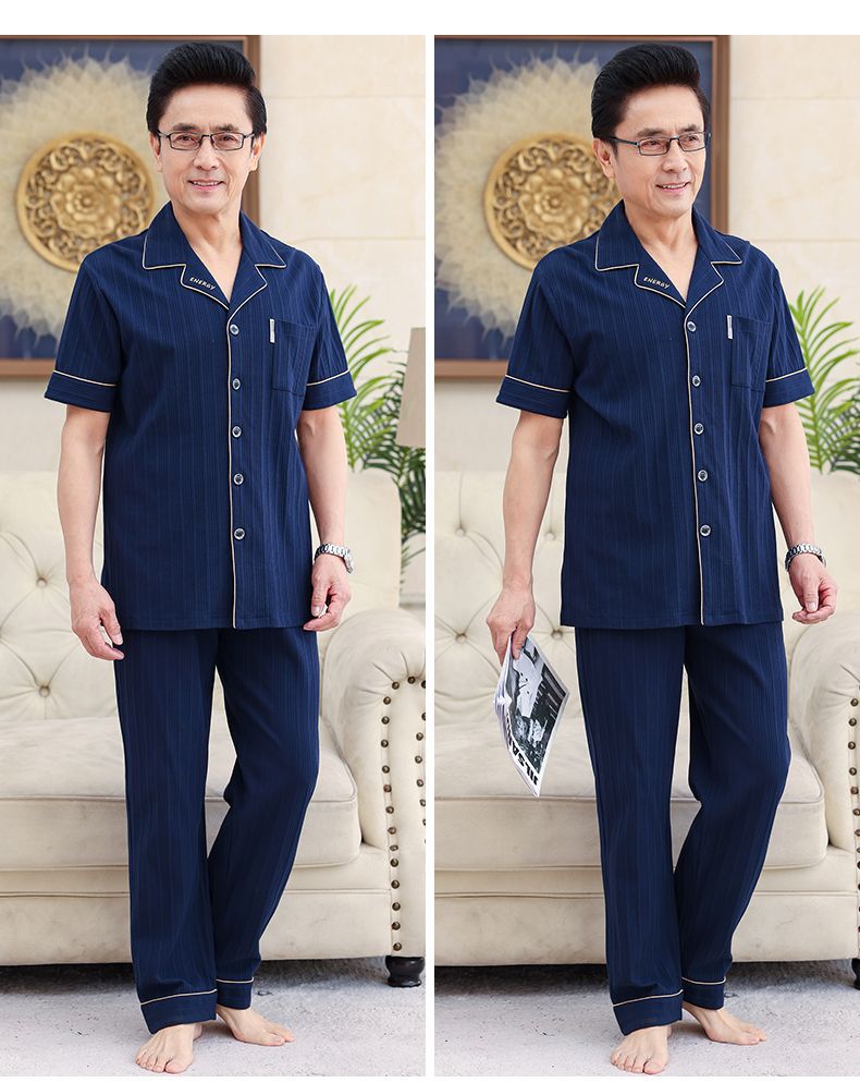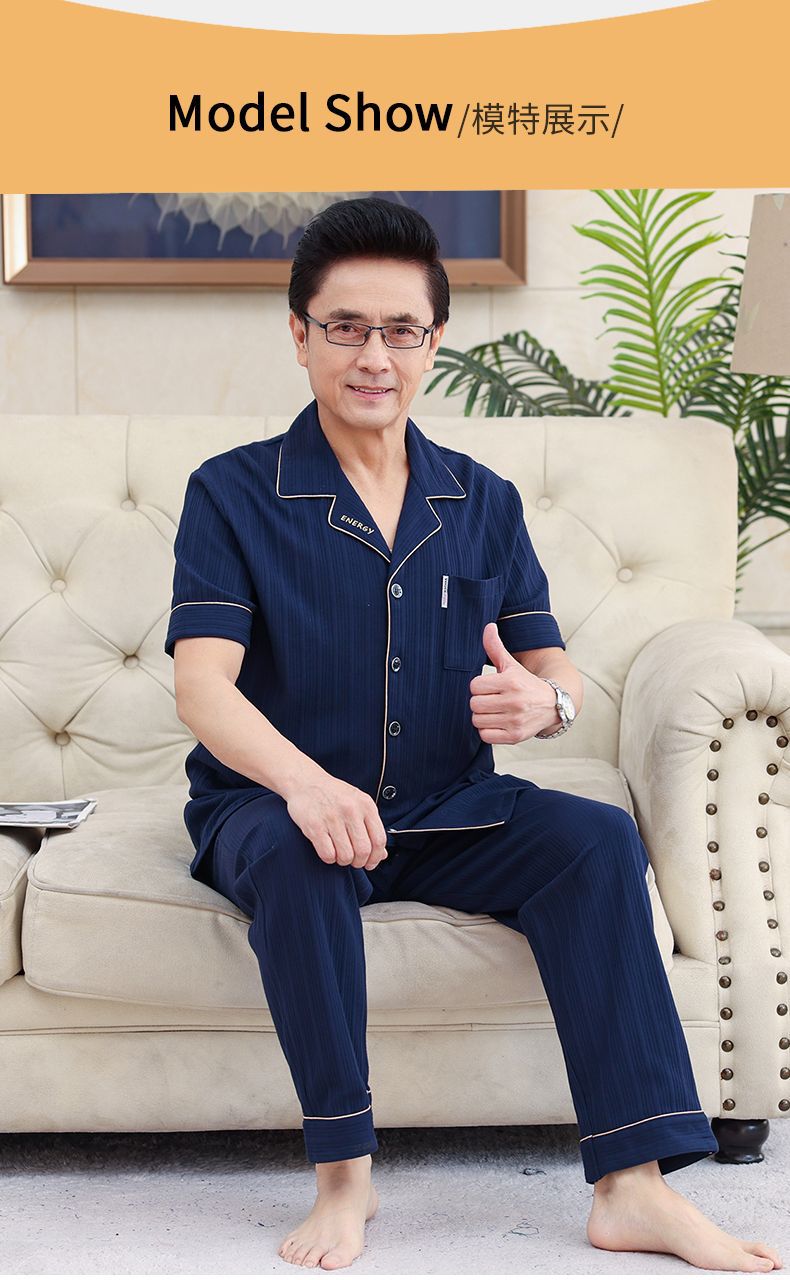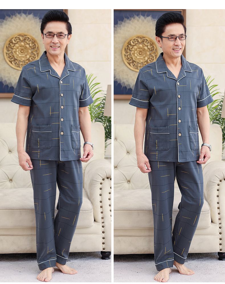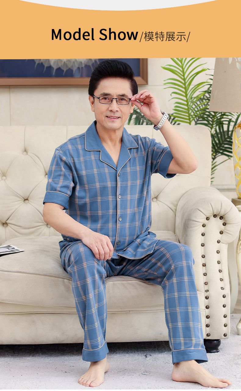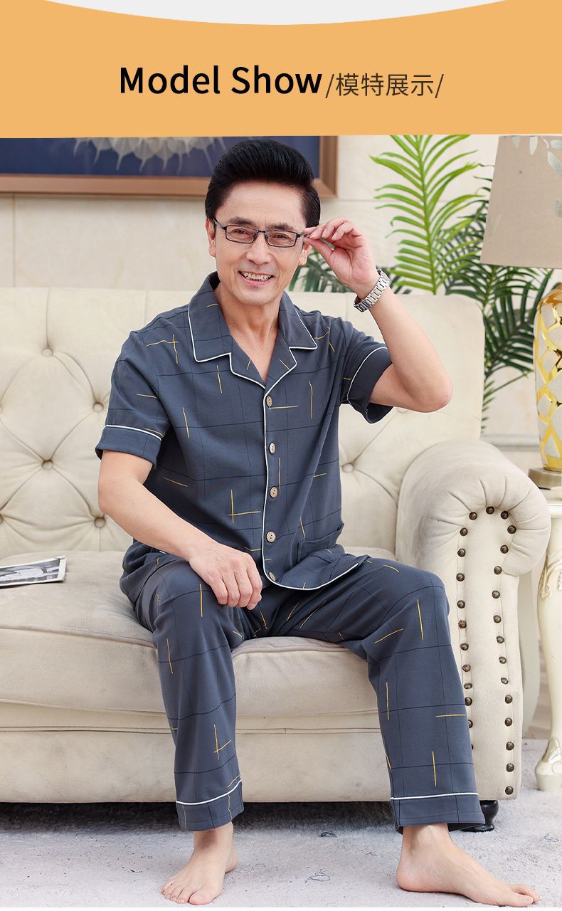 Pijama de hombre 100% algodón pantalones de manga corta Verano de mediana edad y anciano papá más tamaño cardigan traje fino homewear