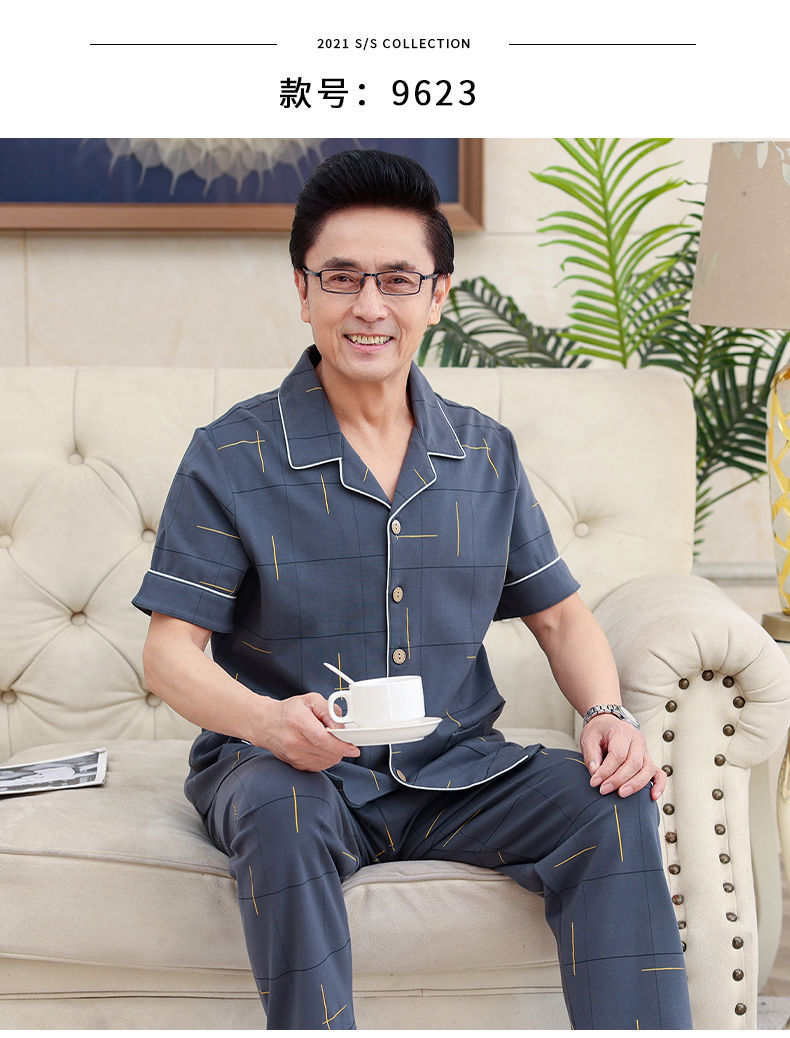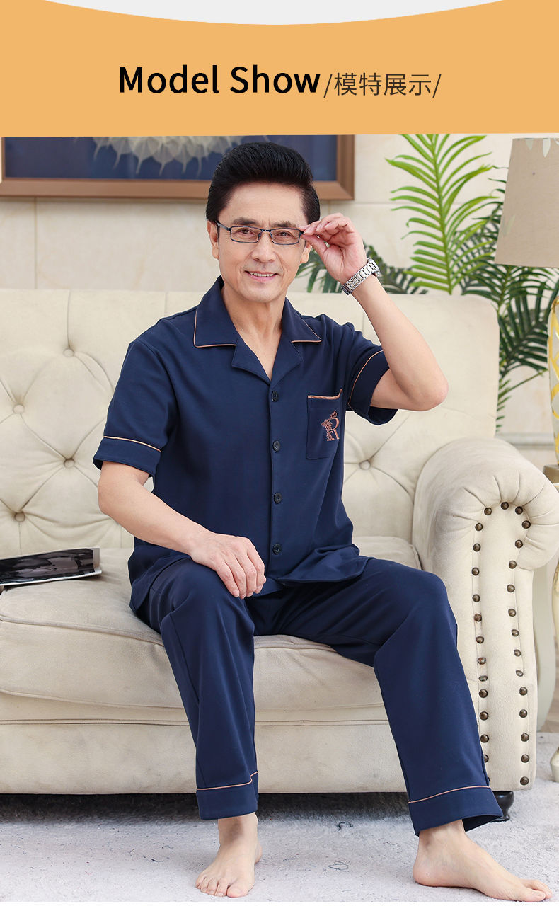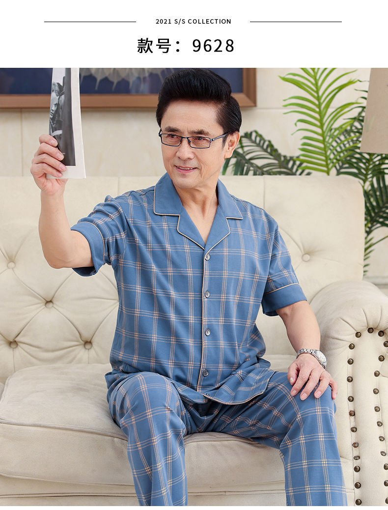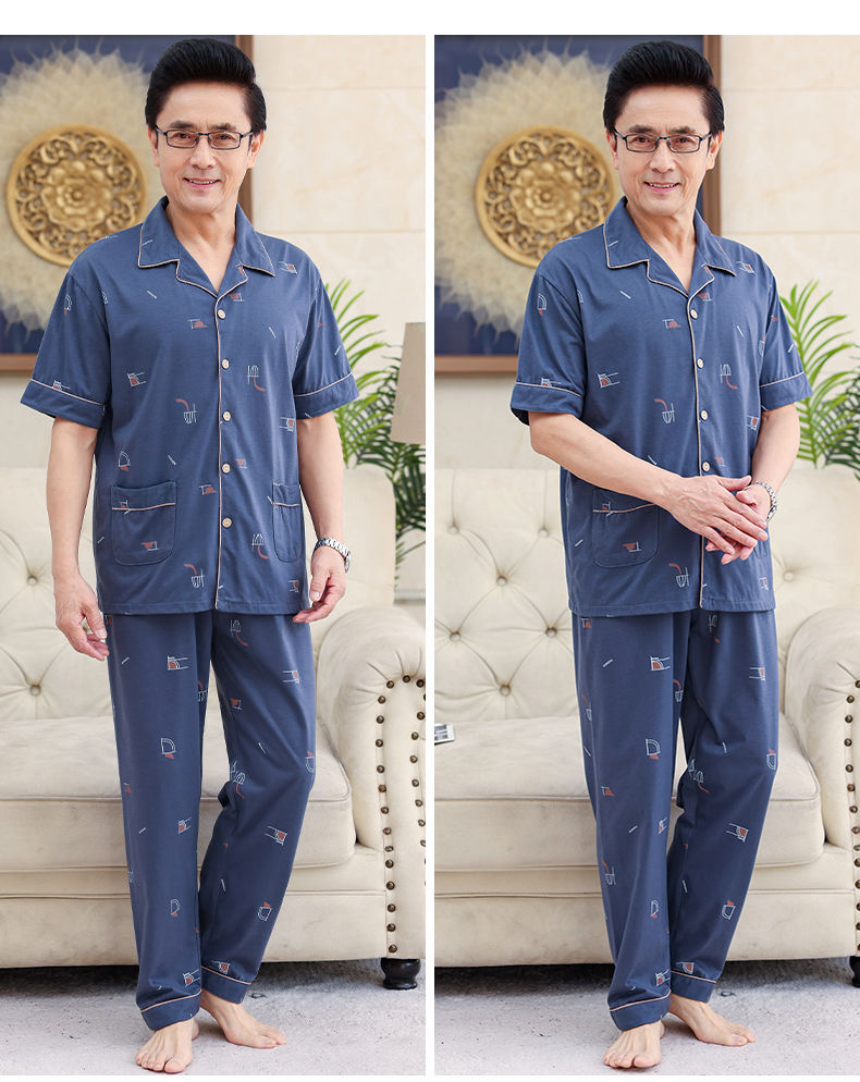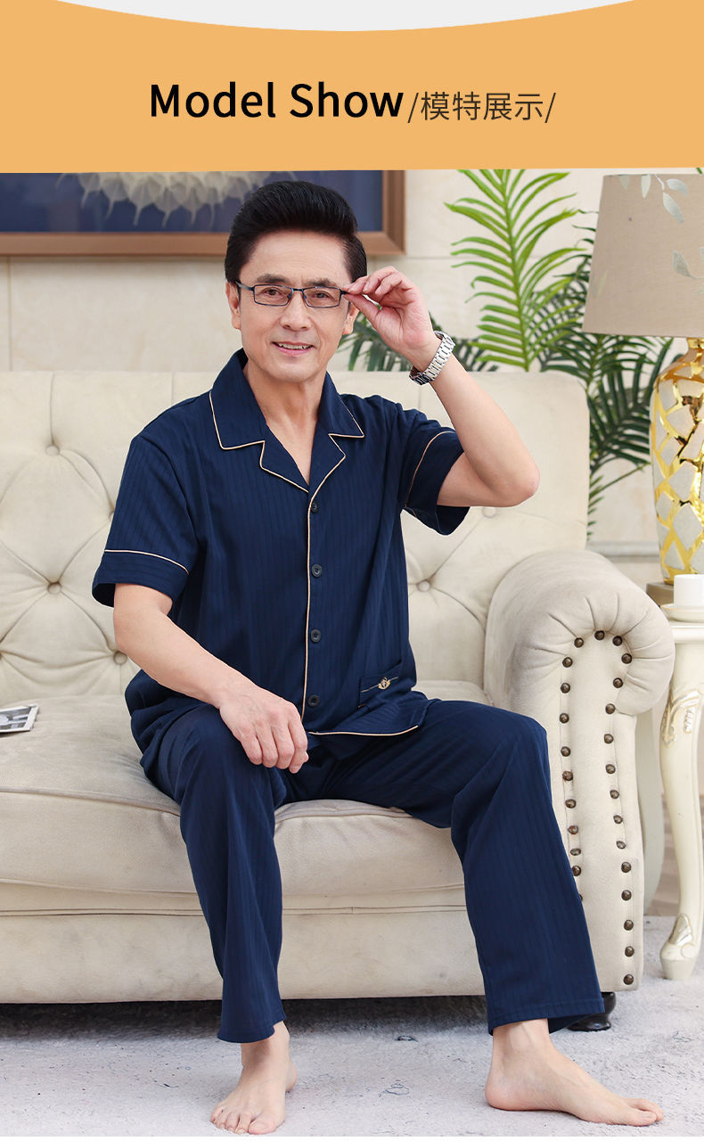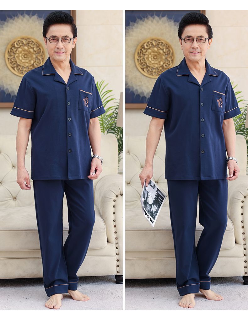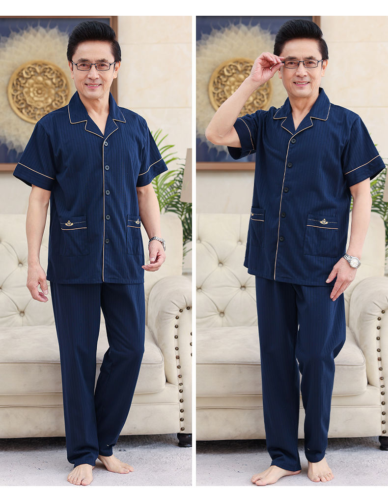Pijama de hombre 100% algodón pantalones de manga corta Verano de mediana edad y anciano papá más tamaño cardigan traje fino homewear