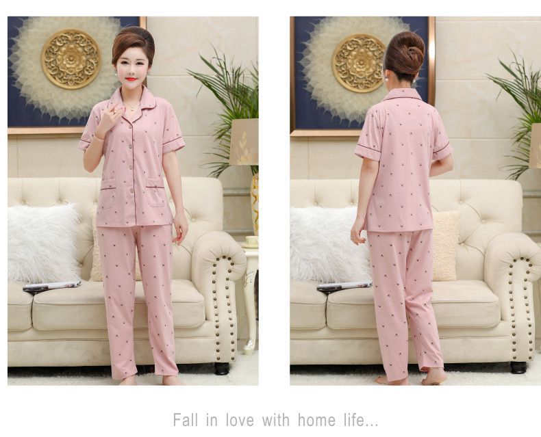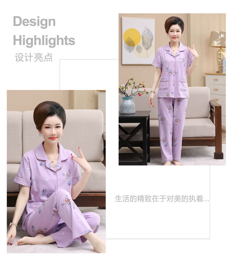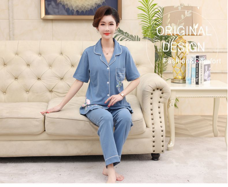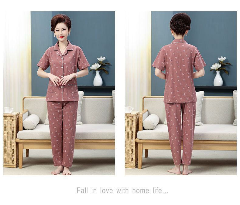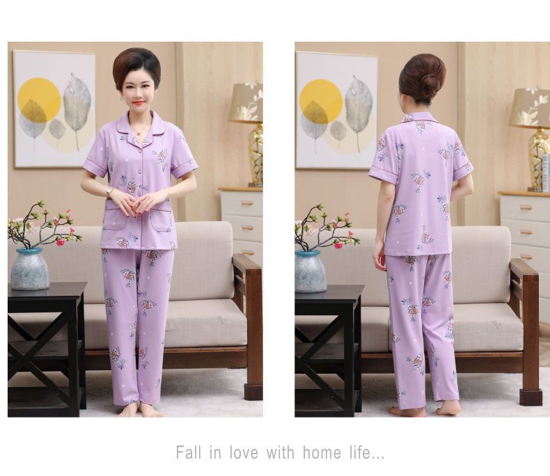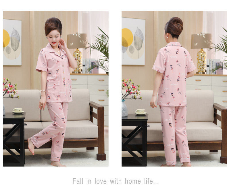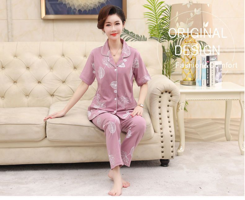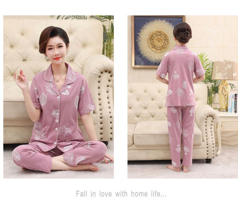 100% pijamas de algodón de verano de las mujeres pantalones de manga corta de mediana edad madre más tamaño cardigan traje de mediana edad y ancianos ropa para el hogar
