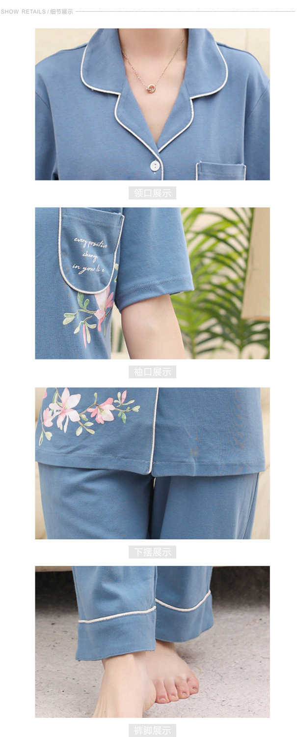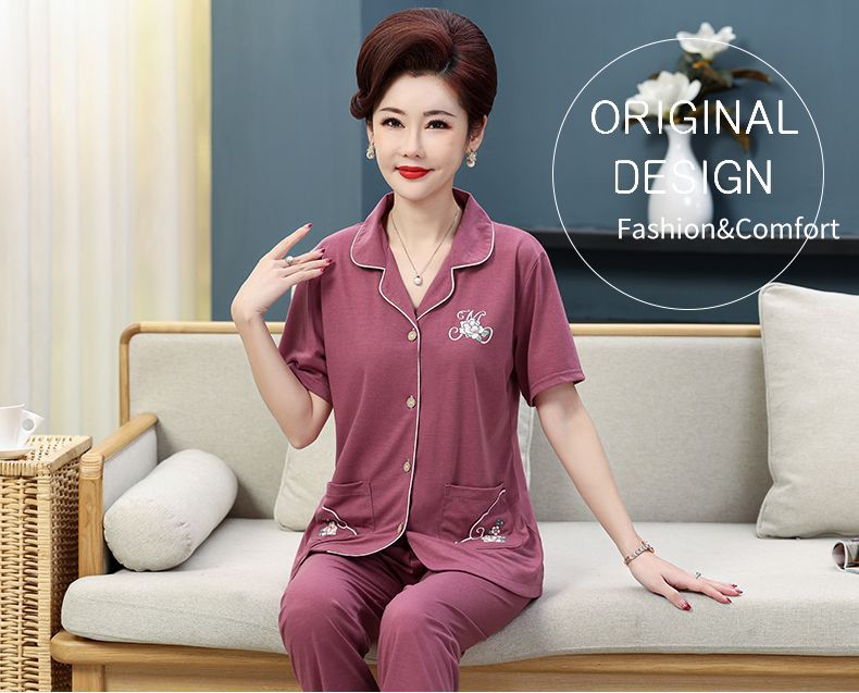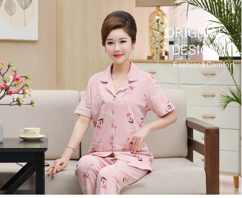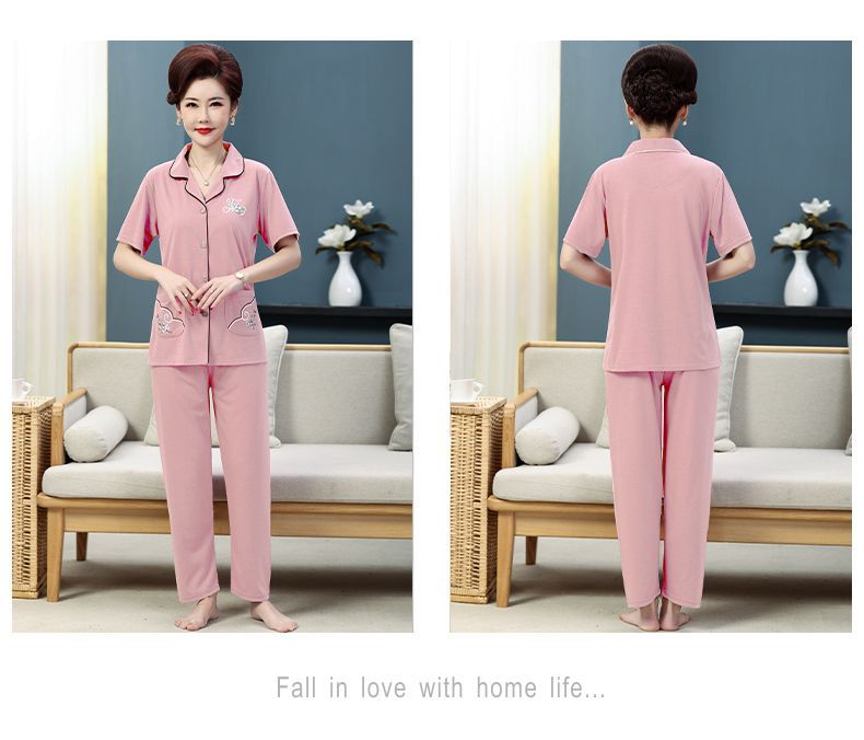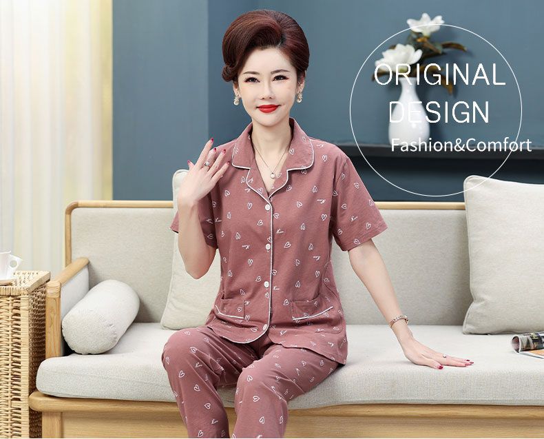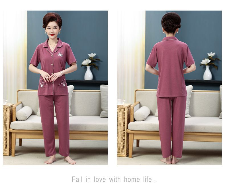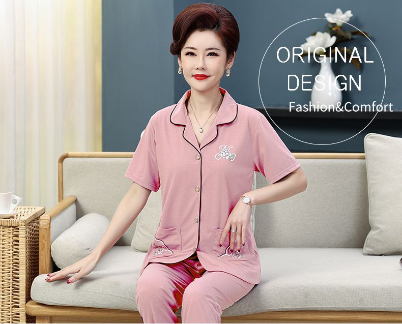 100% pijamas de algodón de verano de las mujeres pantalones de manga corta de mediana edad madre más tamaño cardigan traje de mediana edad y ancianos ropa para el hogar