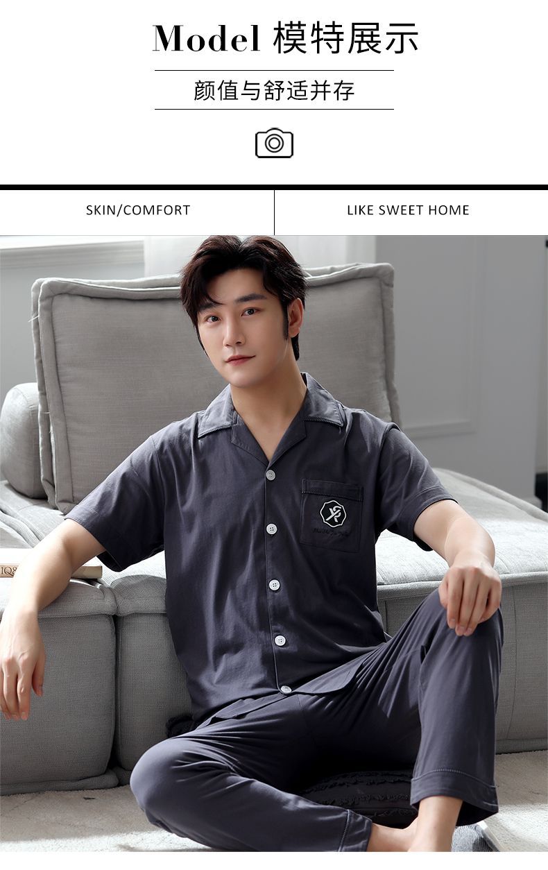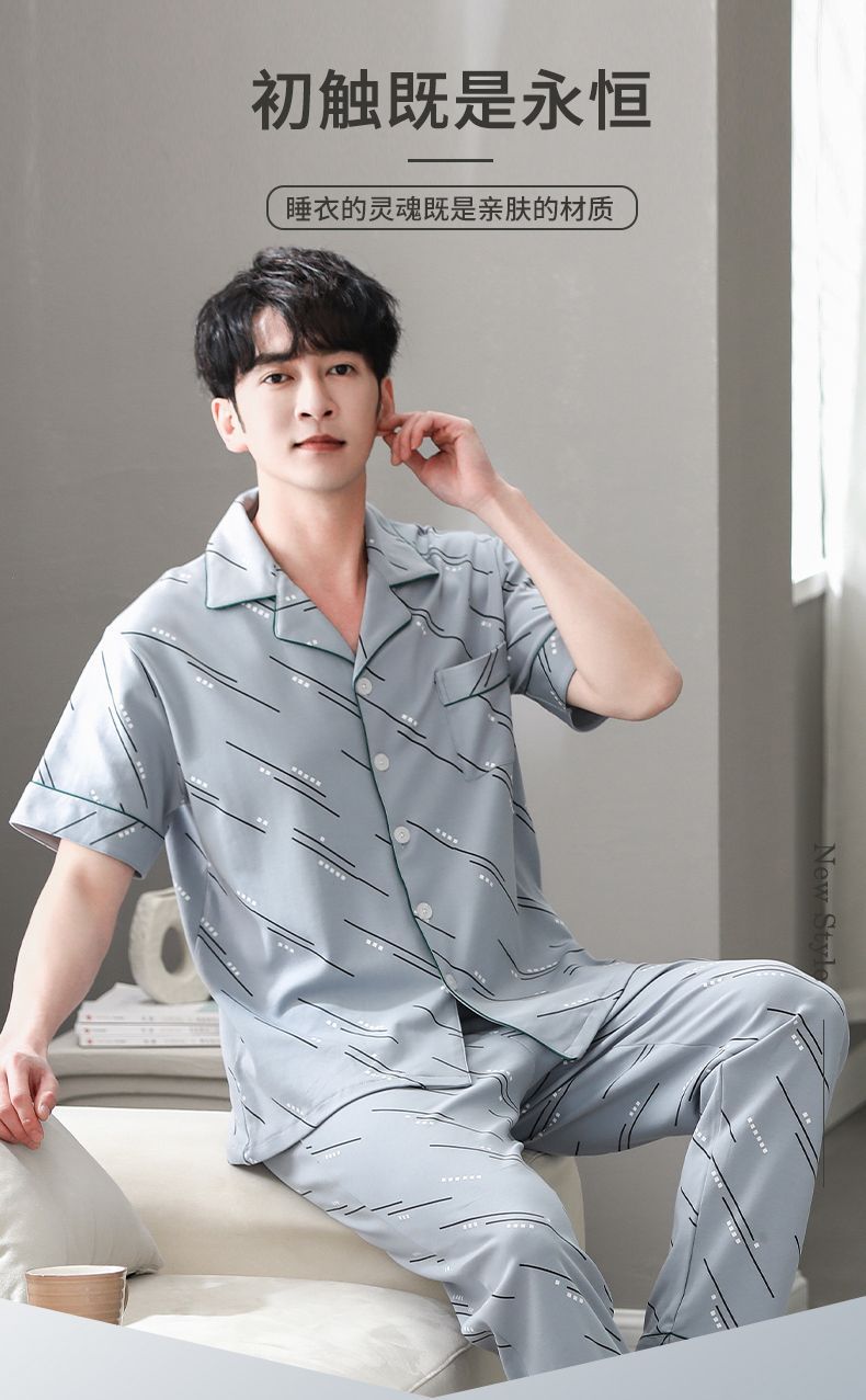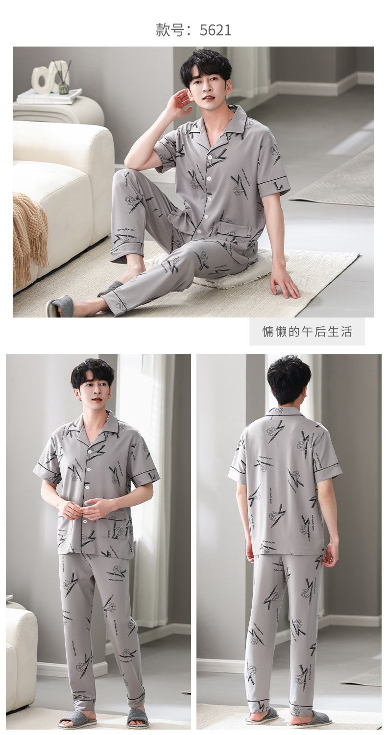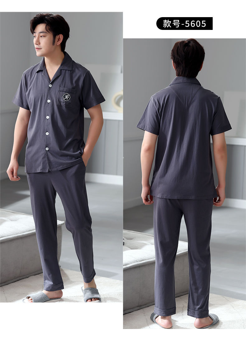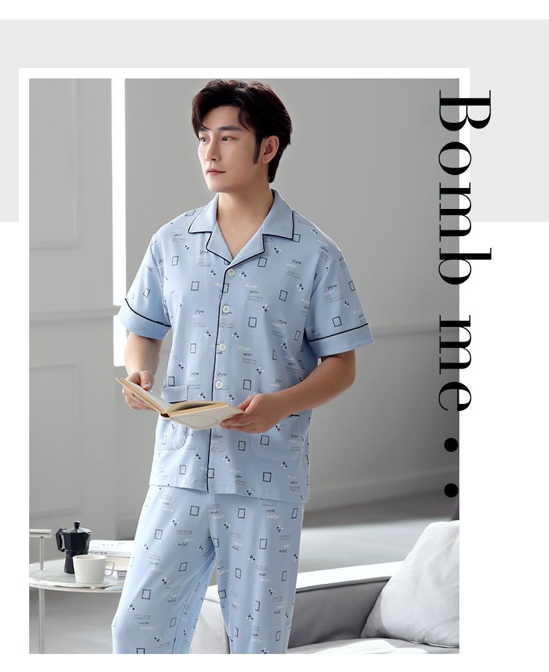 Pijama de algodón 100% pantalones delgados de verano de manga corta traje de uso doméstico de mediana edad verde se puede usar afuera