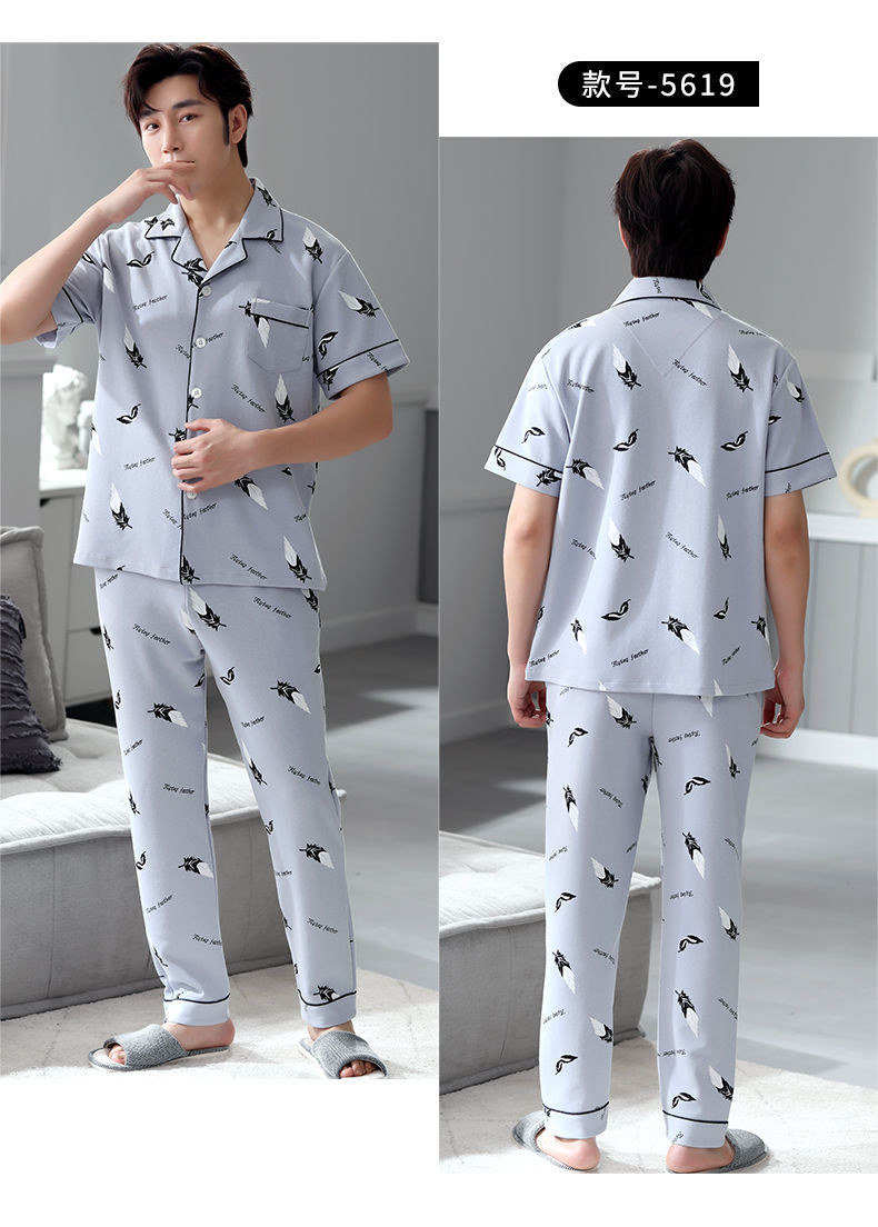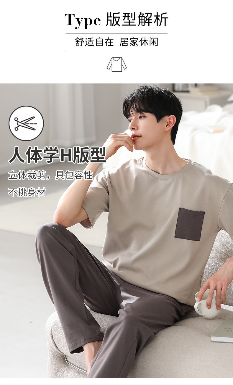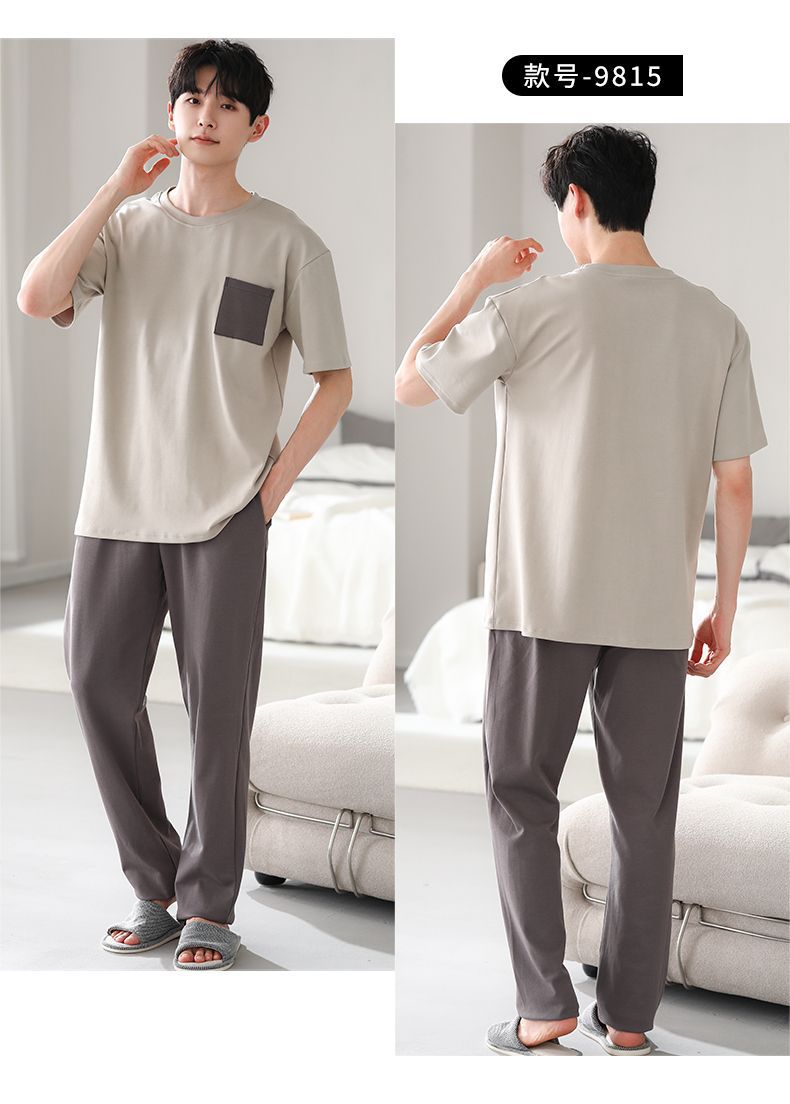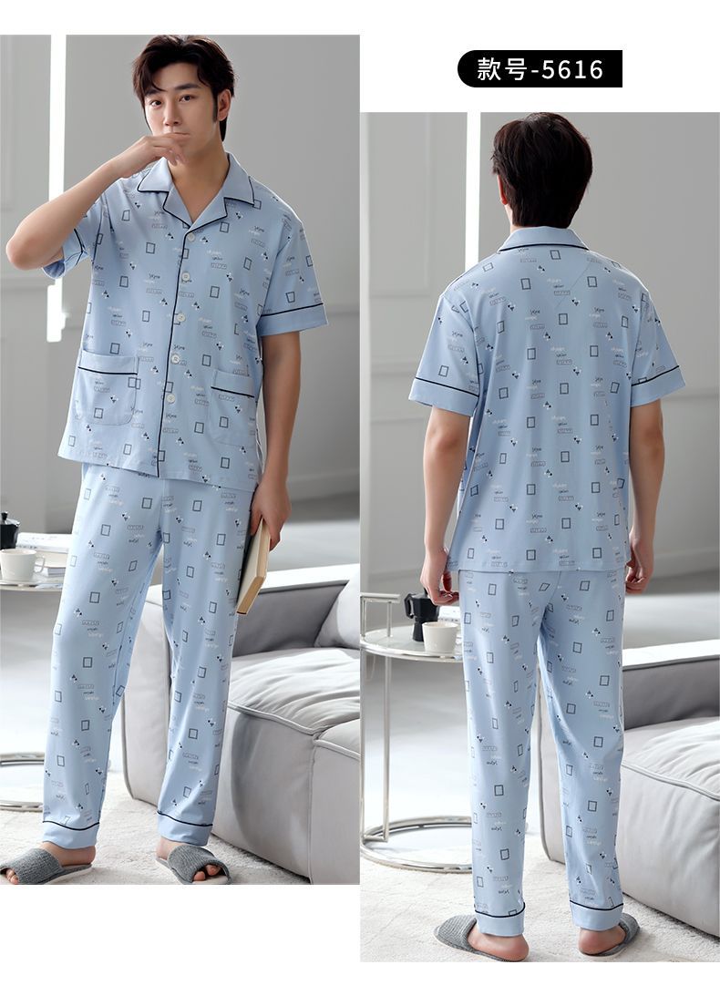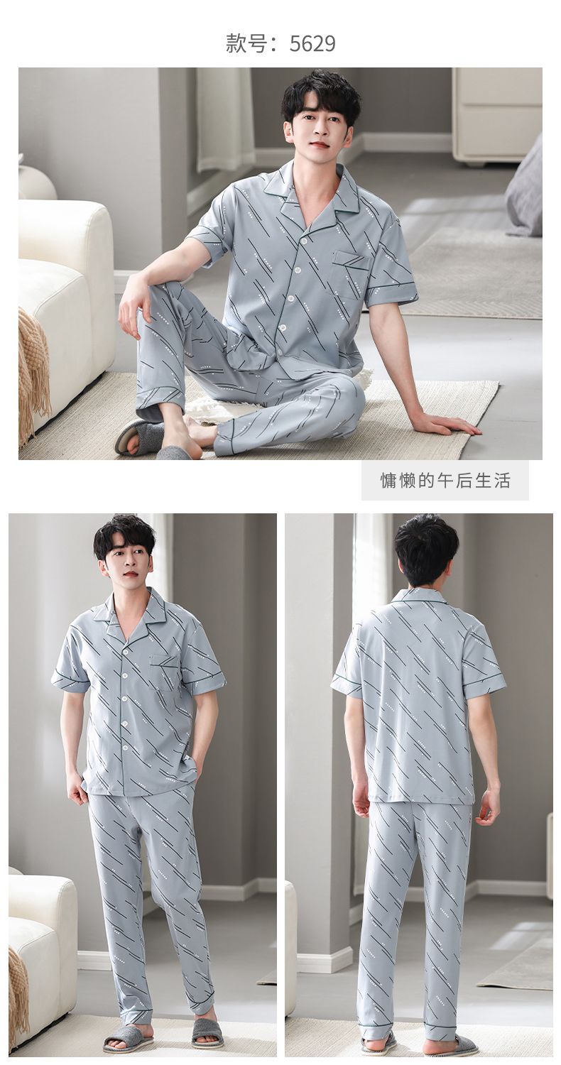 Pijama de algodón 100% pantalones delgados de verano de manga corta traje de uso doméstico de mediana edad verde se puede usar afuera