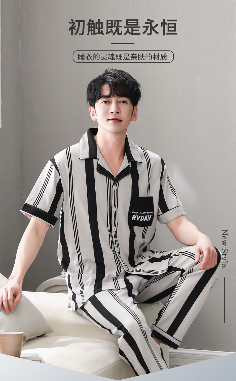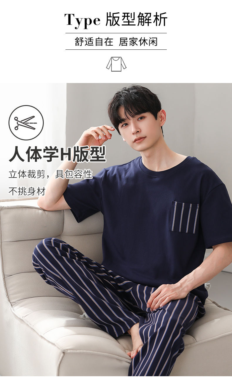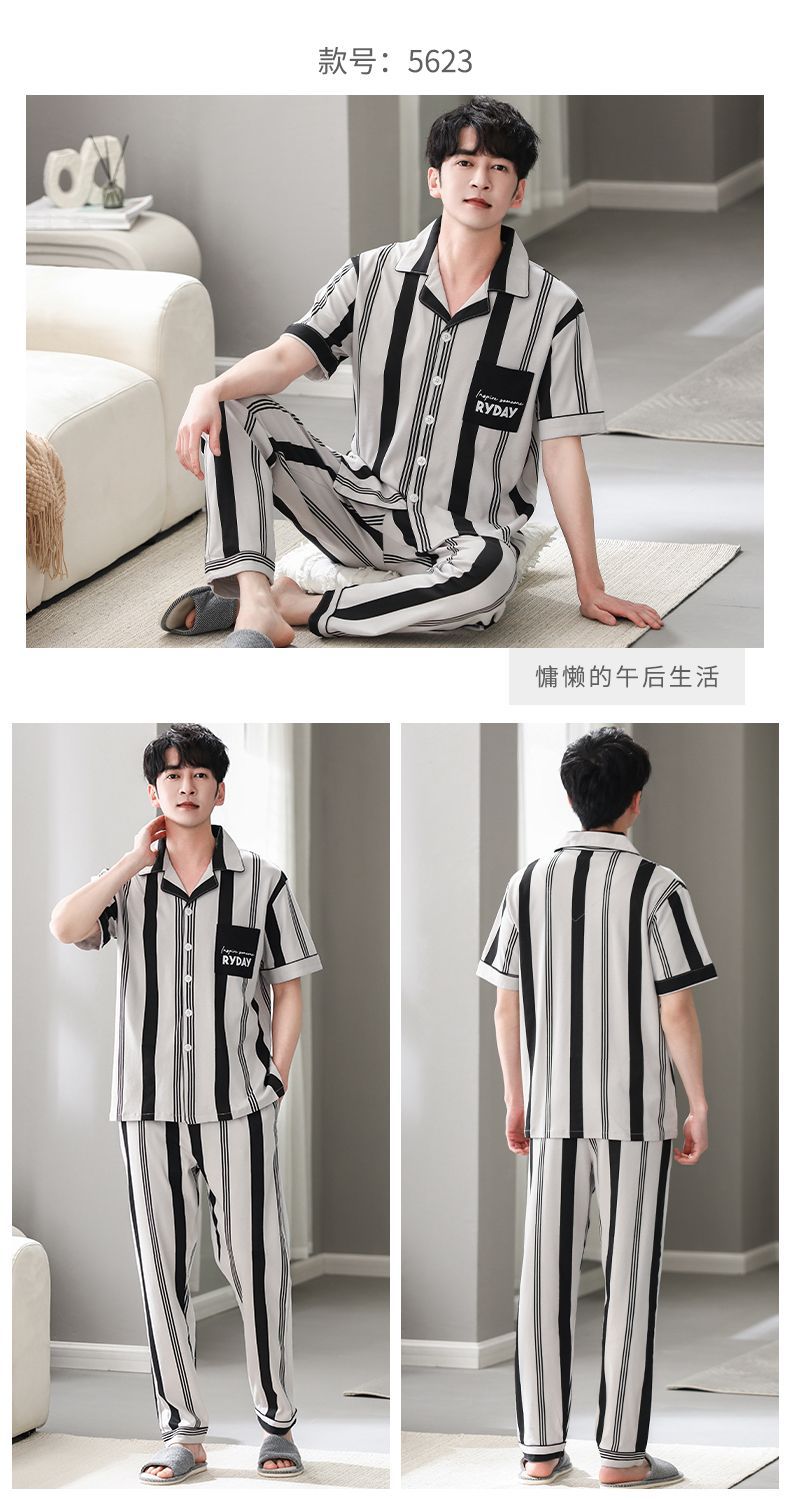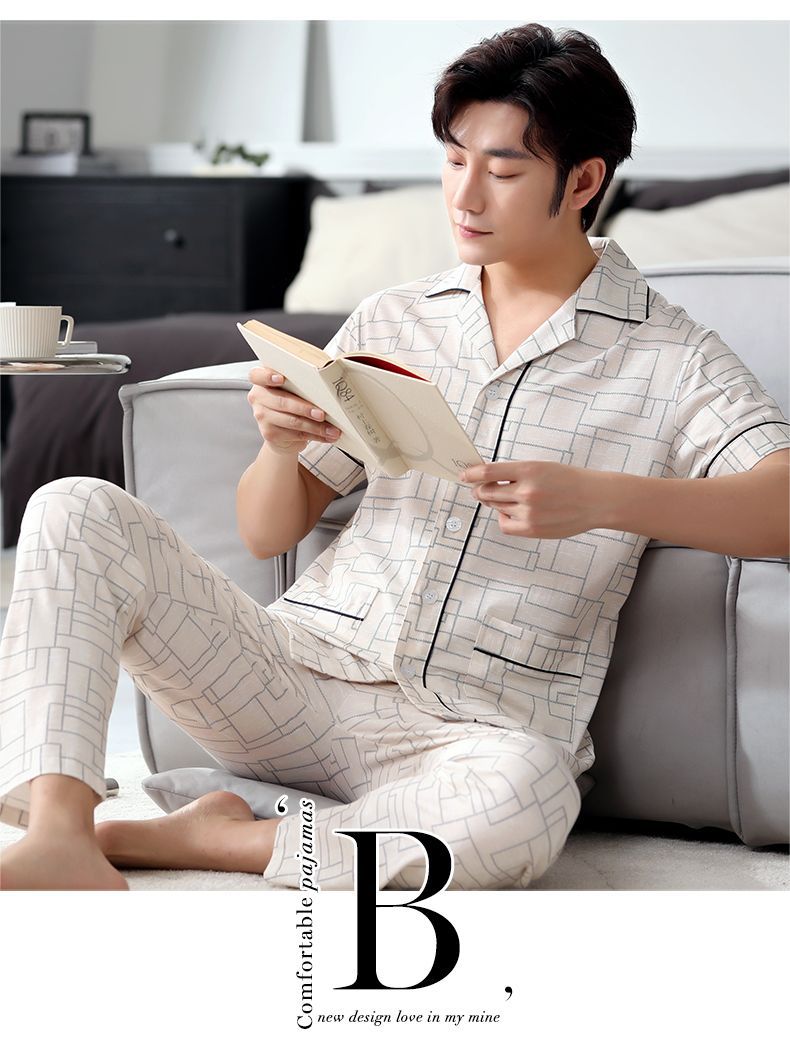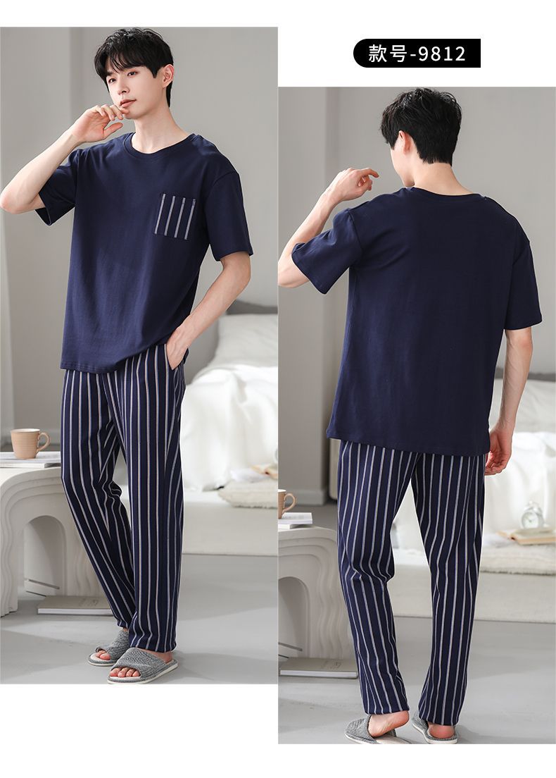 Pijama de algodón 100% pantalones delgados de verano de manga corta traje de uso doméstico de mediana edad verde se puede usar afuera