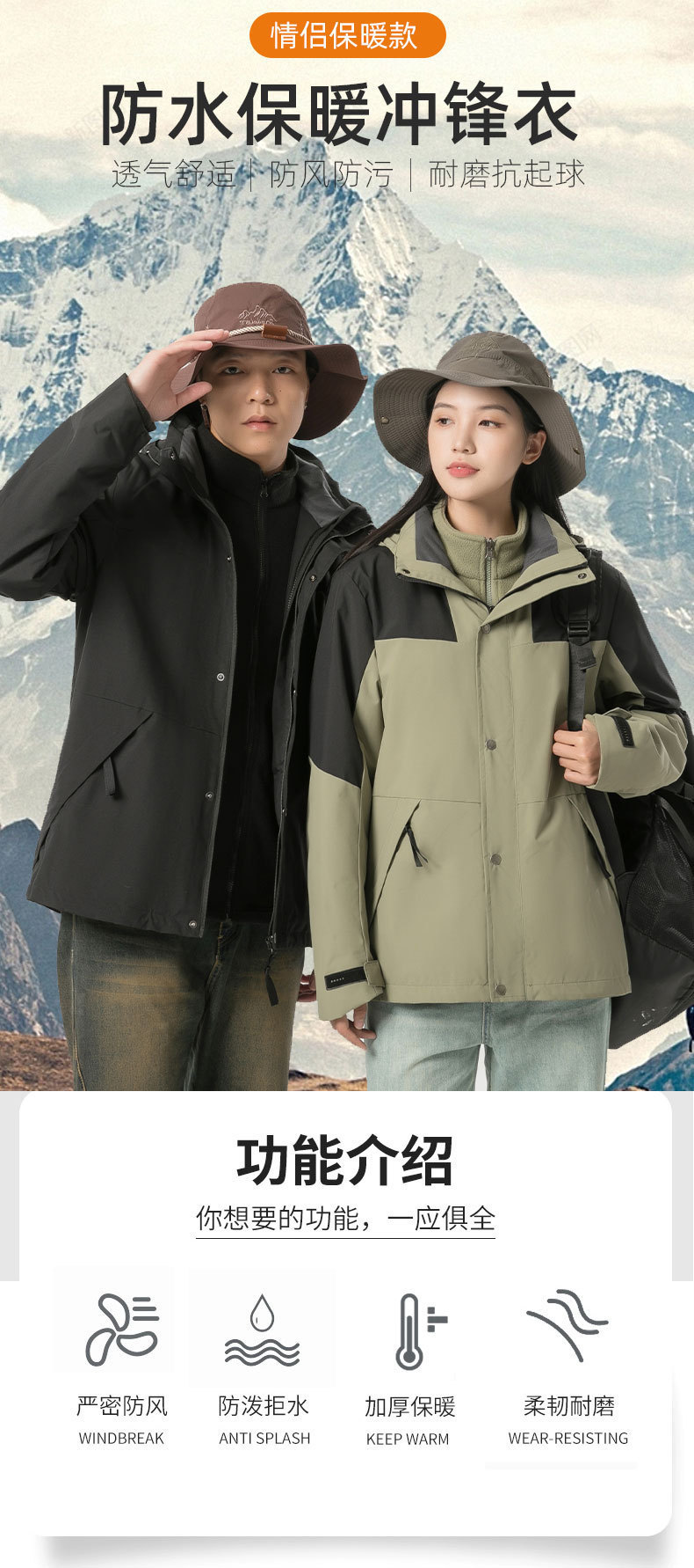 Chaqueta de otoño e invierno de dos piezas tres en uno desmontable para hombres y mujeres mismo forro polar chaqueta cálida al aire libre al por mayor