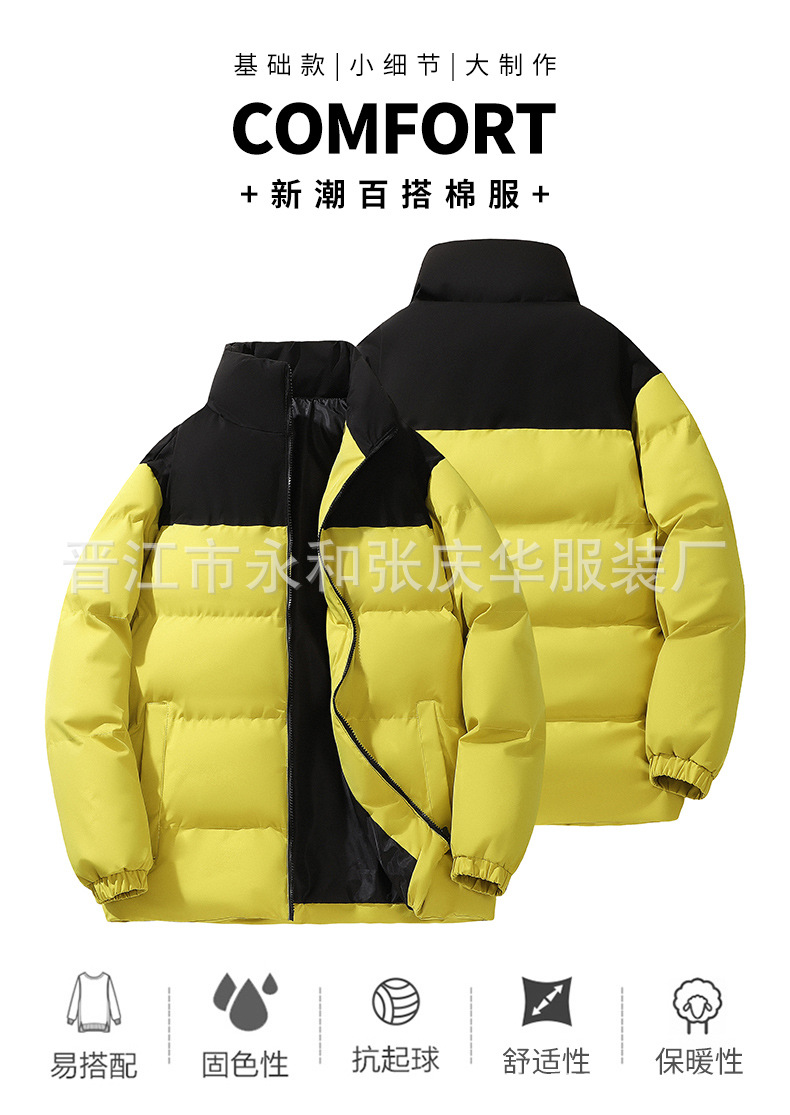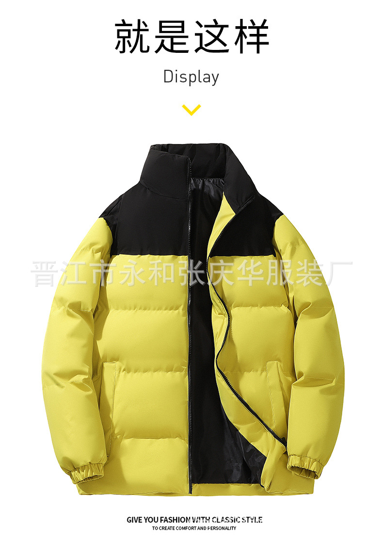 2023 nueva capa acolchada de algodón de invierno para hombres y mujeres collar de pie corto moda estilo coreano abrigo de pan juvenil entrega de una sola pieza