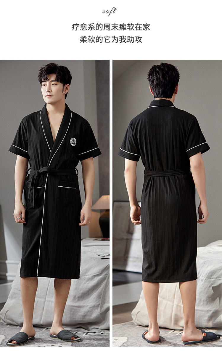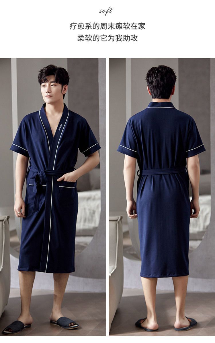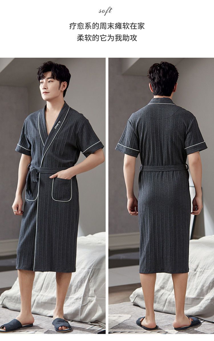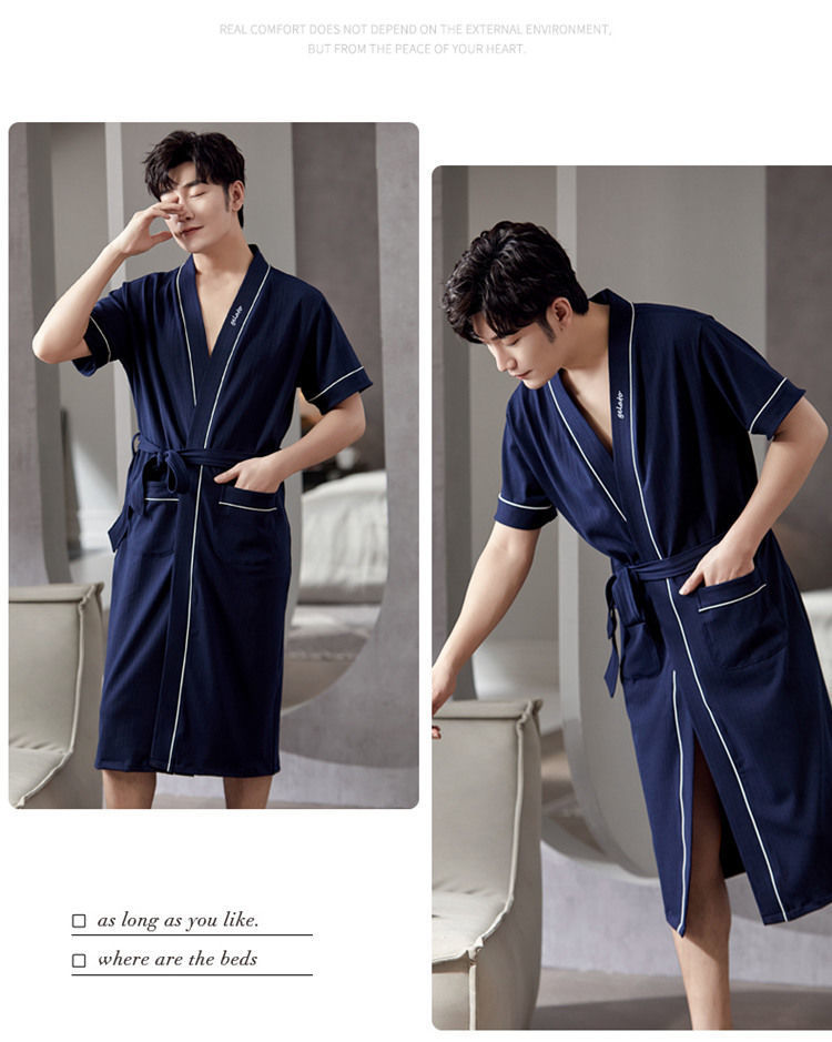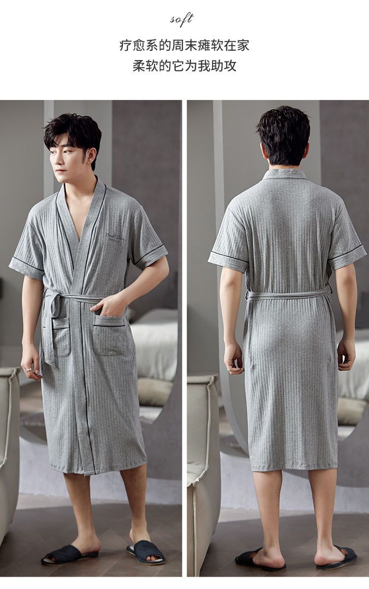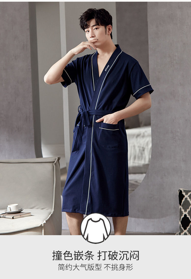 Verano de los hombres de algodón de manga corta delgada de estilo japonés de media longitud de los hombres más tamaño Albornoz pijamas de verano