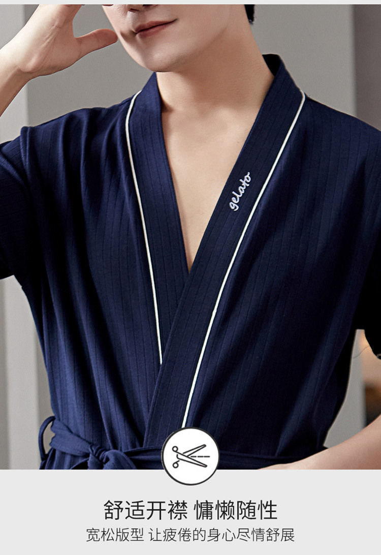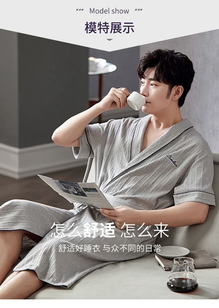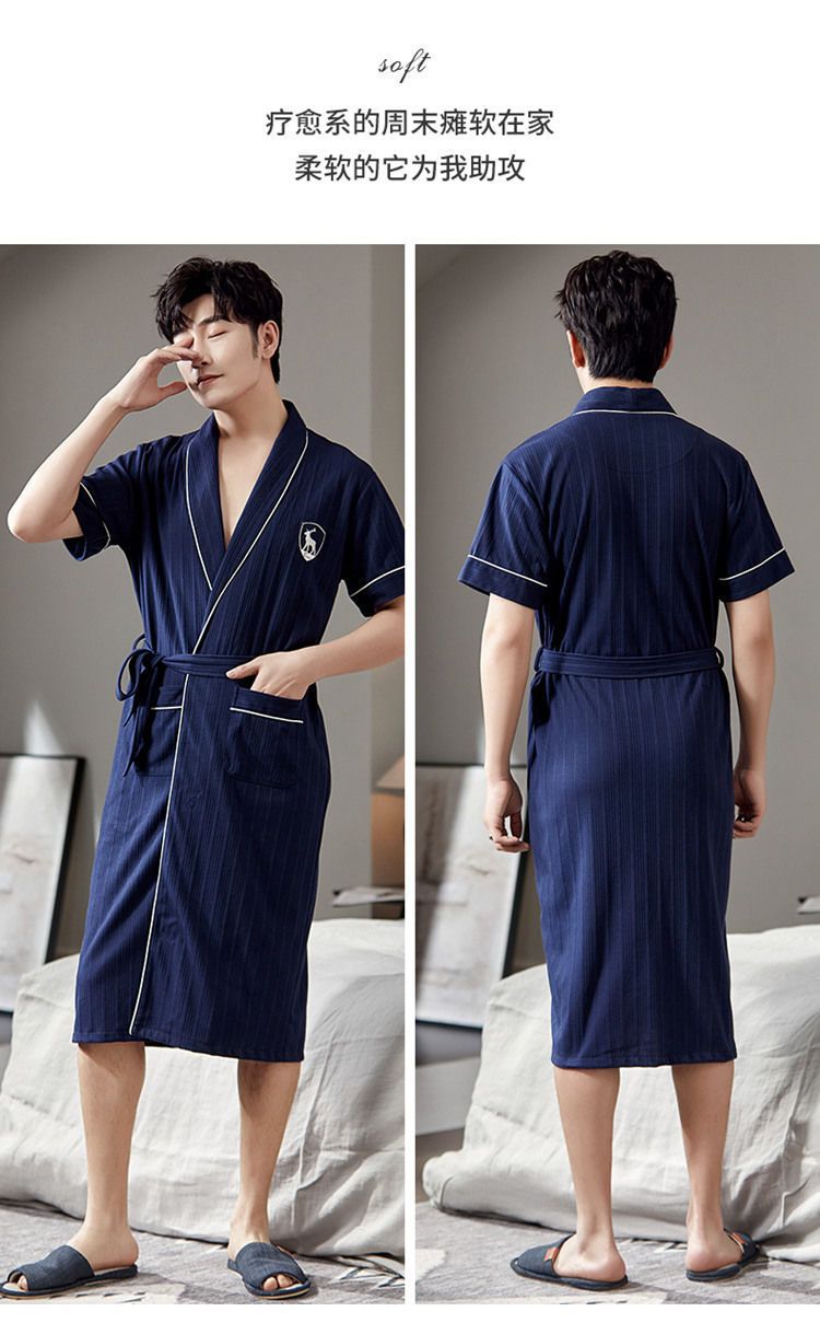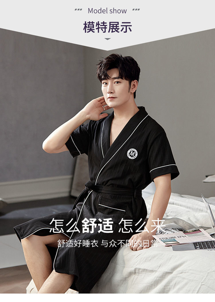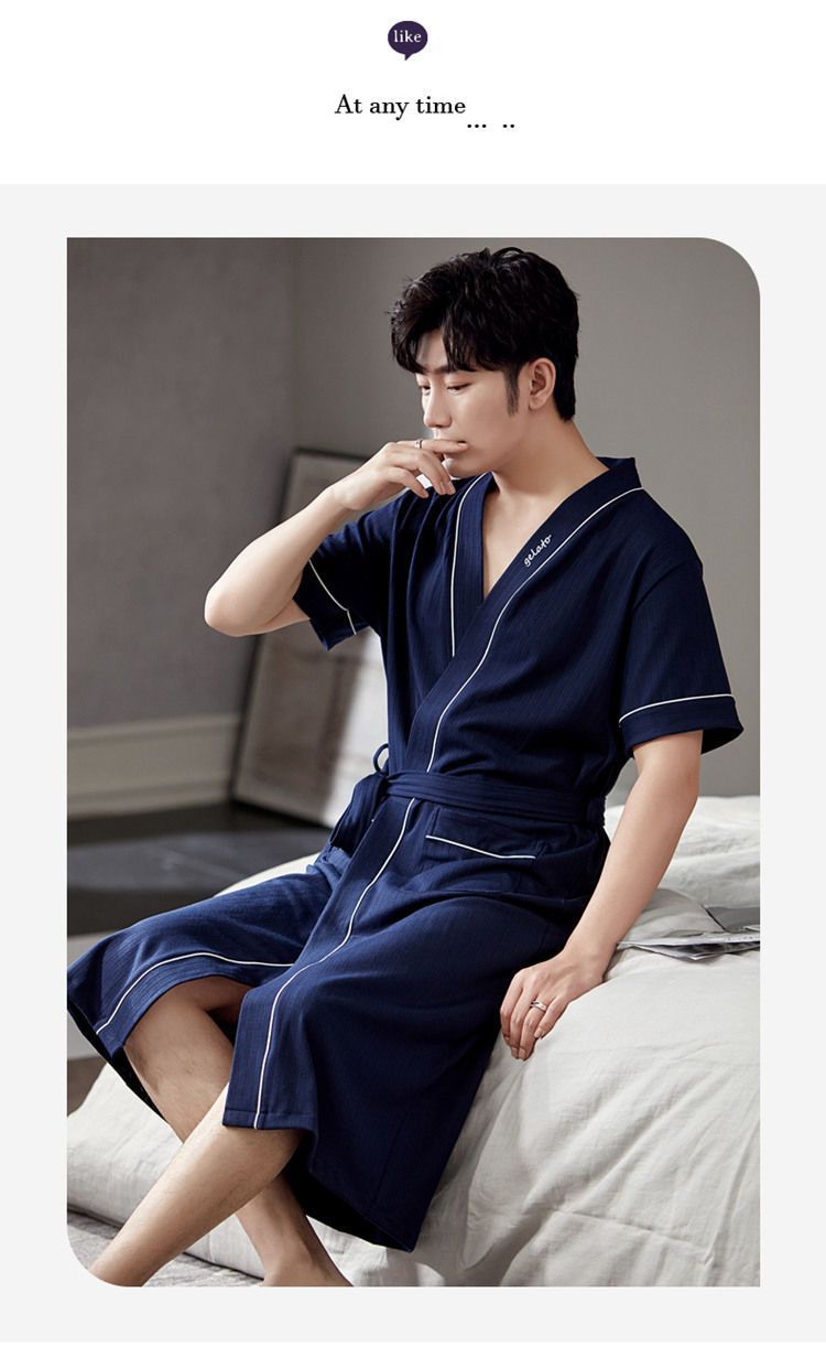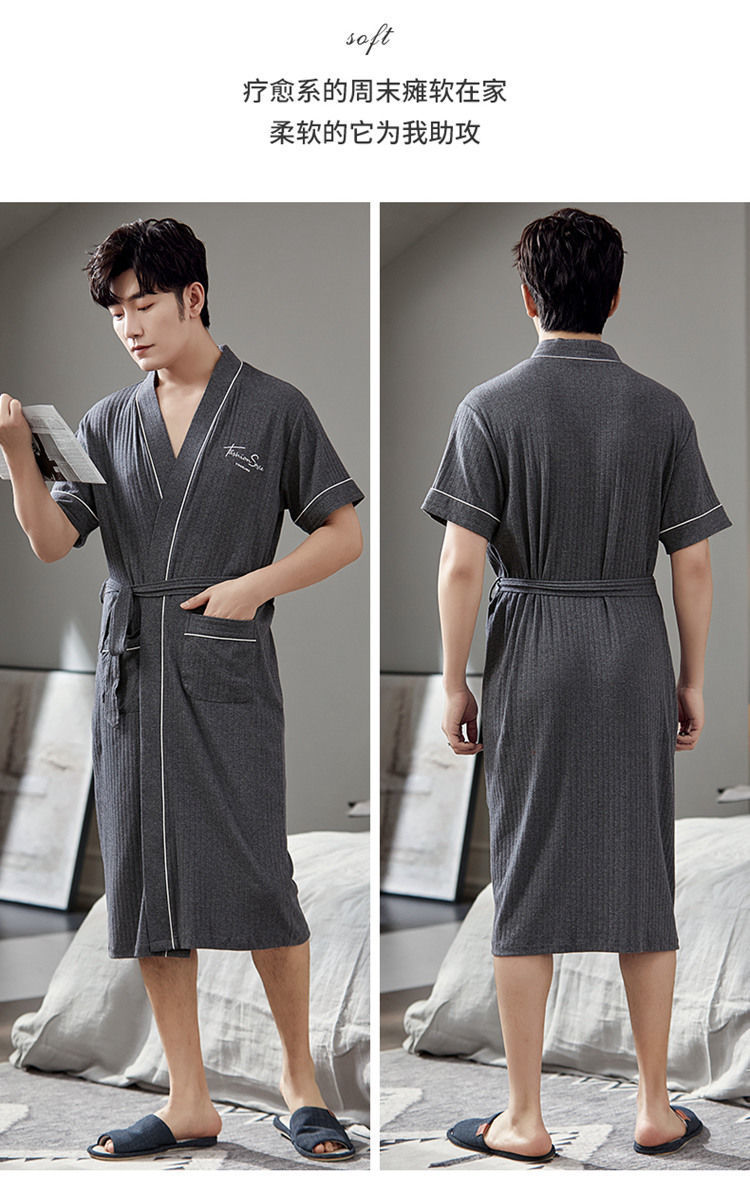 Verano de los hombres de algodón de manga corta delgada de estilo japonés de media longitud de los hombres más tamaño Albornoz pijamas de verano