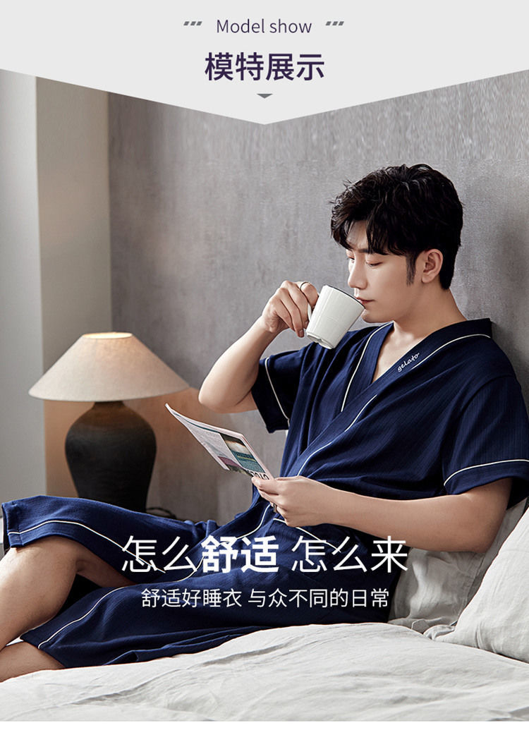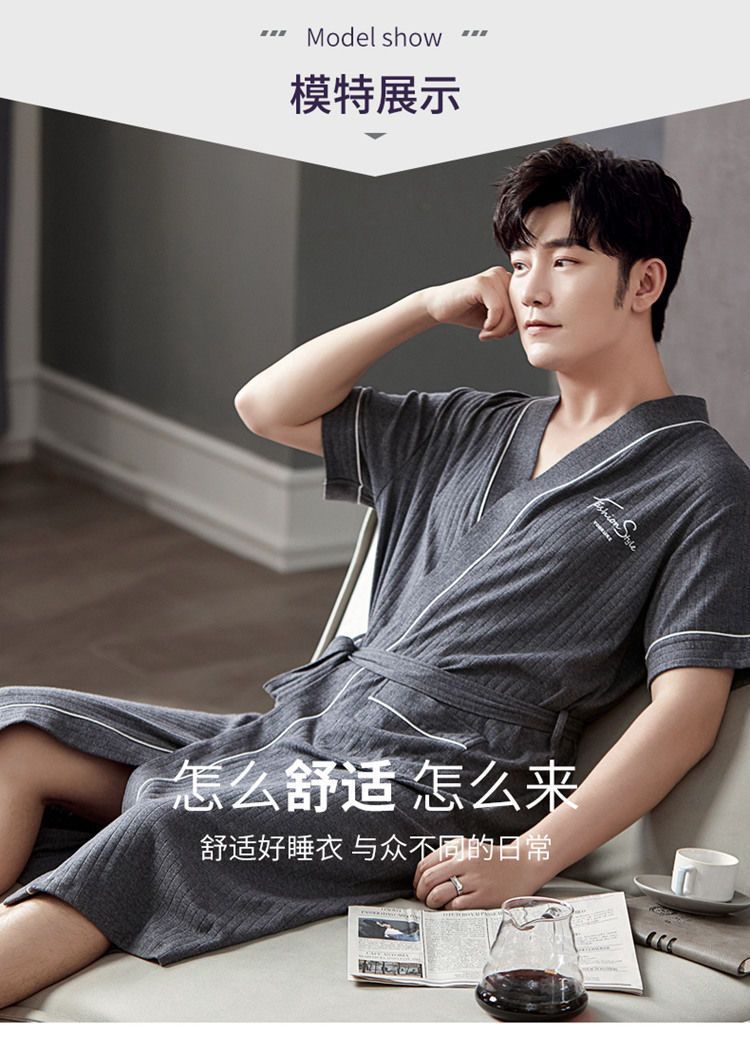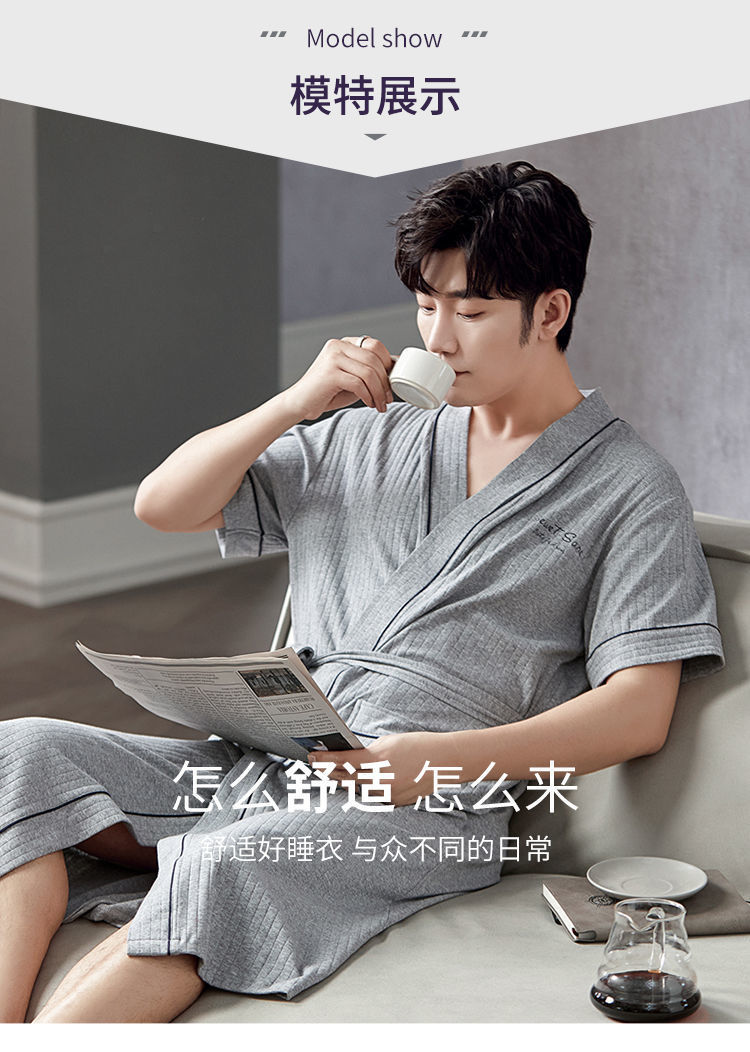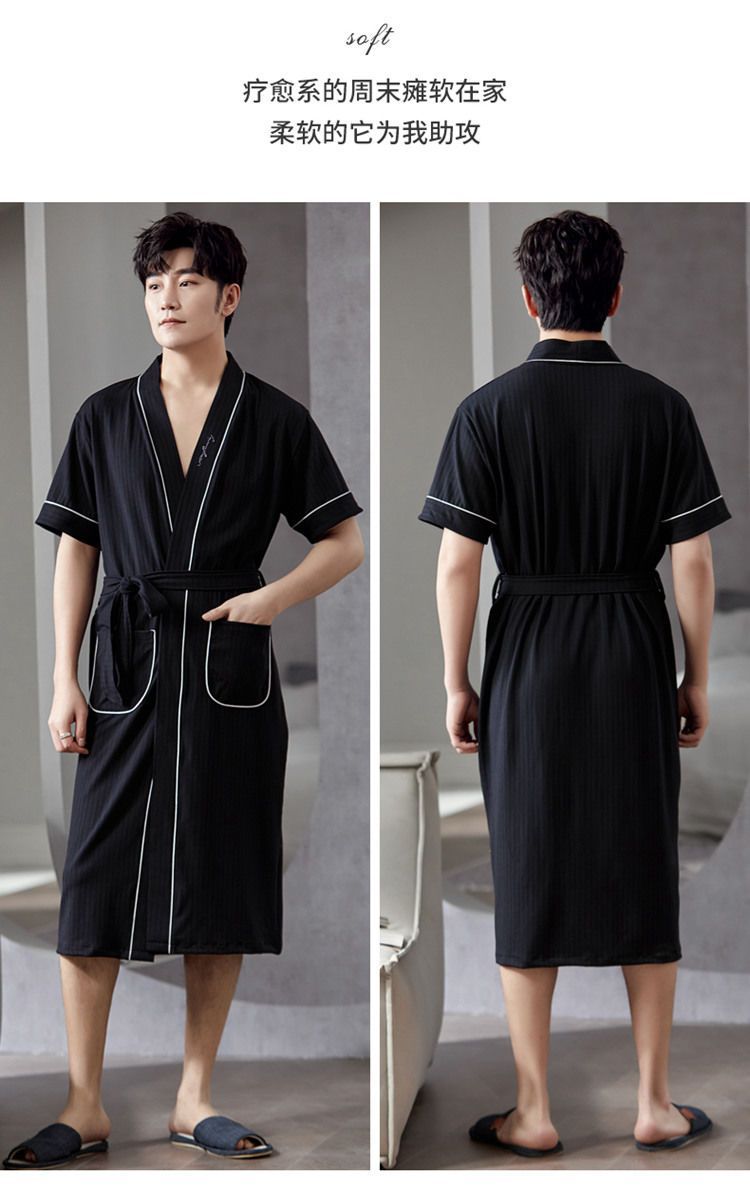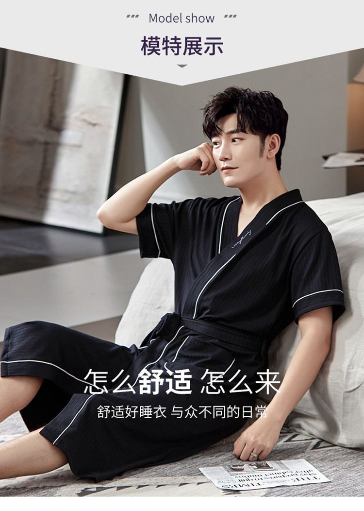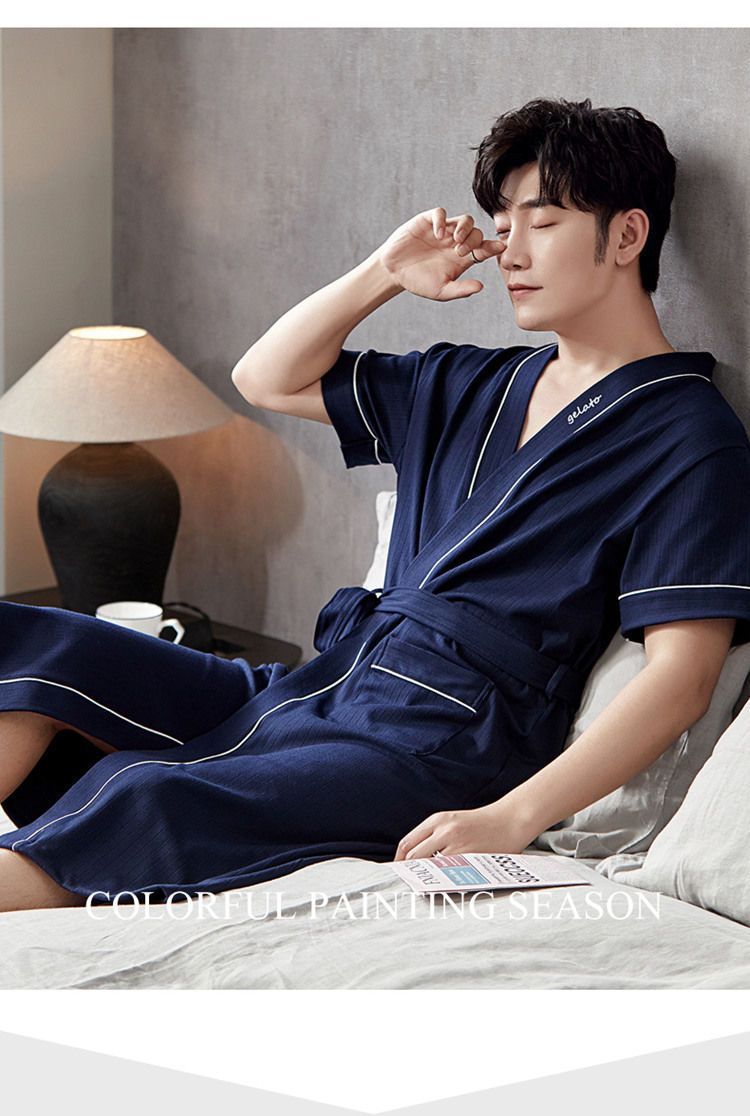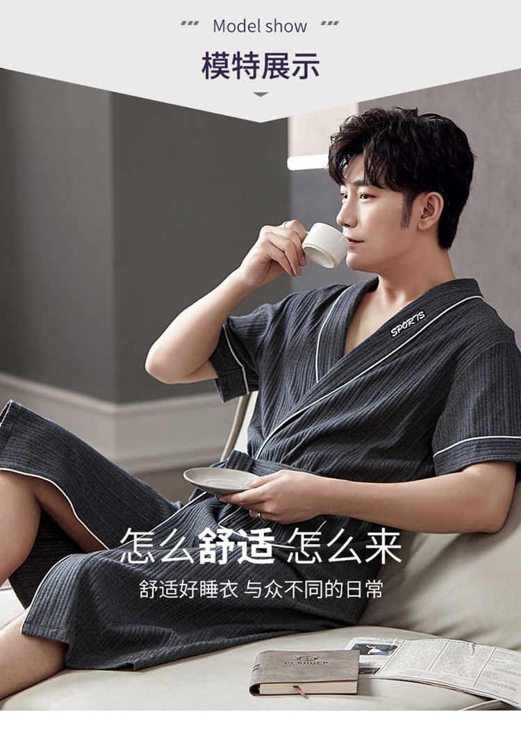 Verano de los hombres de algodón de manga corta delgada de estilo japonés de media longitud de los hombres más tamaño Albornoz pijamas de verano
