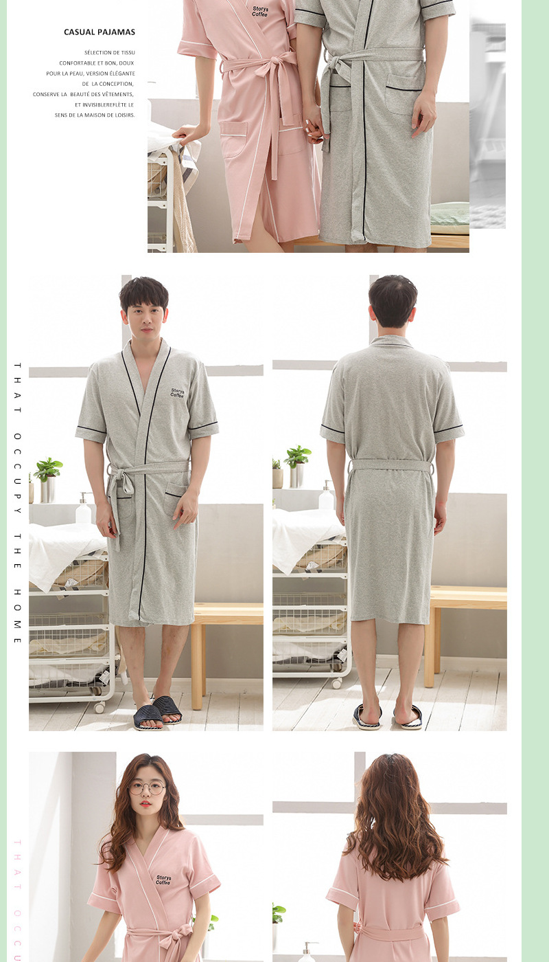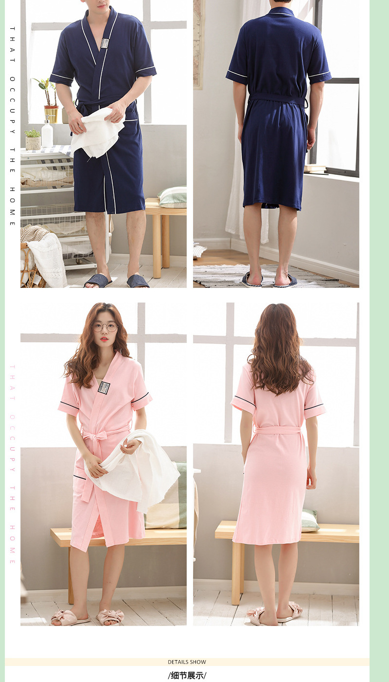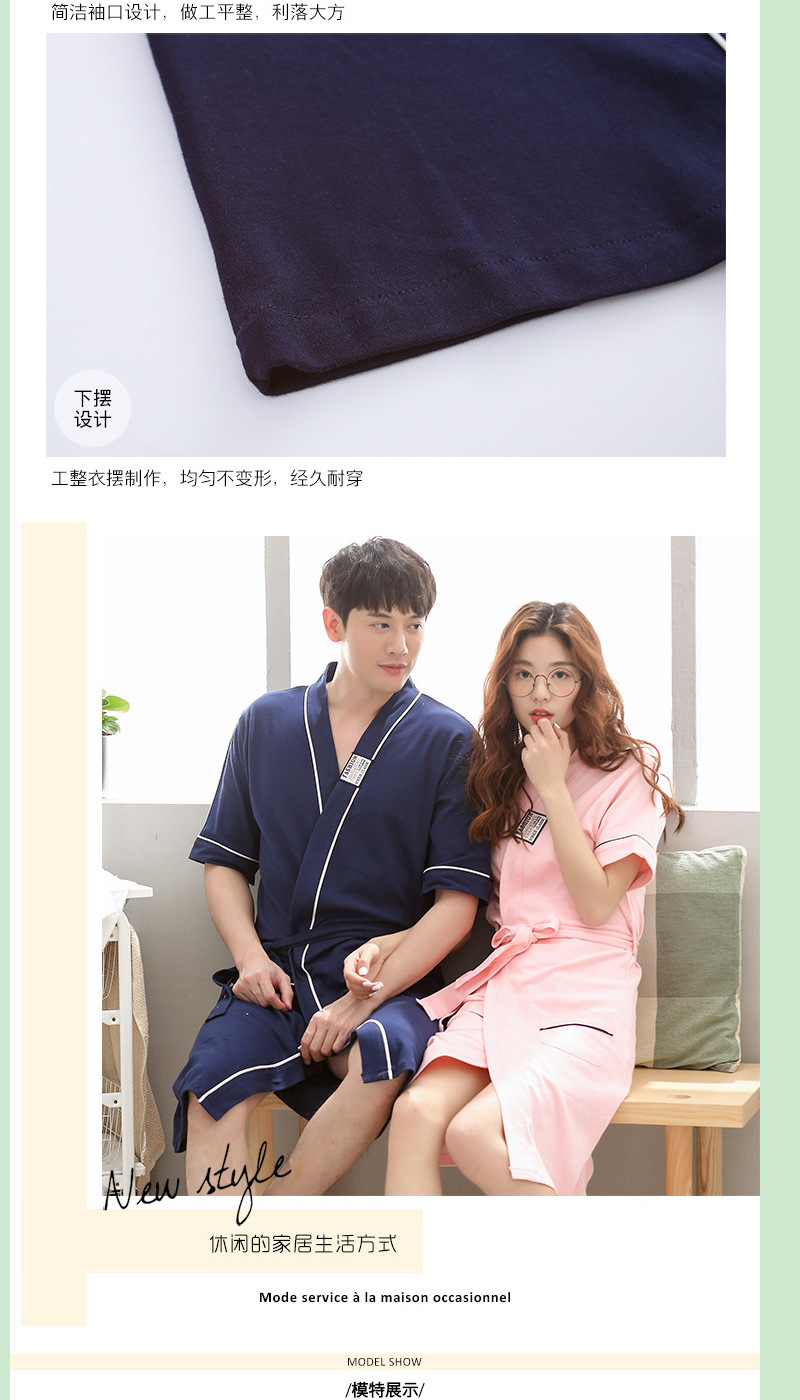 Pareja de verano japonés Albornoz manga corta algodón los hombres y las mujeres largo pijamas inicio desgaste estilo coreano camisón