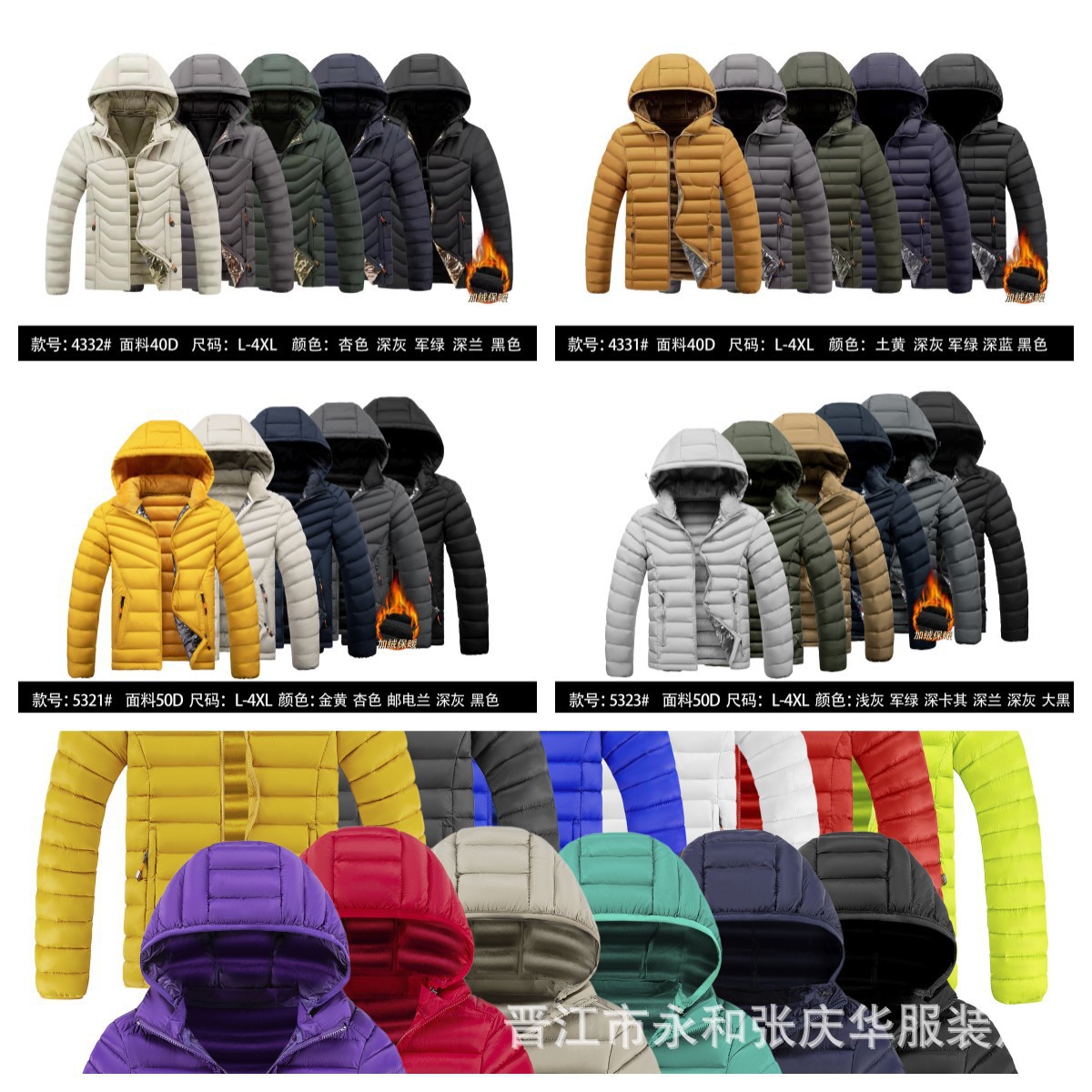 Comercio exterior abrigo de algodón acolchado de los hombres 23 nuevo invierno engrosada abajo Chaqueta de algodón acolchado costilla Chaqueta de algodón acolchado caliente con capucha Chaqueta de algodón acolchado bolsa portátil