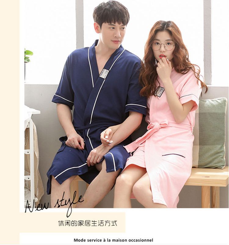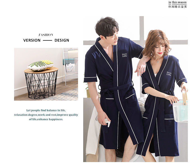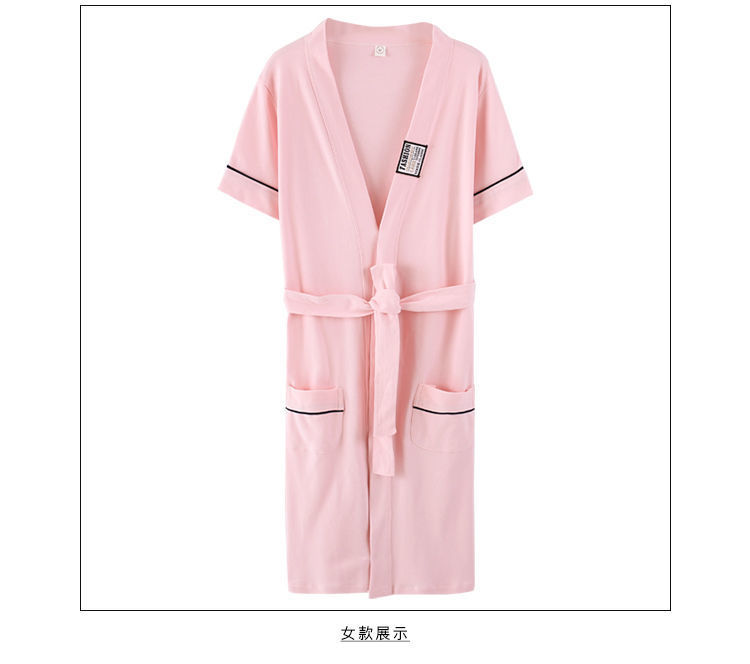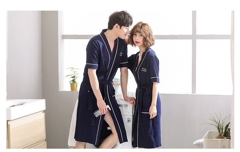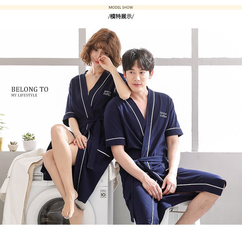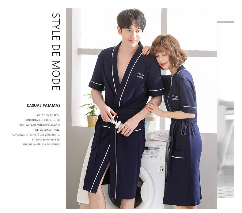 Pareja de primavera y verano Camisón de algodón de manga corta moda sexy largo Albornoz de algodón de las mujeres pijamas de los hombres