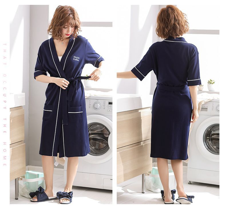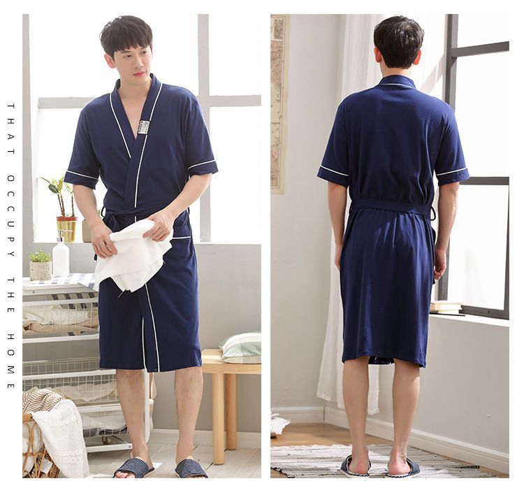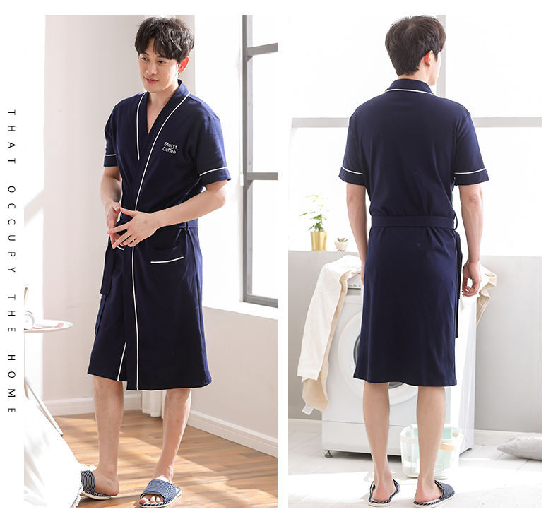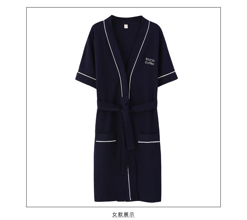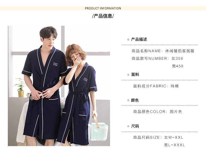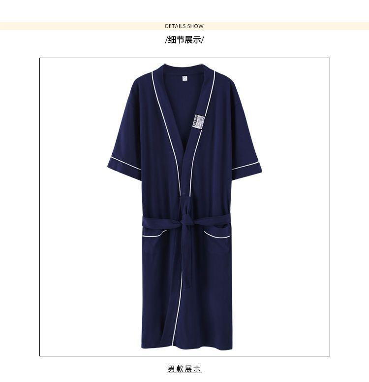 Pareja de primavera y verano Camisón de algodón de manga corta moda sexy largo Albornoz de algodón de las mujeres pijamas de los hombres