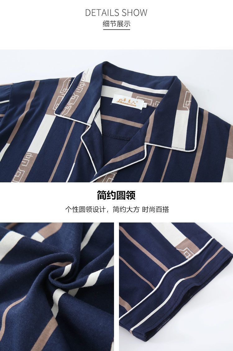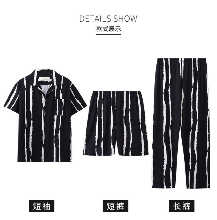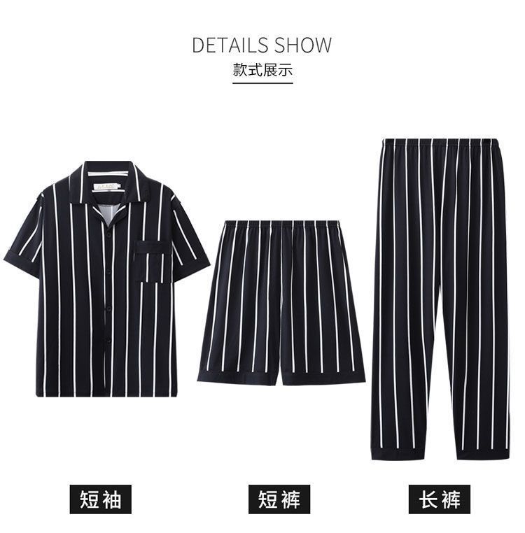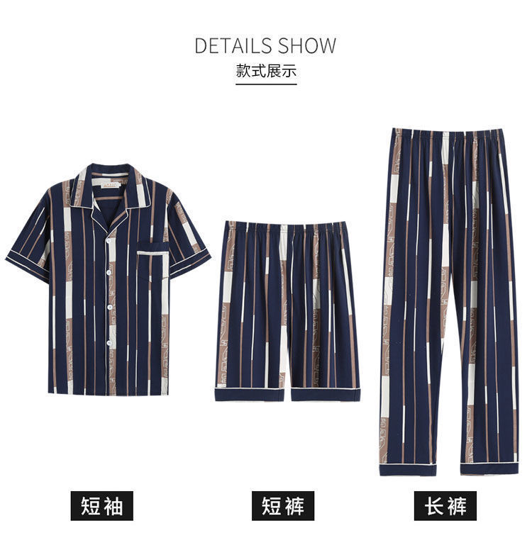 Pijamas de hombre de tres piezas de verano Pantalones de manga corta 100% algodón desgaste del hogar adolescentes pueden usar traje fino