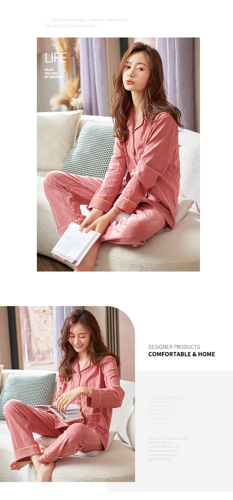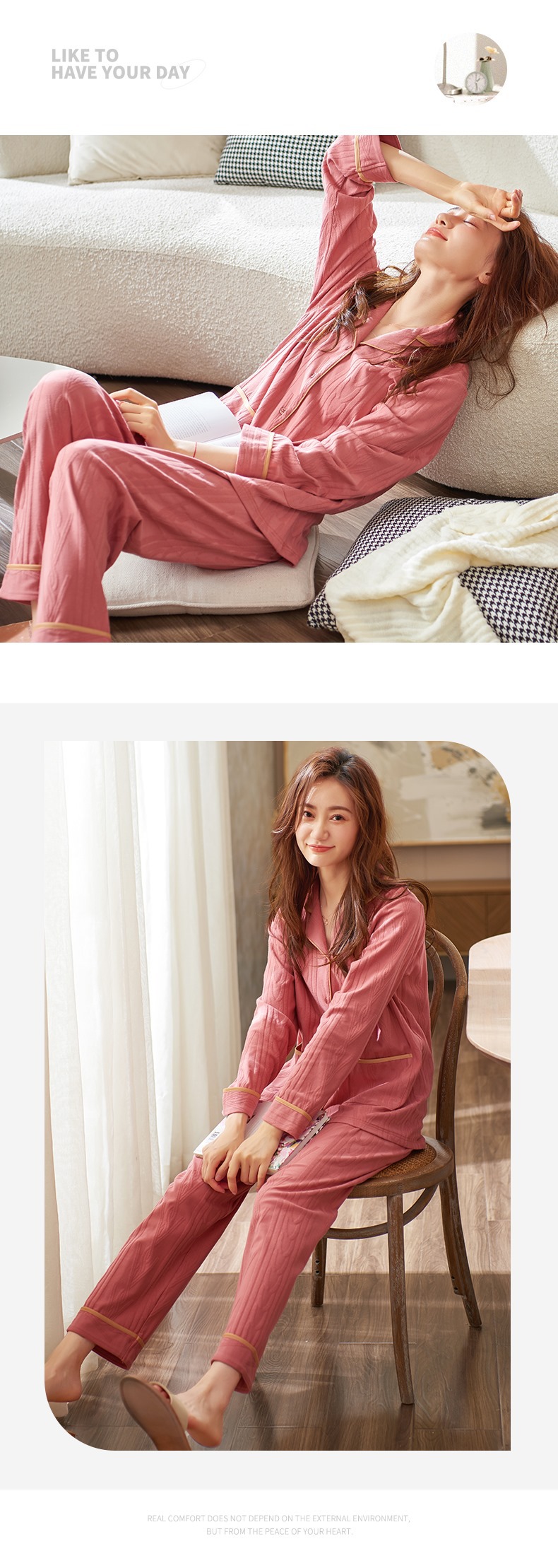 Pijamas de las mujeres primavera y otoño 100% algodón manga larga 2023 nueva moda simple desgaste del hogar más tamaño traje
