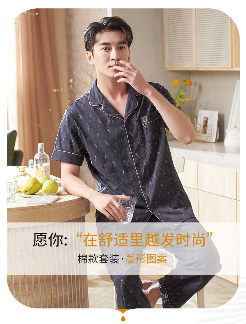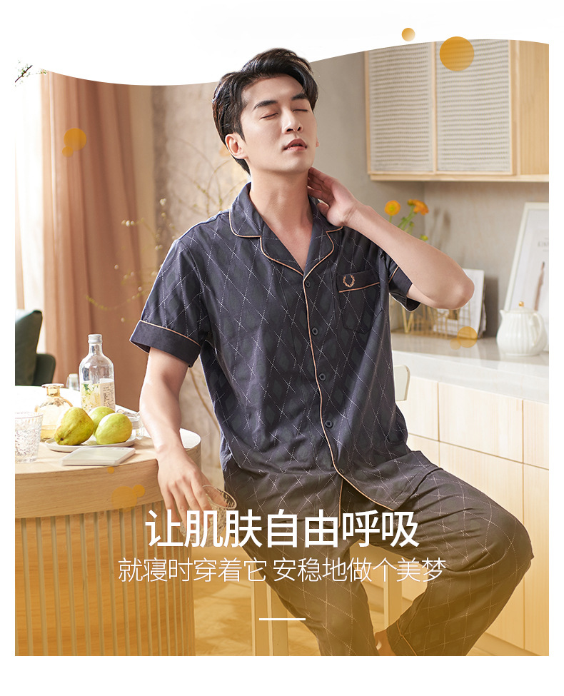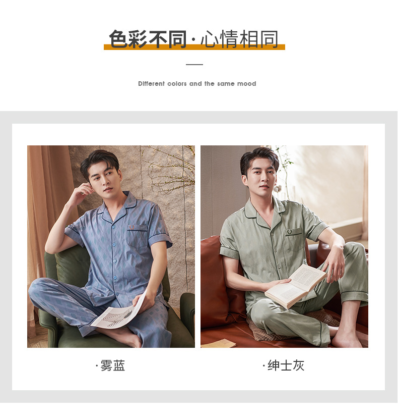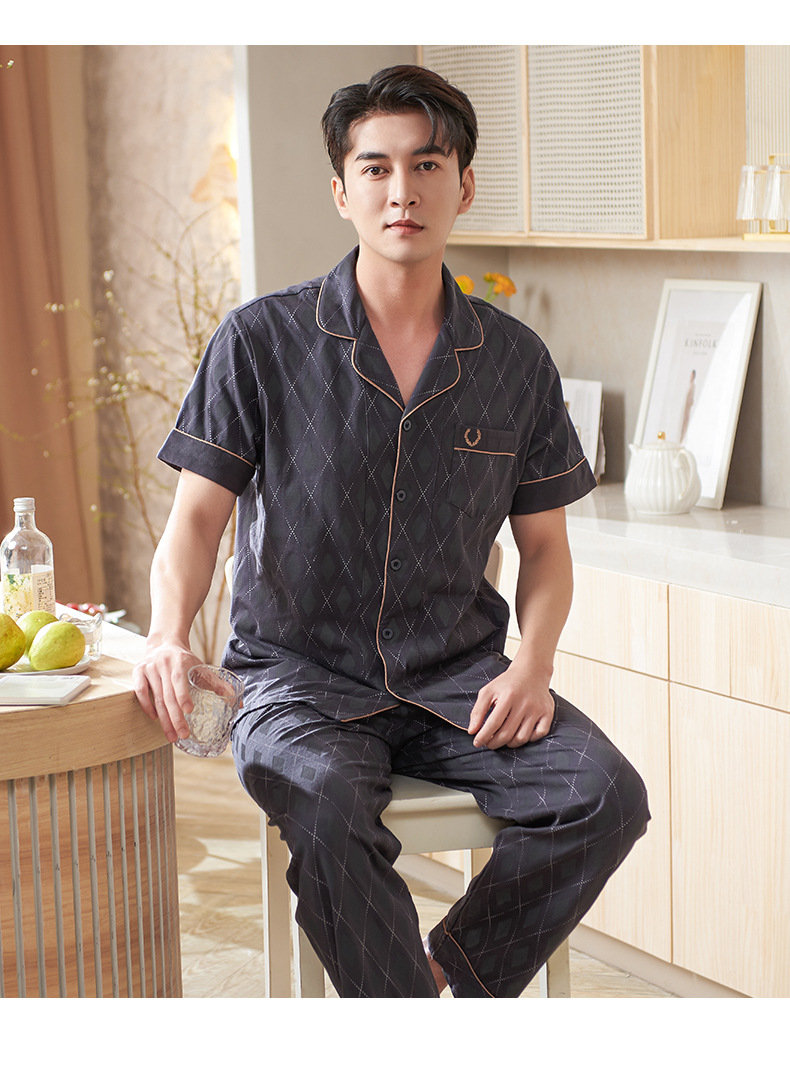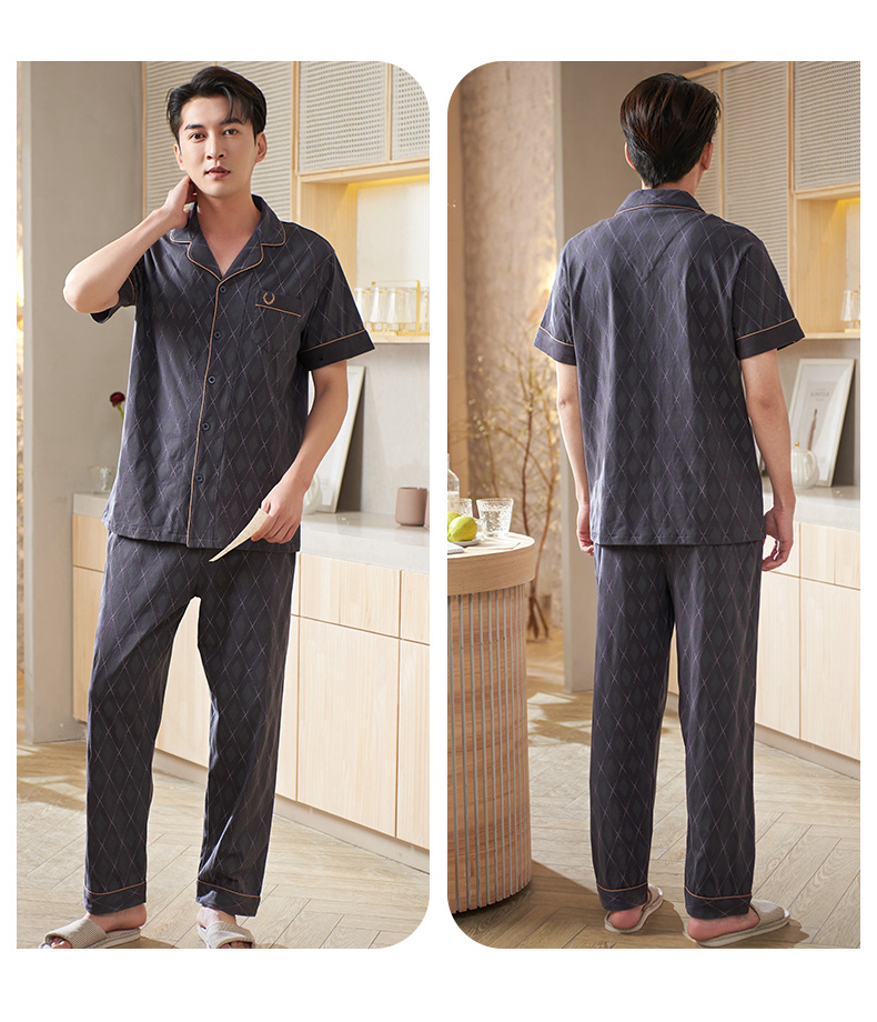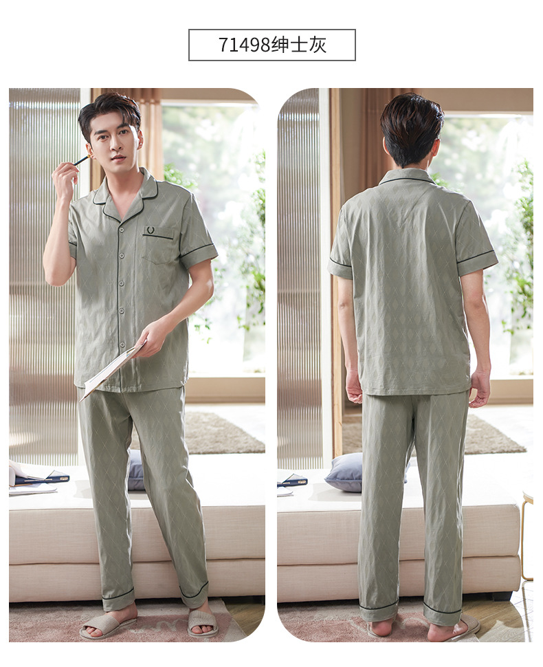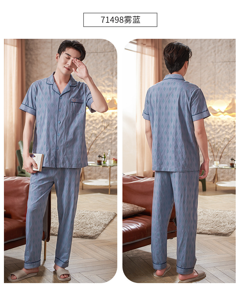Pijamas de mediana edad para hombres de verano Delgado 100% algodón de manga larga para hombres de verano suelto traje para el hogar