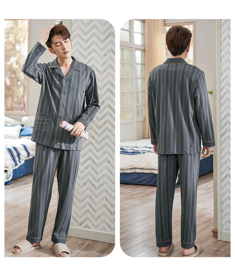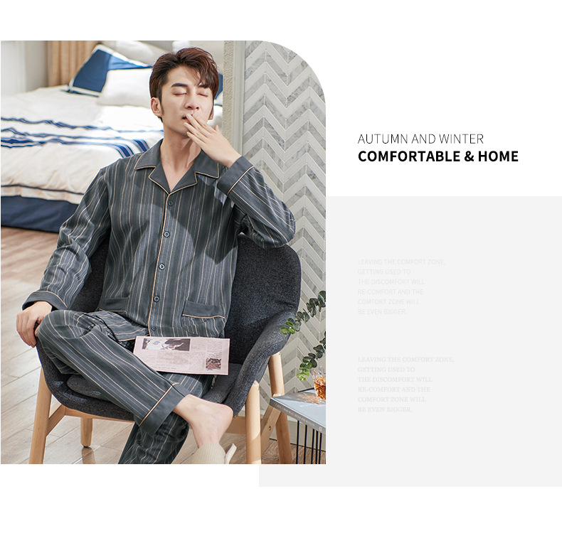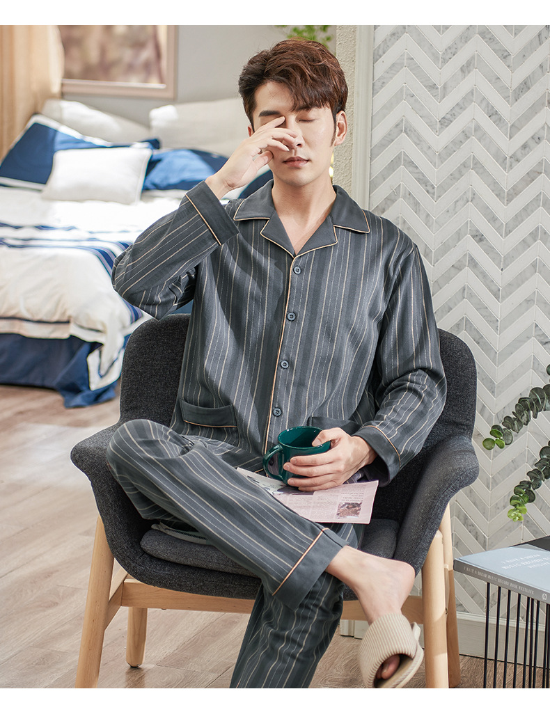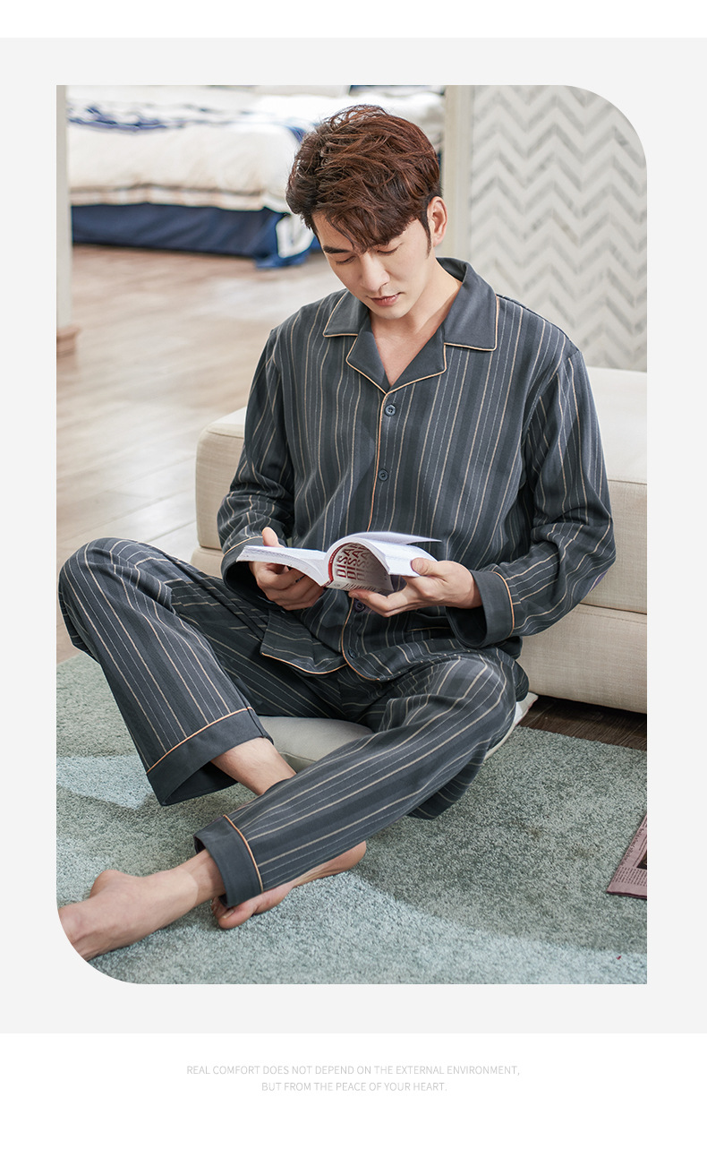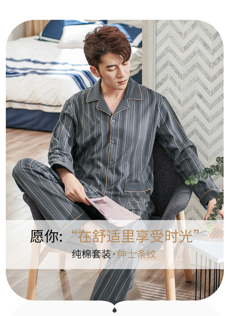 Pijamas hombres primavera y otoño 100% algodón de manga larga a rayas ropa para el hogar de los hombres Otoño e Invierno primavera traje de talla grande