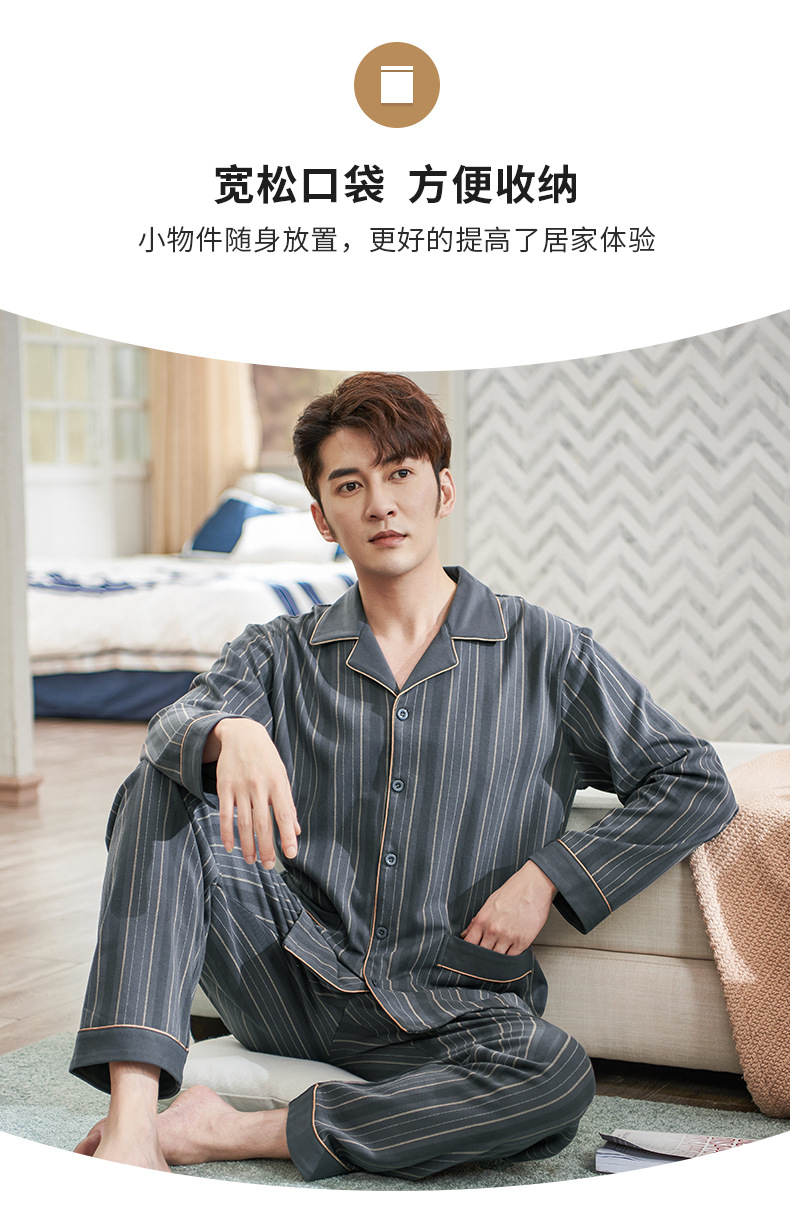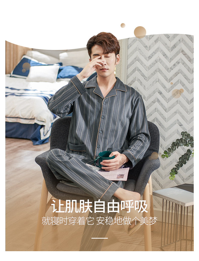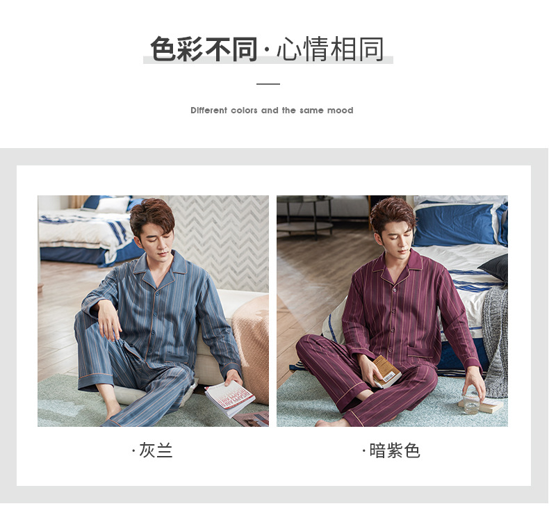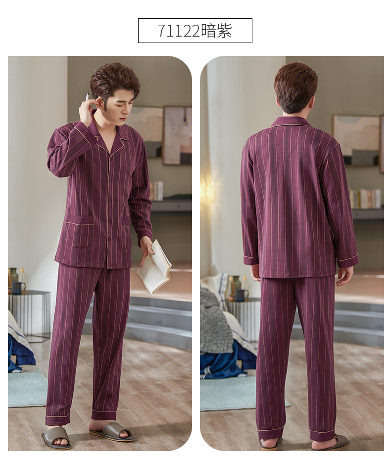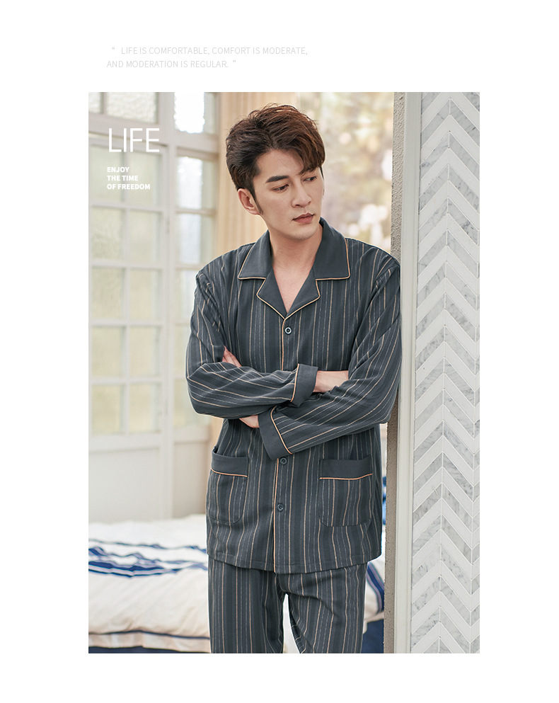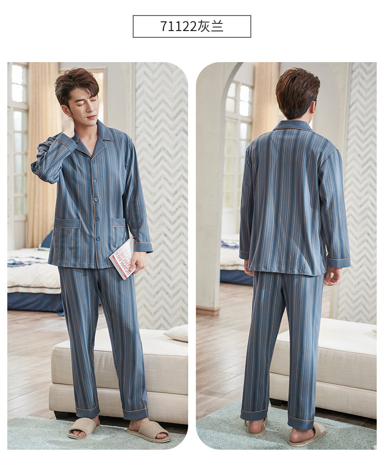 Pijamas hombres primavera y otoño 100% algodón de manga larga a rayas ropa para el hogar de los hombres Otoño e Invierno primavera traje de talla grande