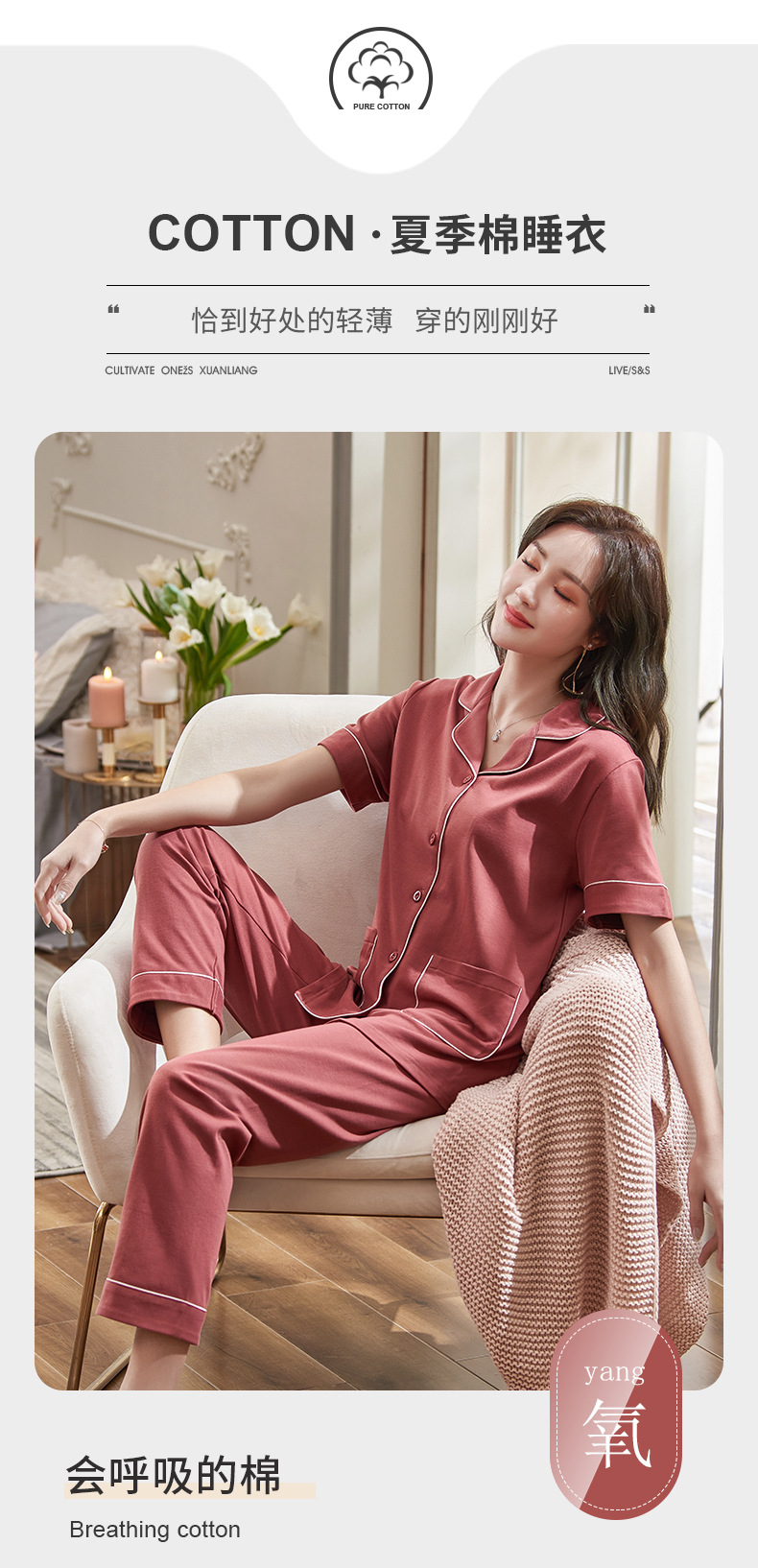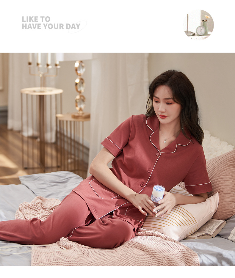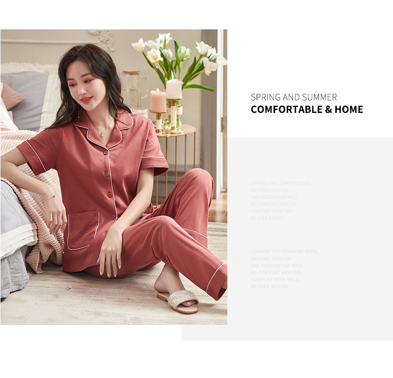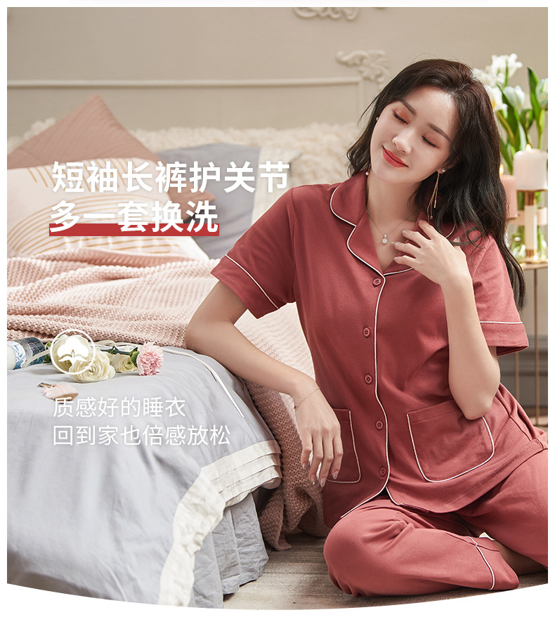 Pijamas de verano para mujer 100% pantalones de manga corta de algodón ropa para el hogar verano para mujer talla grande más delgada primavera y verano traje de dos piezas