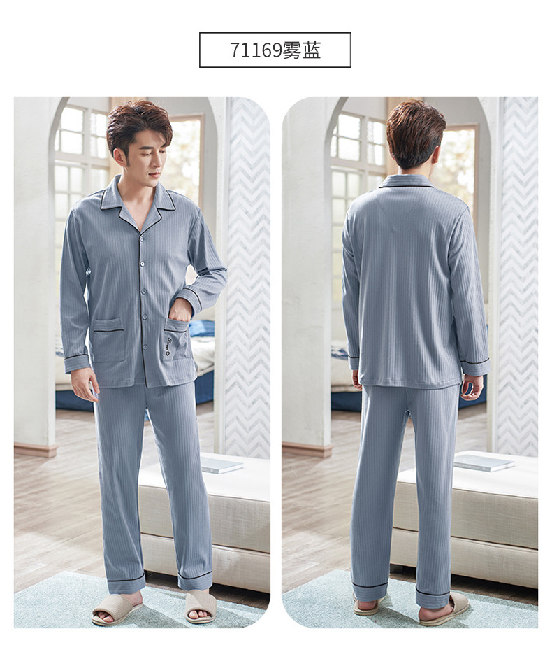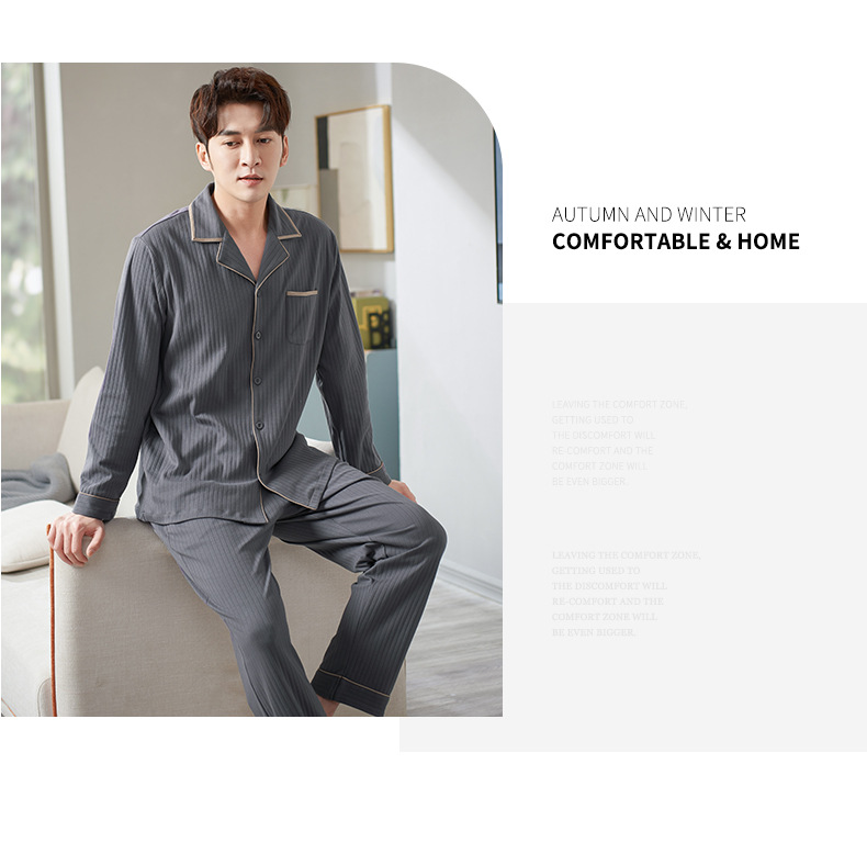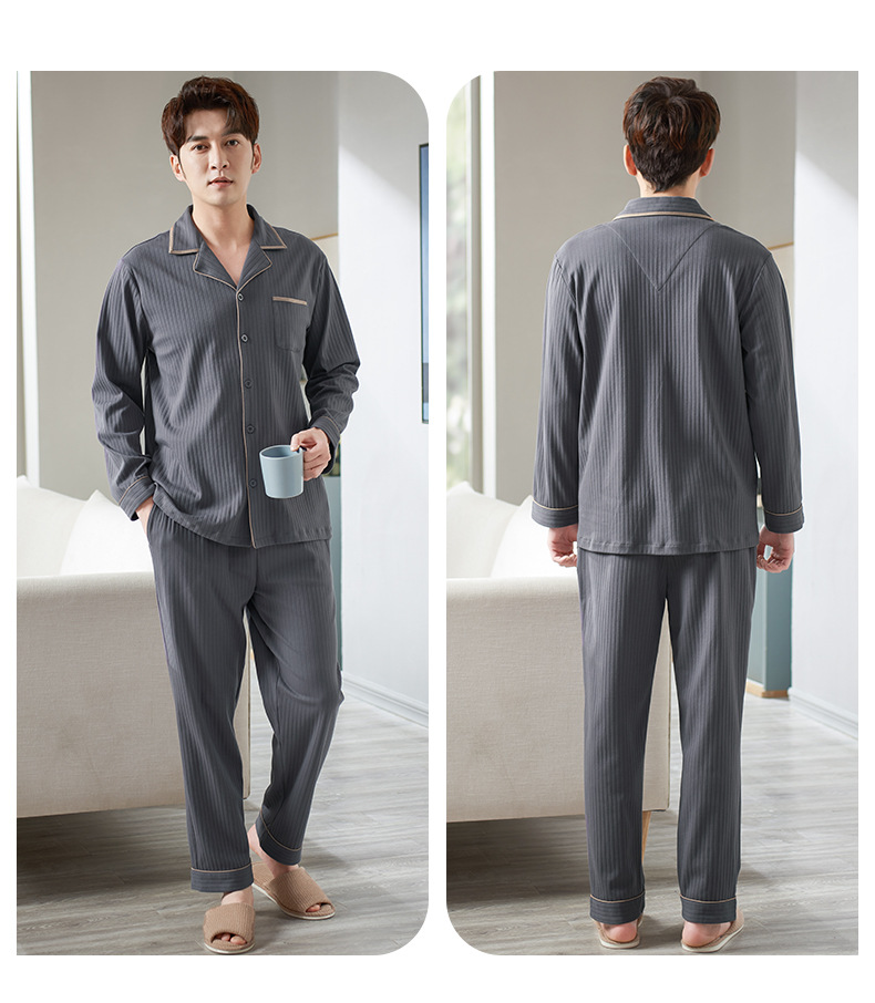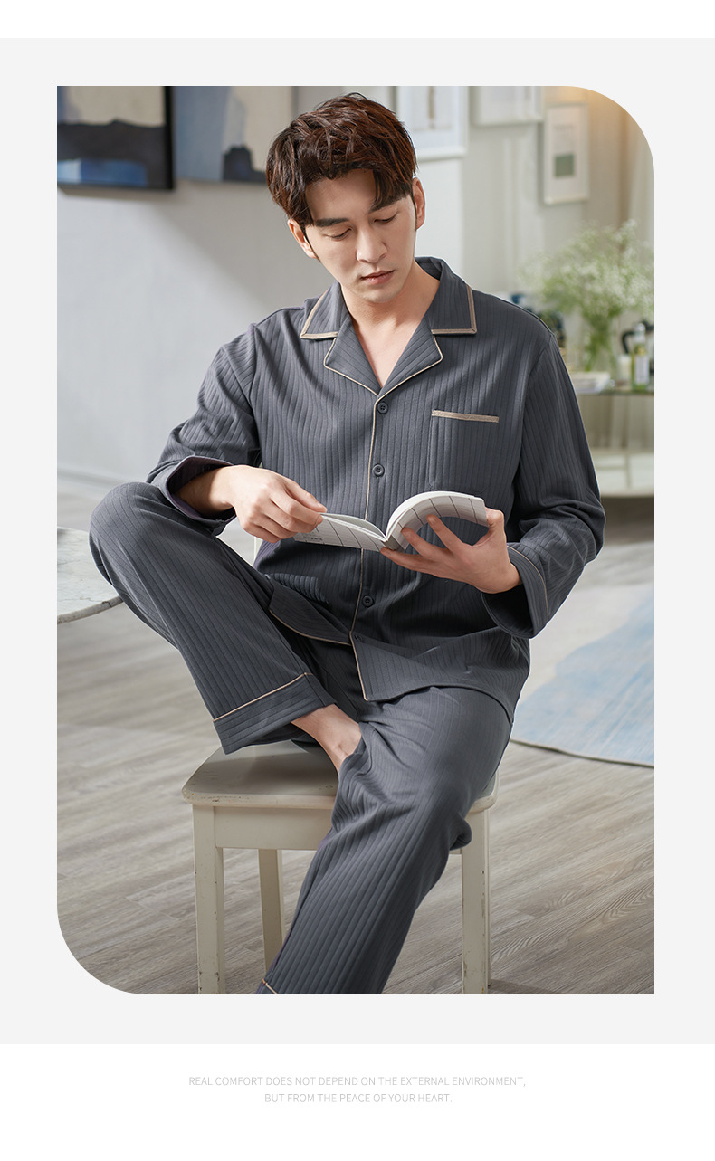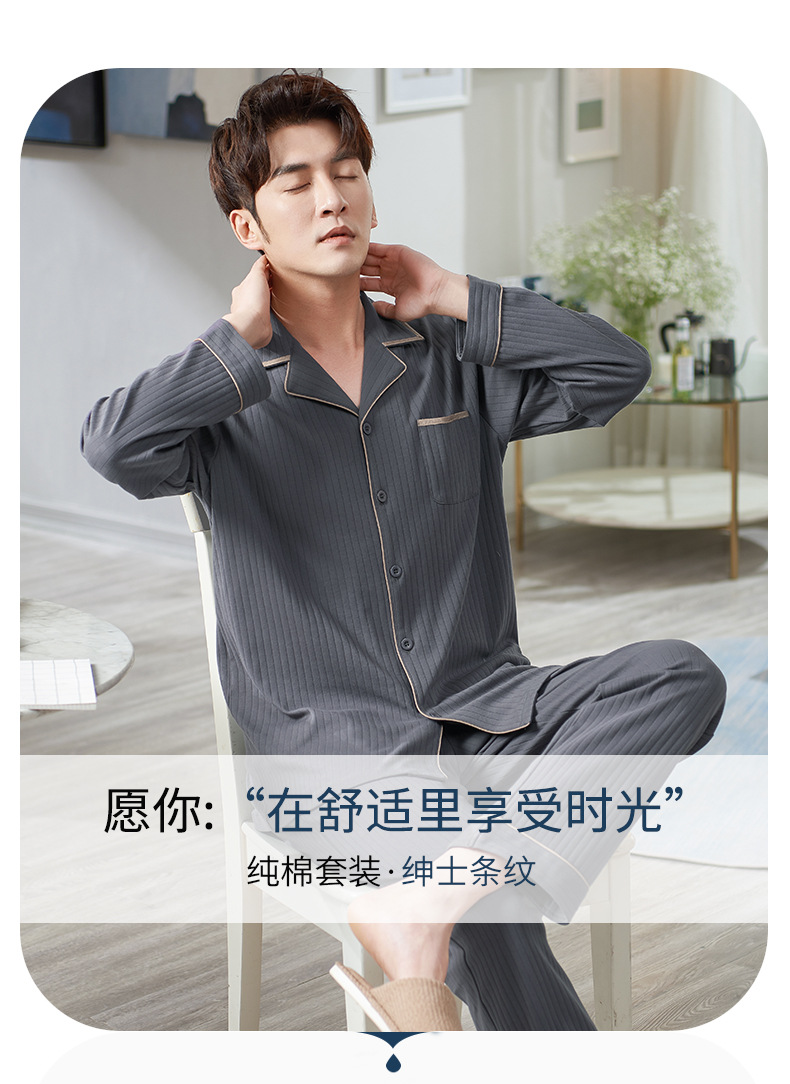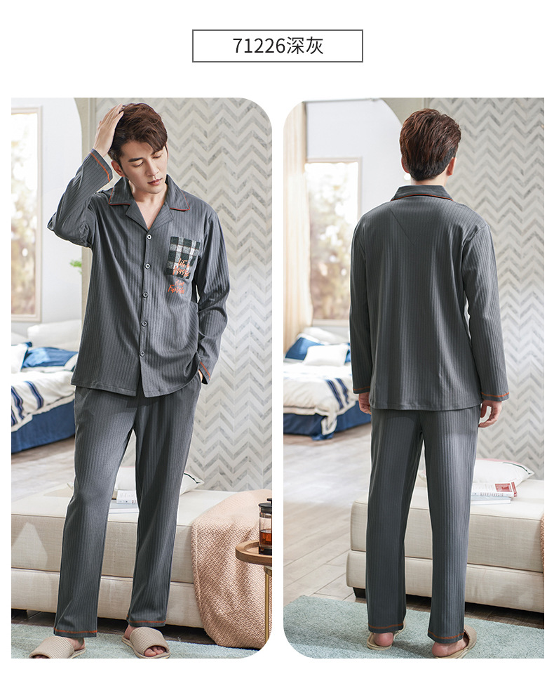Pijamas de los hombres de primavera y otoño 100% algodón de manga larga más tamaño de los hombres sueltos de ropa para el hogar de otoño e invierno cardigan traje