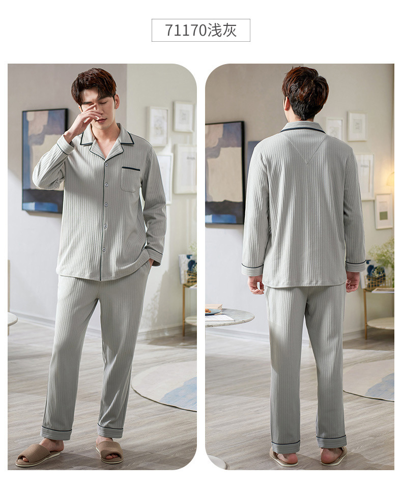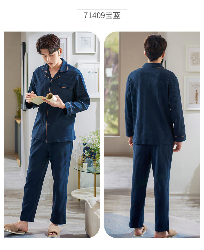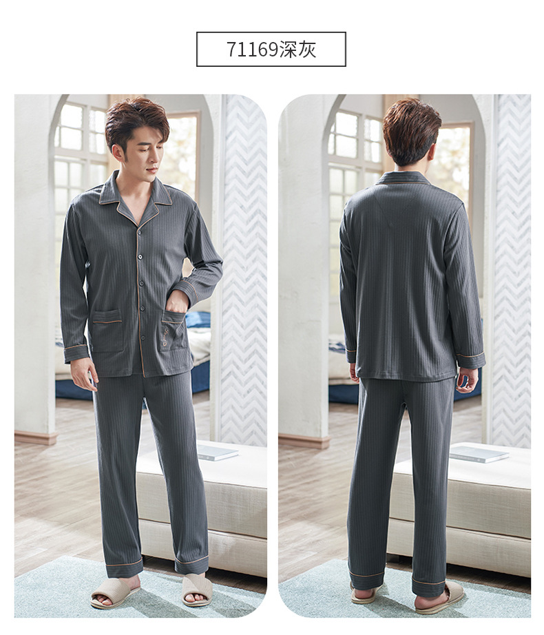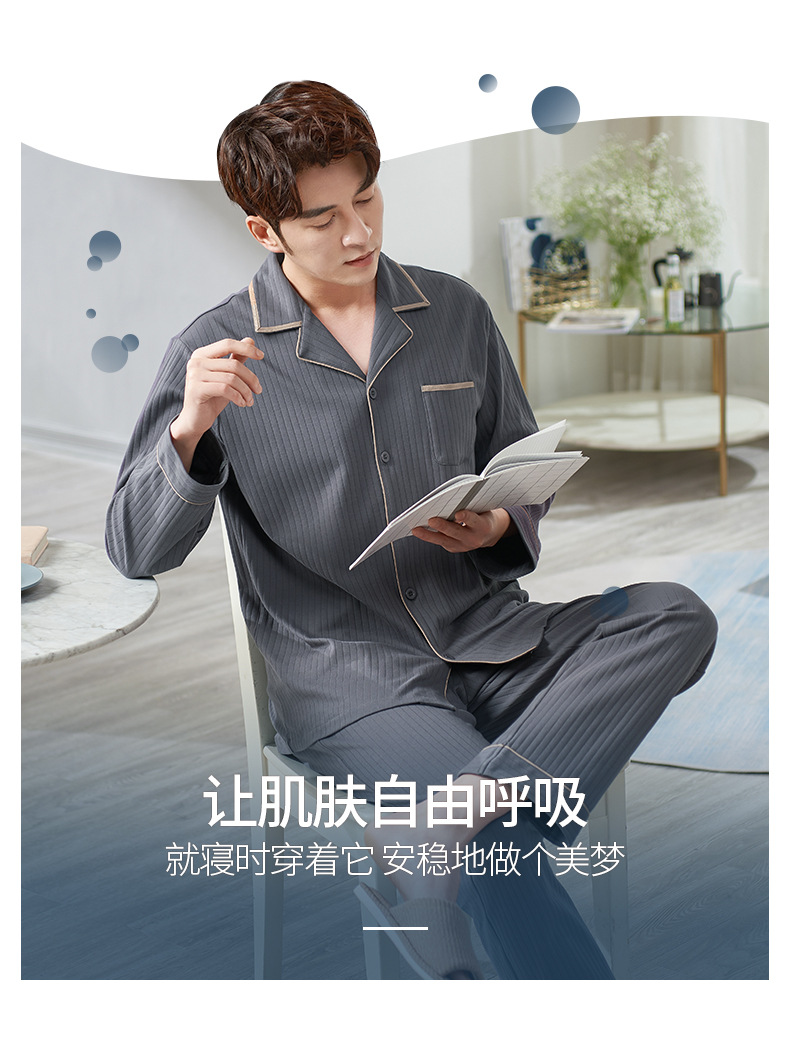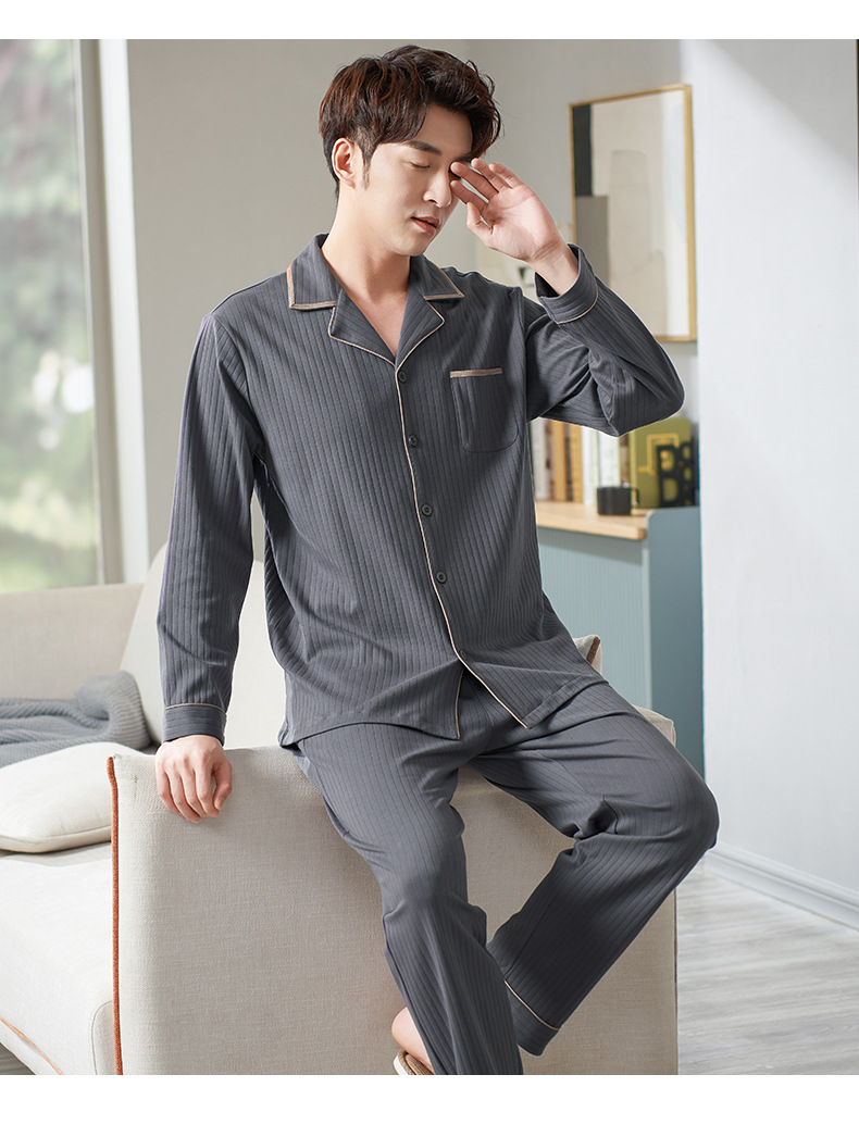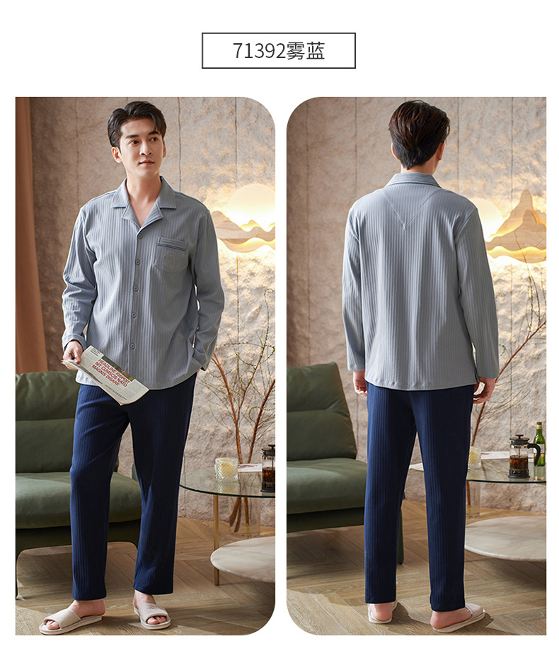 Pijamas de los hombres de primavera y otoño 100% algodón de manga larga más tamaño de los hombres sueltos de ropa para el hogar de otoño e invierno cardigan traje
