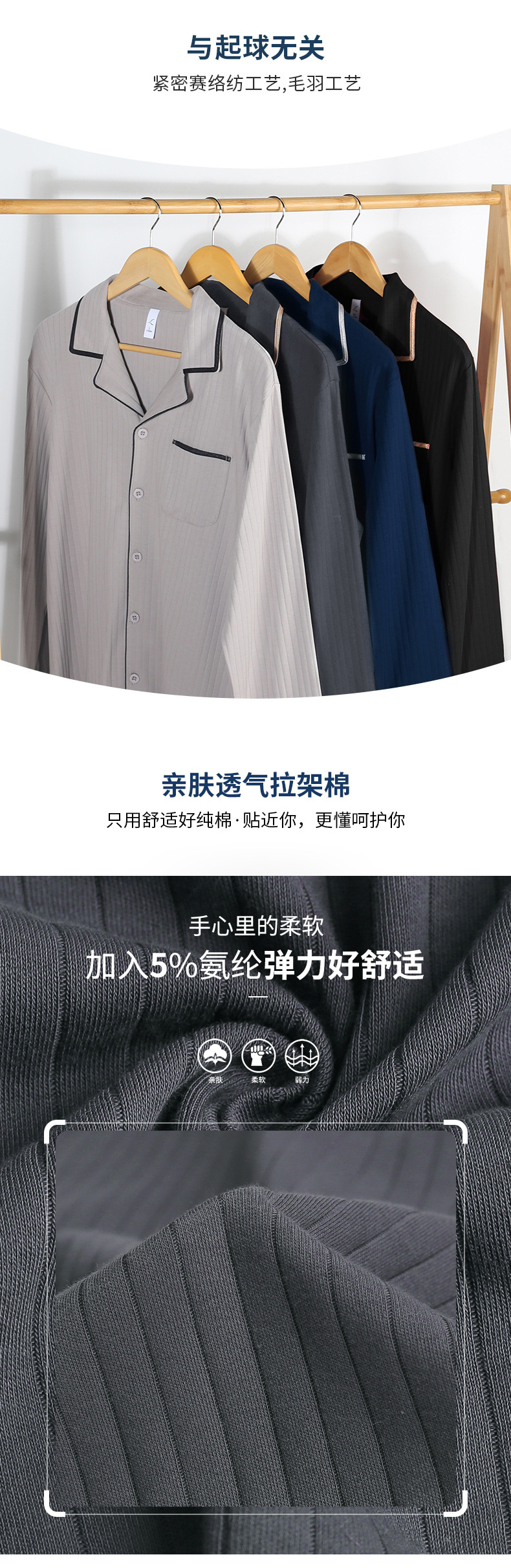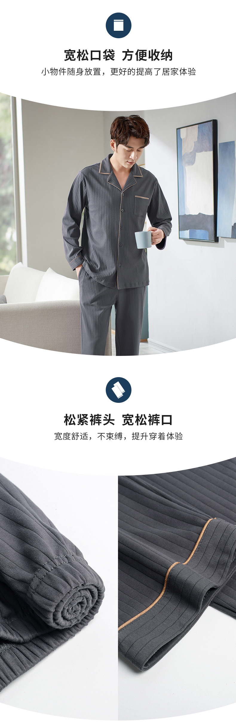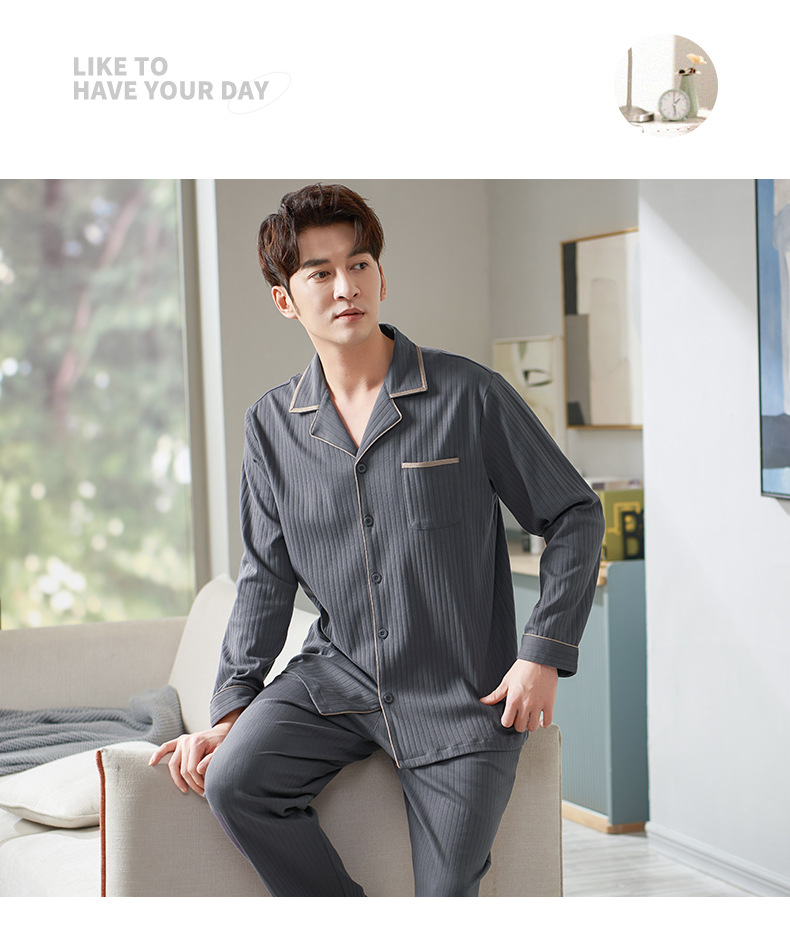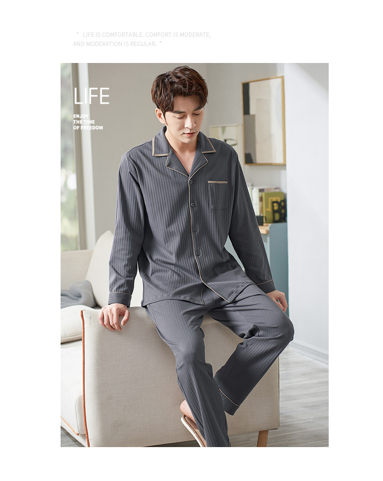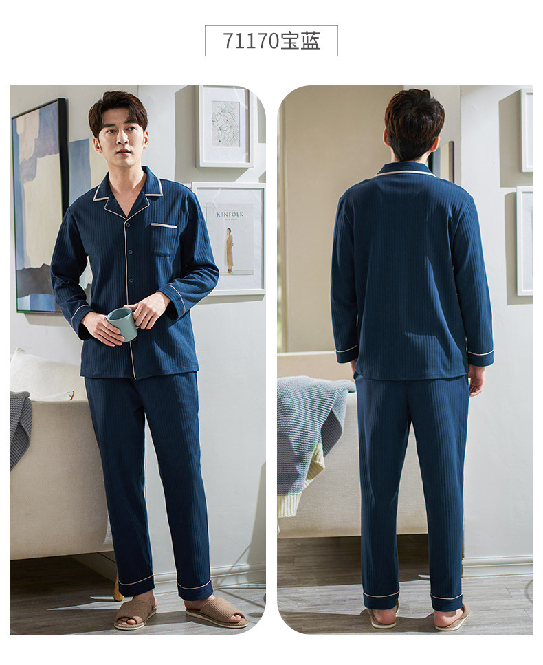 Pijamas de los hombres de primavera y otoño 100% algodón de manga larga más tamaño de los hombres sueltos de ropa para el hogar de otoño e invierno cardigan traje