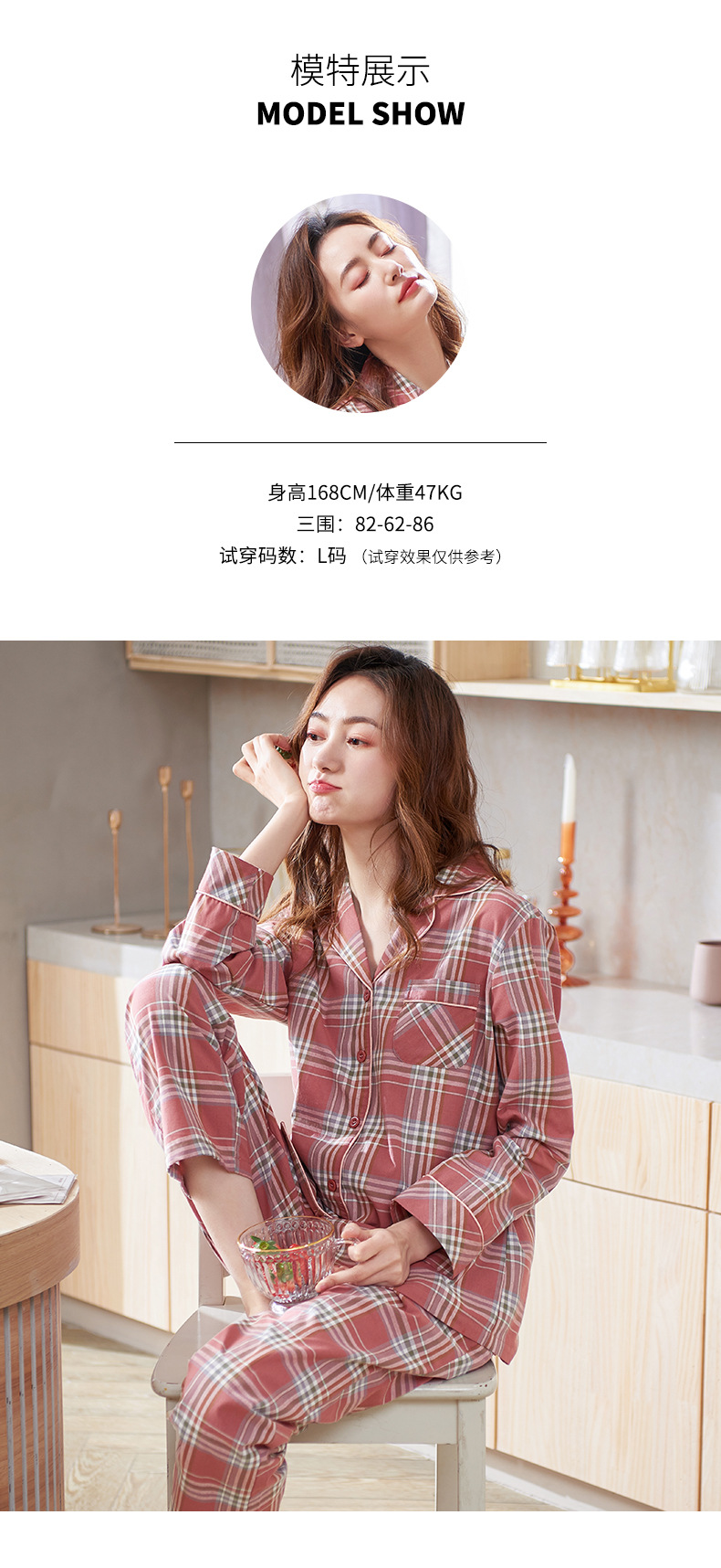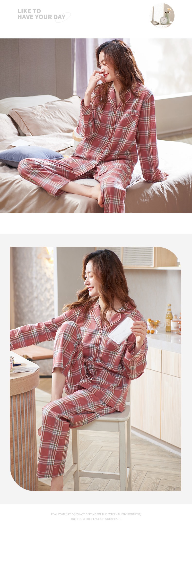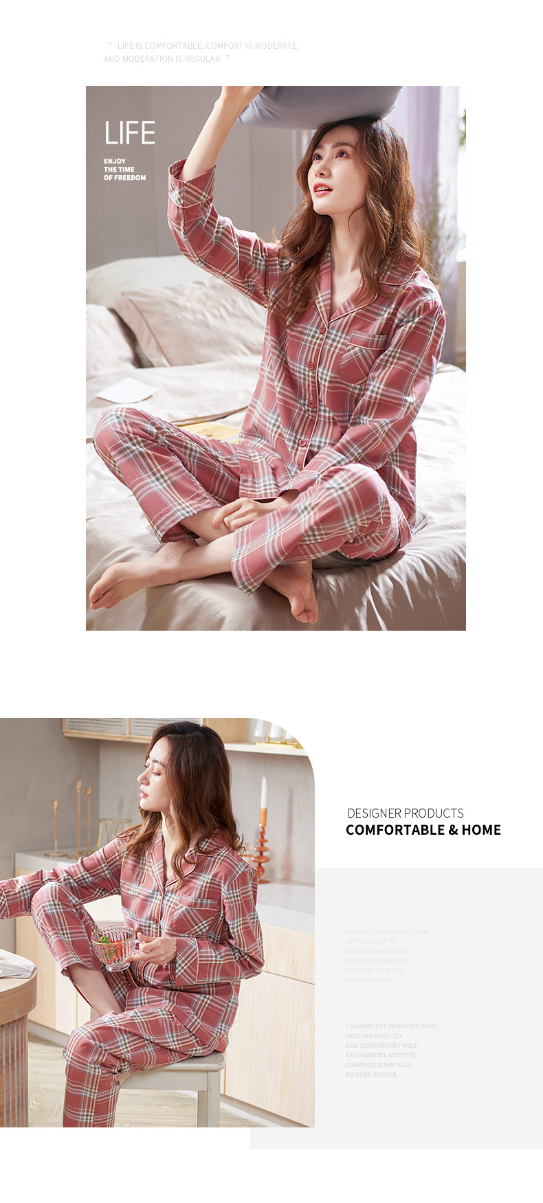 Primavera y otoño pijamas de las mujeres del otoño fino 100% algodón manga larga algodón Plaid Home wear traje de mujer