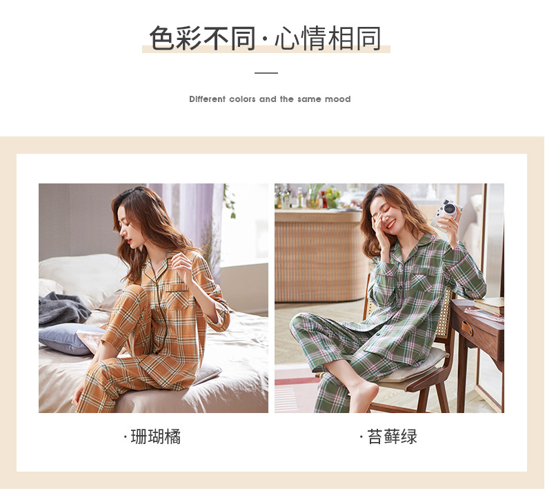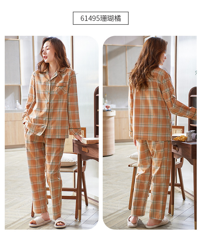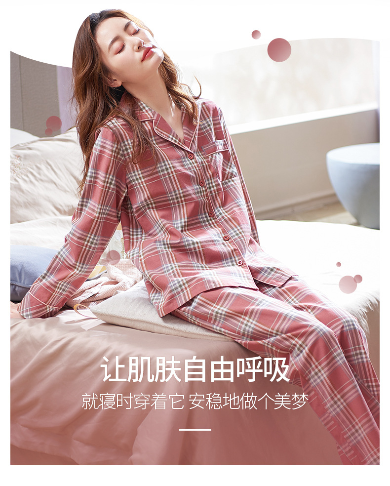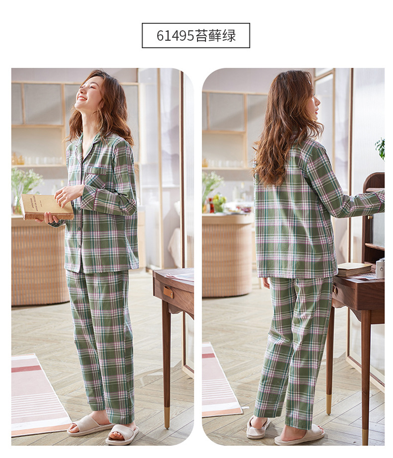 Primavera y otoño pijamas de las mujeres del otoño fino 100% algodón manga larga algodón Plaid Home wear traje de mujer