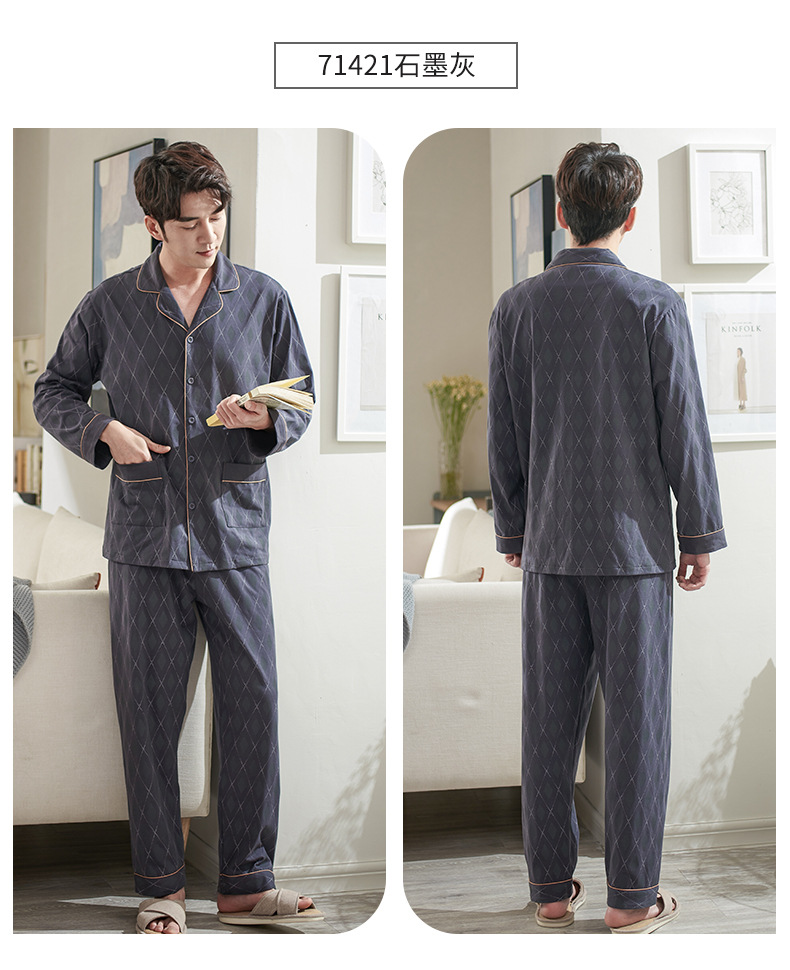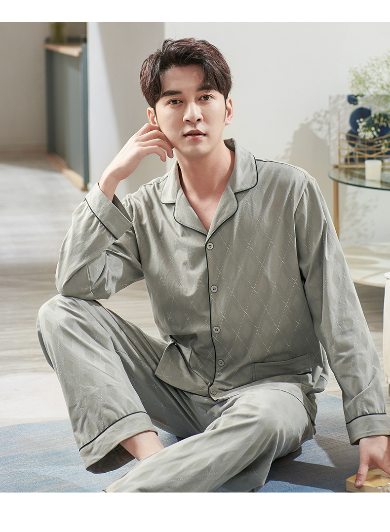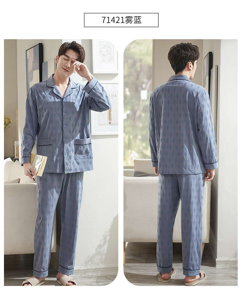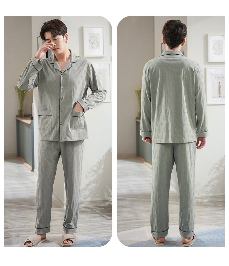 Pijamas de los hombres de primavera y otoño primavera 100% algodón de manga larga juventud otoño suelta ropa exterior homewear traje de los hombres