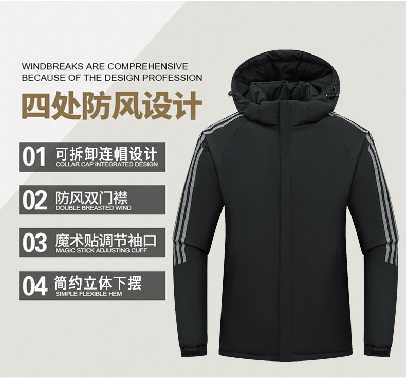 Abrigo de algodón acolchado de doble cara para hombre de tres barras de invierno con capucha engrosada más tamaño cálido abrigo de algodón acolchado para hombre fabricante de abrigos