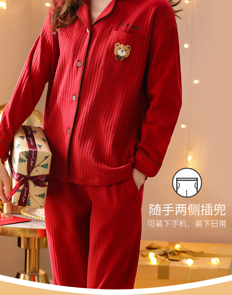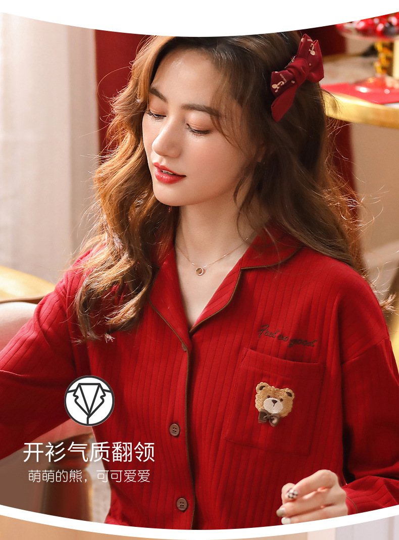 Pijamas de mujer primavera y otoño 100% algodón de manga larga ropa para el hogar conejo rojo año traje de mujer