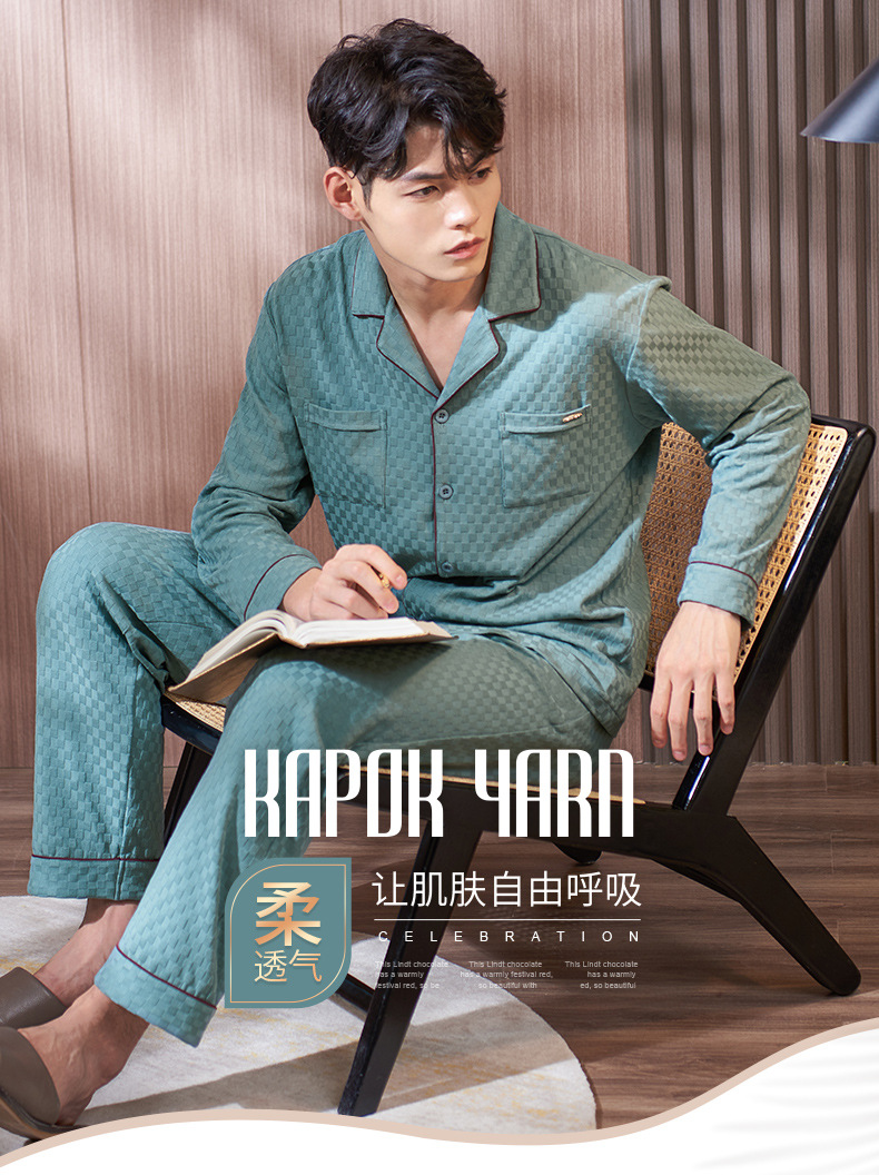 Plaid pijamas hombres de primavera y otoño 100% algodón manga larga más tamaño suelto Otoño e Invierno traje de homewear Delgado