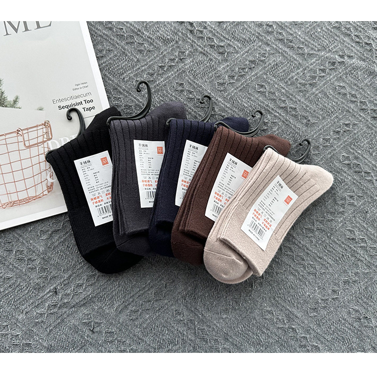 Calcetines de lana de otoño e invierno calcetines de media pantorrilla de doble aguja para hombres calcetines de Cachemira largos cálidos de color sólido calcetines de hombre Zhuji al por mayor