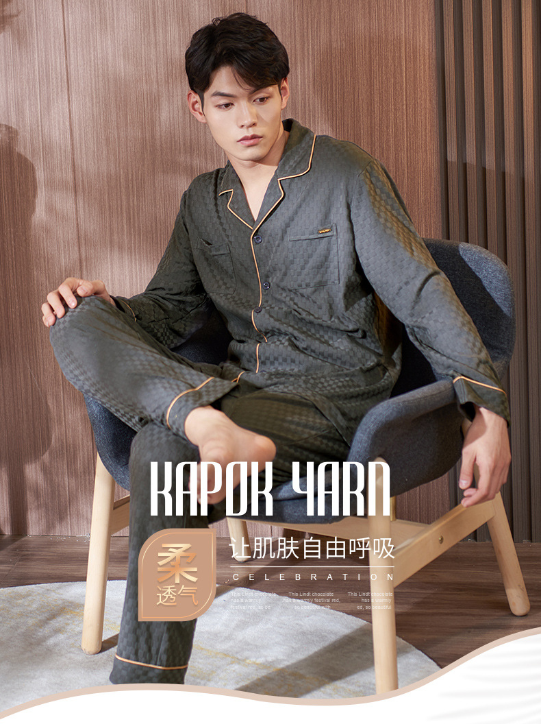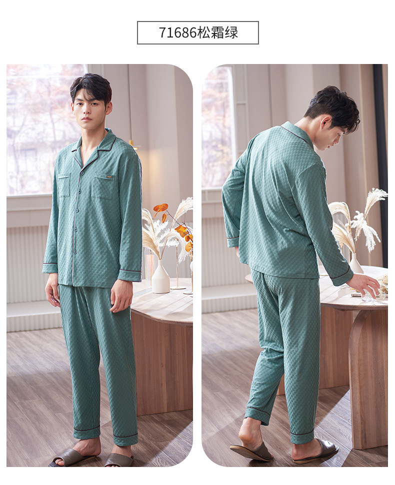 100% pijamas de algodón de los hombres de primavera y otoño de manga larga más el tamaño flojo otoño homewear traje de los hombres