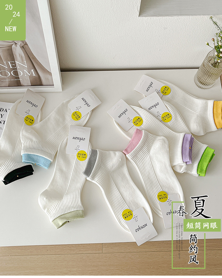 Calcetines de algodón para mujer calcetines de primavera y verano calcetines de tobillo finos de verano calcetines cortos de algodón de malla para mujer calcetines de mujer Zhuji