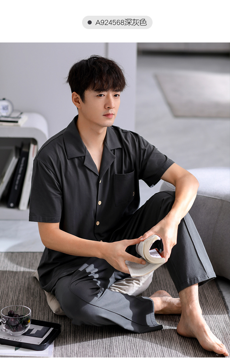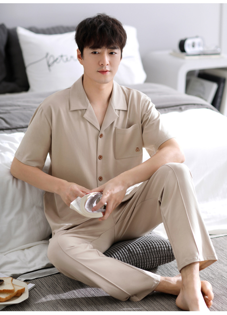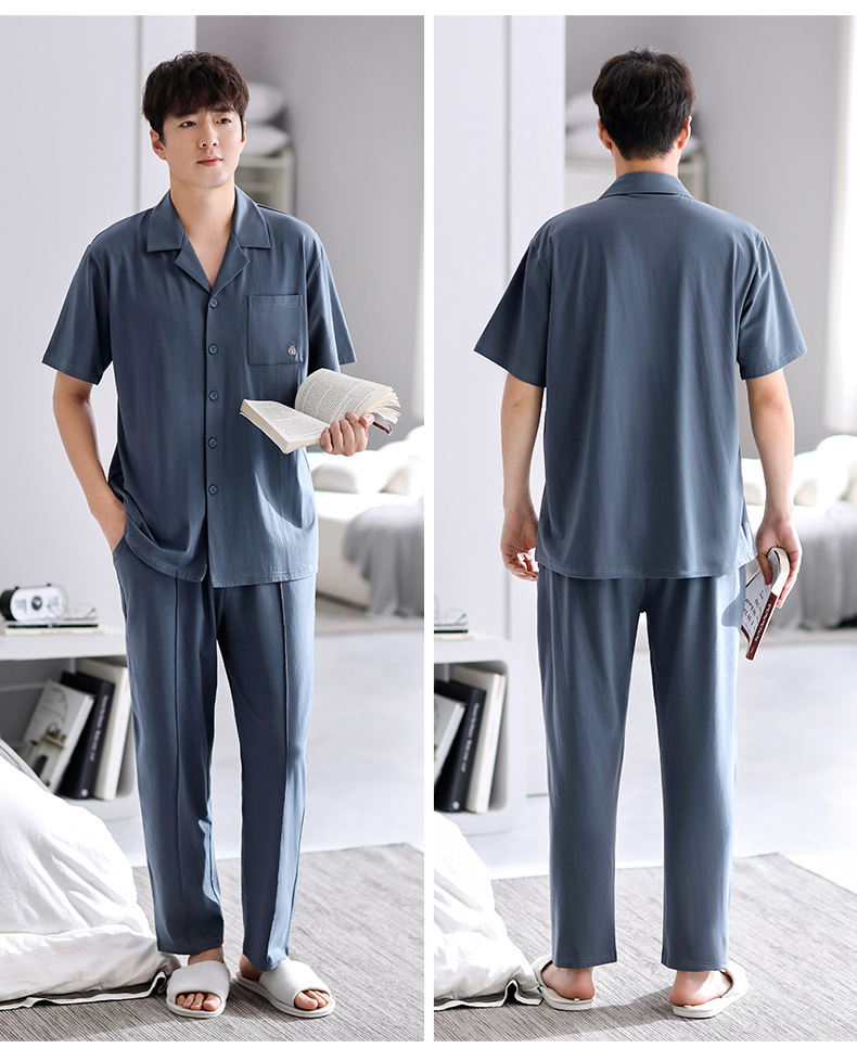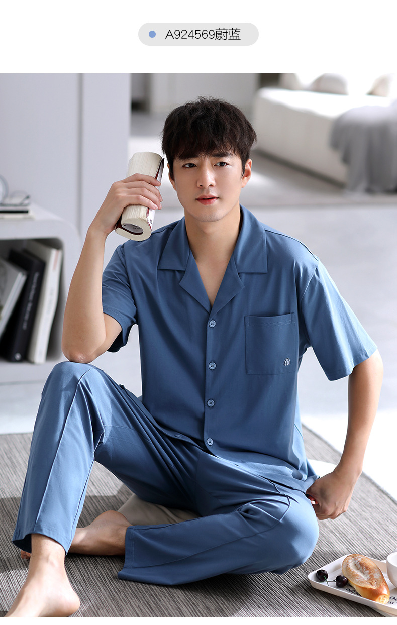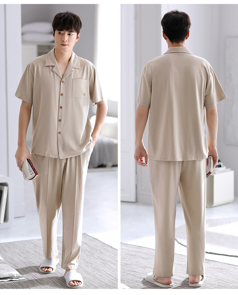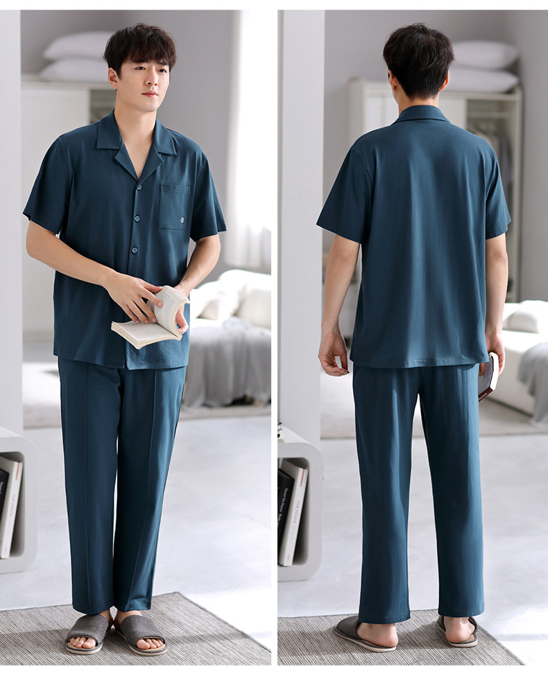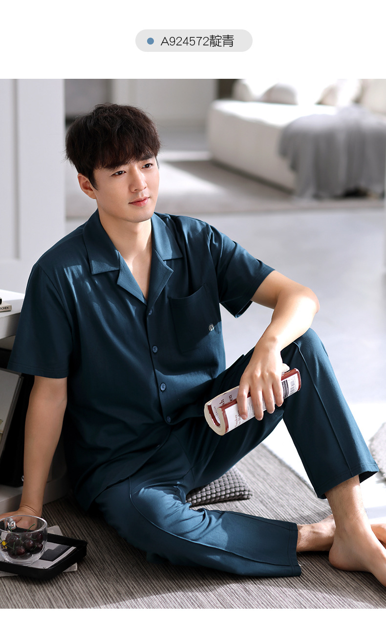 Pijamas de verano para hombre 100% algodón pantalones de manga corta ropa para el hogar traje de verano delgado para hombre más tamaño