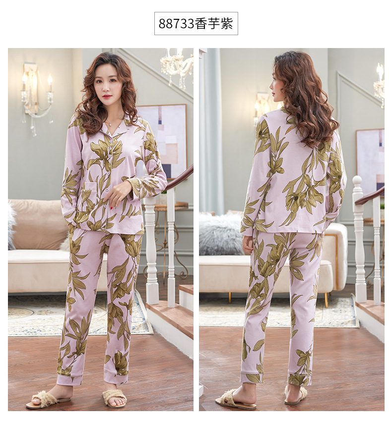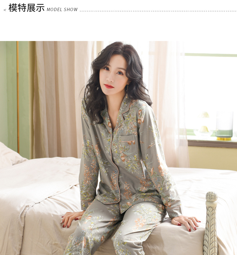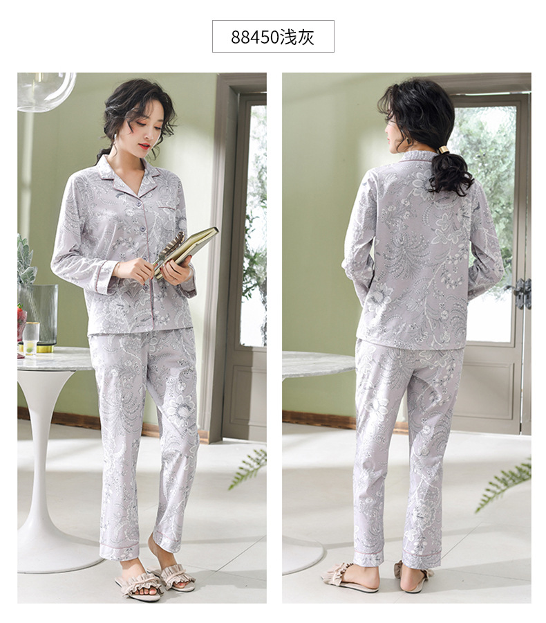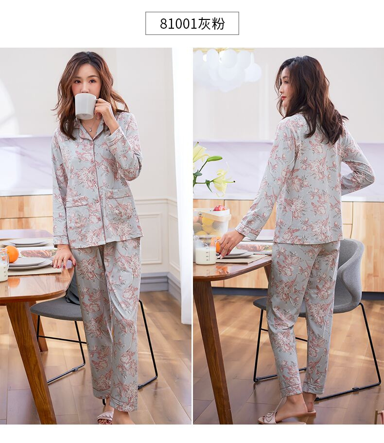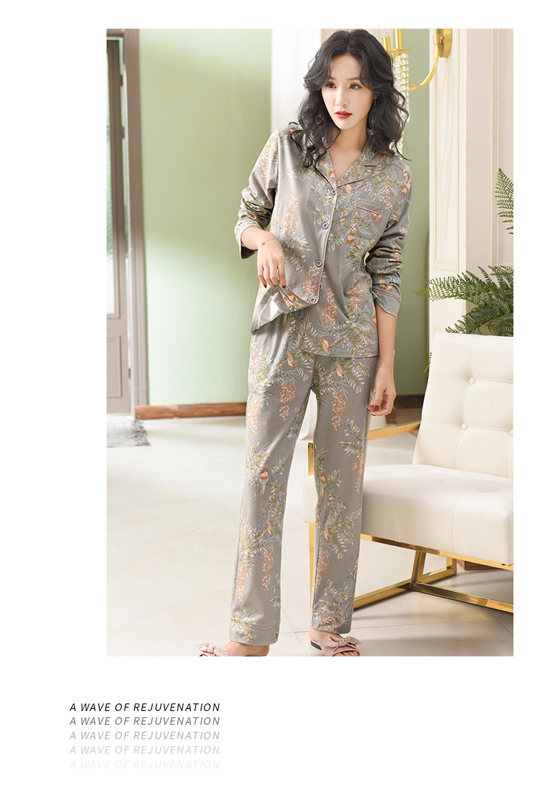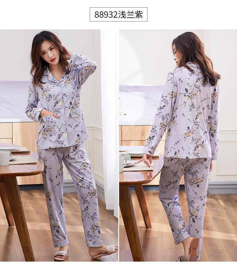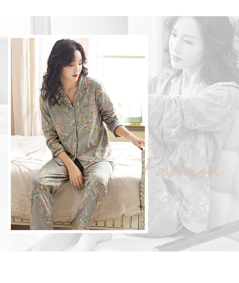Pijamas de las mujeres primavera y otoño primavera manga larga 100% algodón Delgado homewear más tamaño suelto traje de mamá de mediana edad