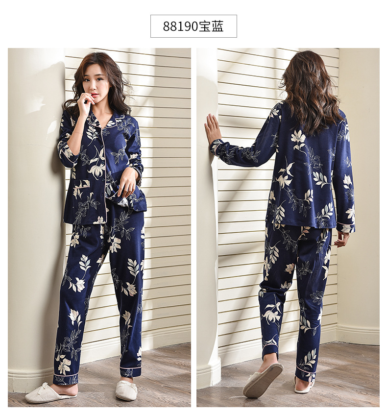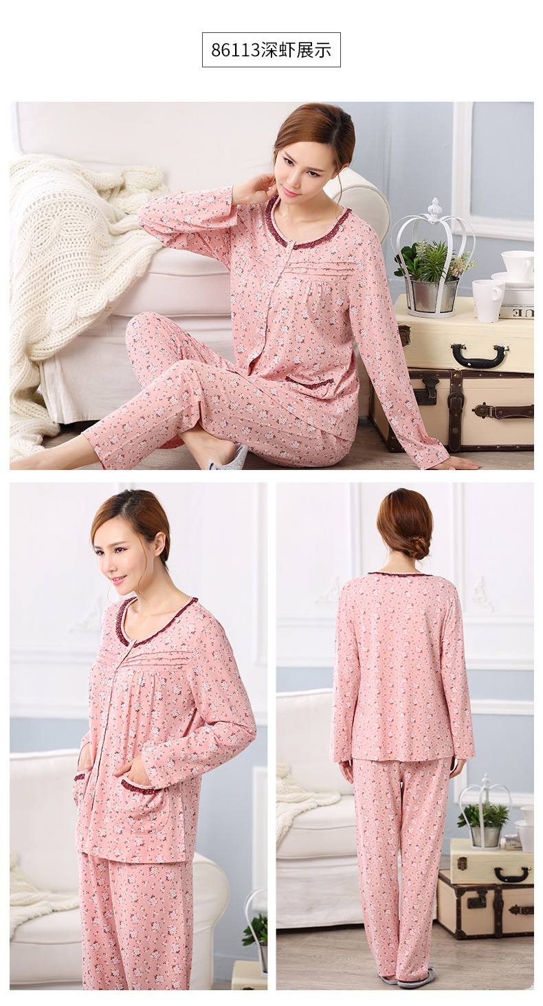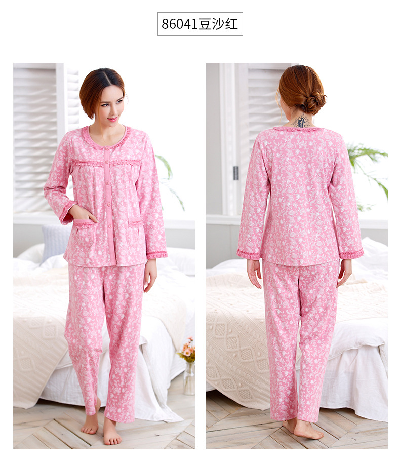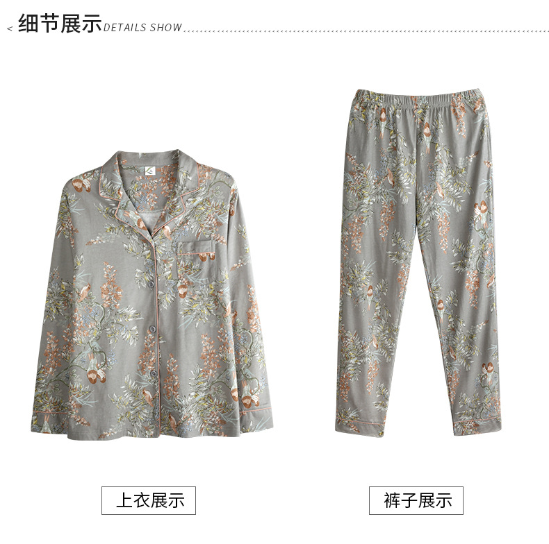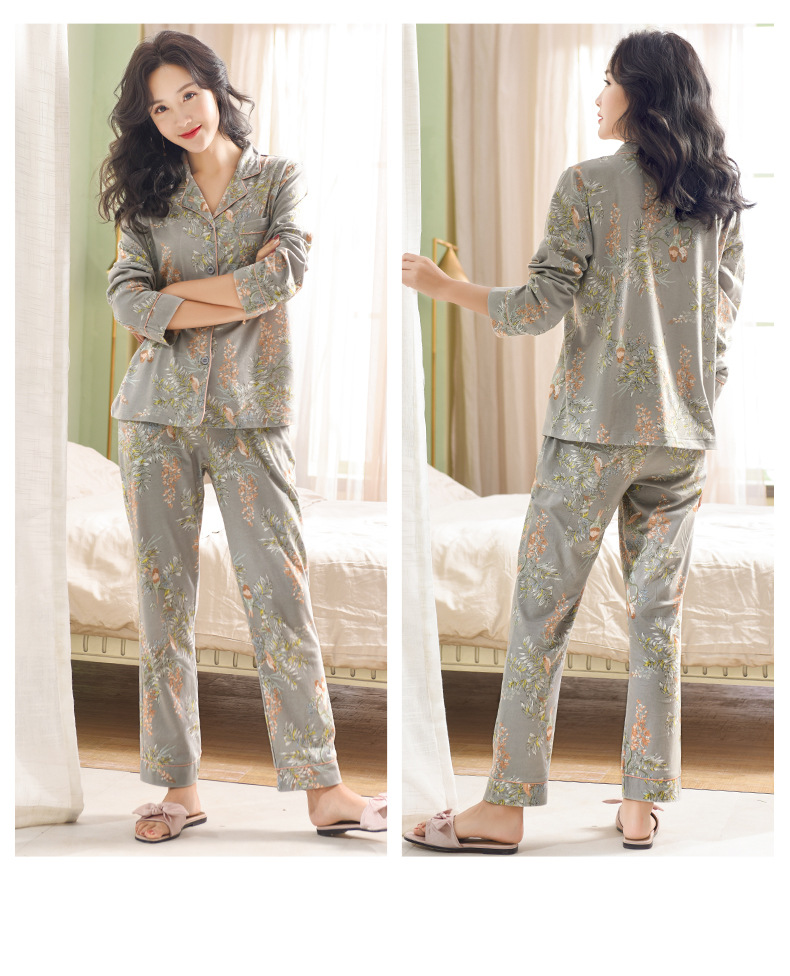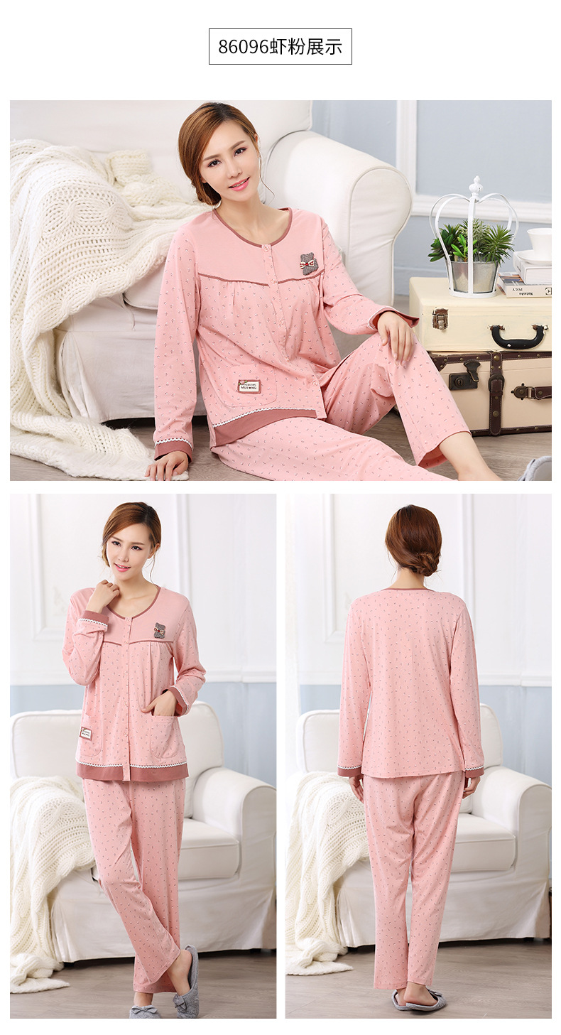 Pijamas de las mujeres primavera y otoño primavera manga larga 100% algodón Delgado homewear más tamaño suelto traje de mamá de mediana edad