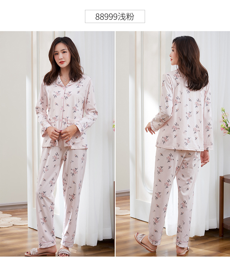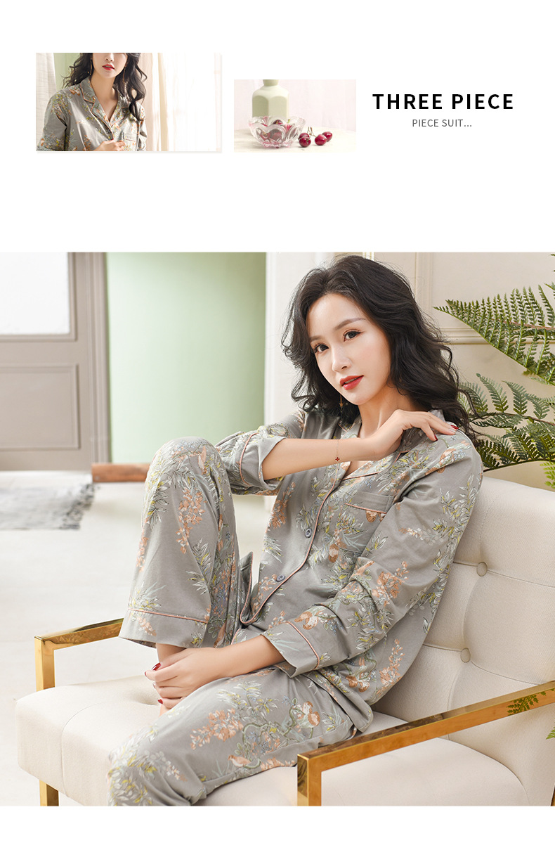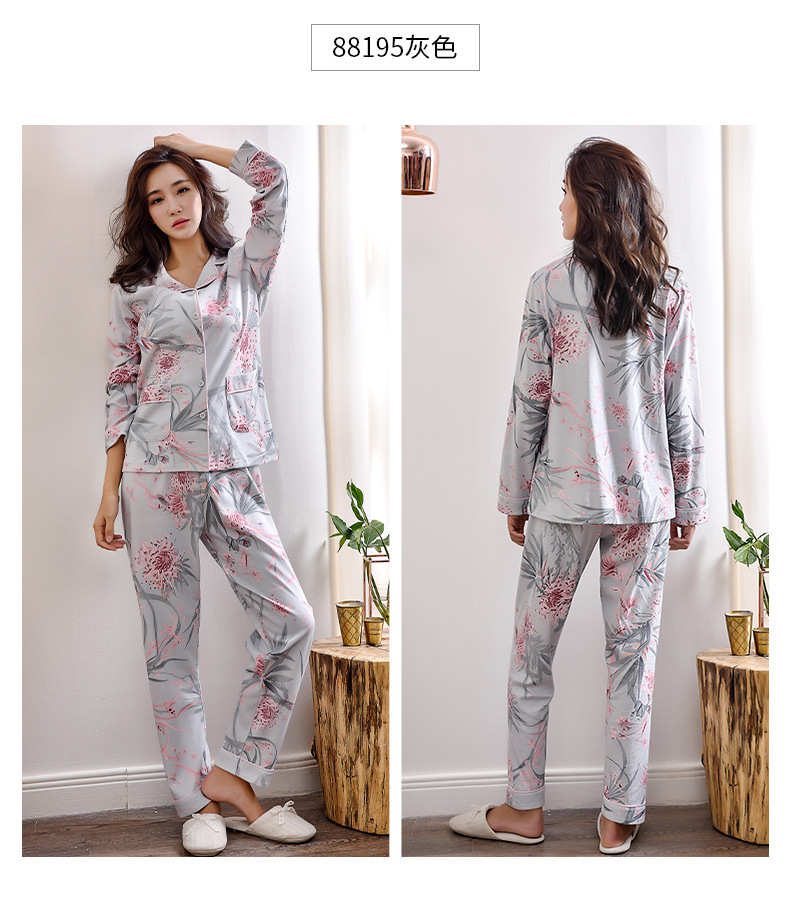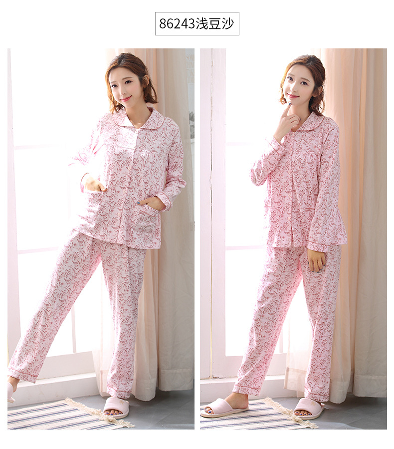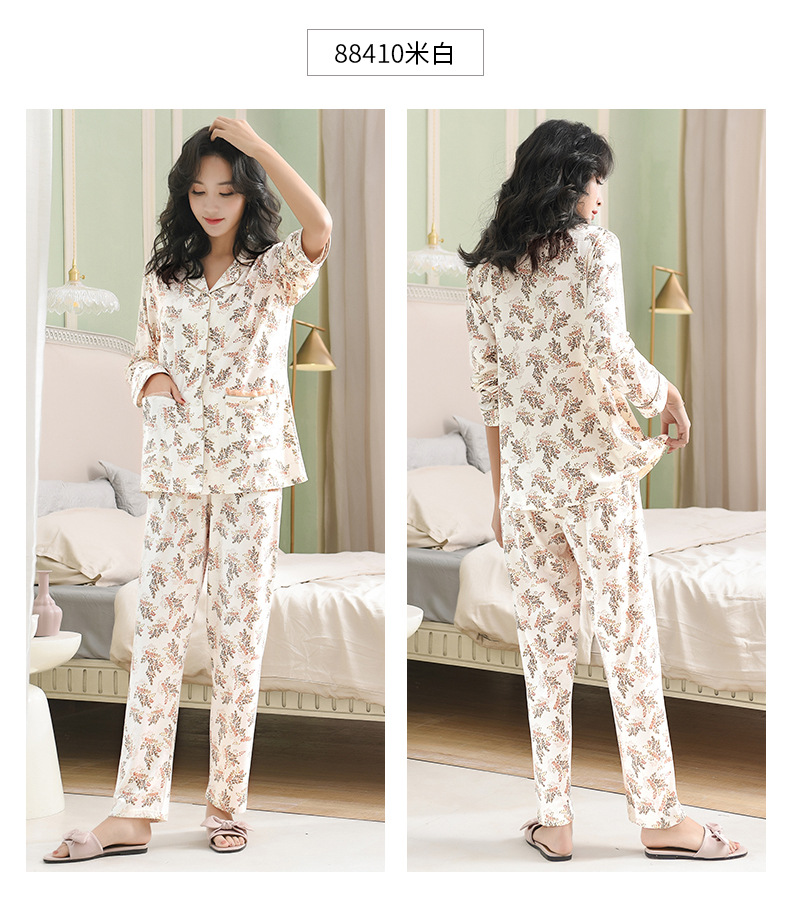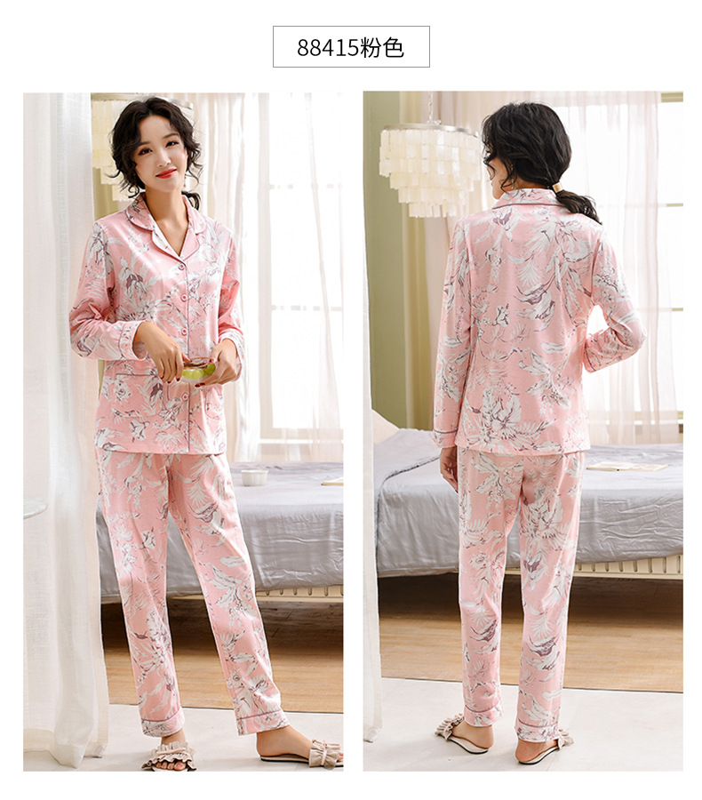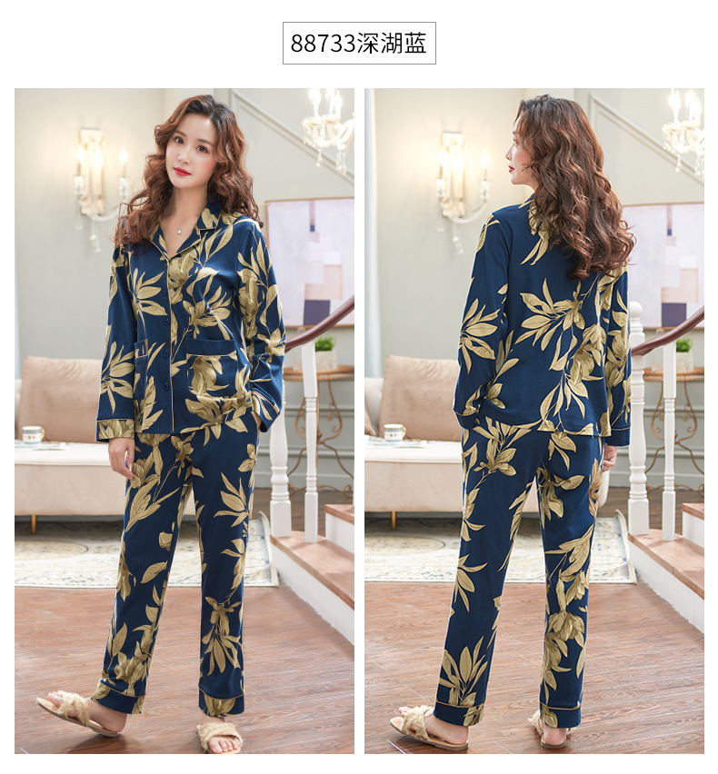 Pijamas de las mujeres primavera y otoño primavera manga larga 100% algodón Delgado homewear más tamaño suelto traje de mamá de mediana edad