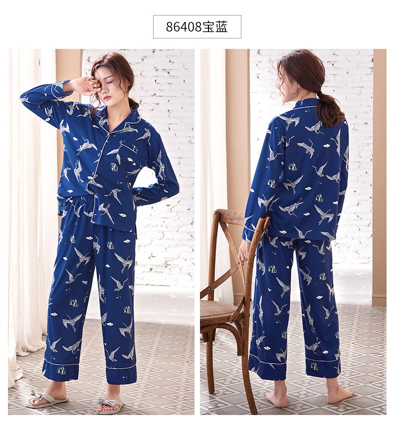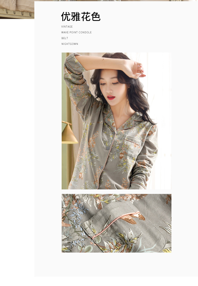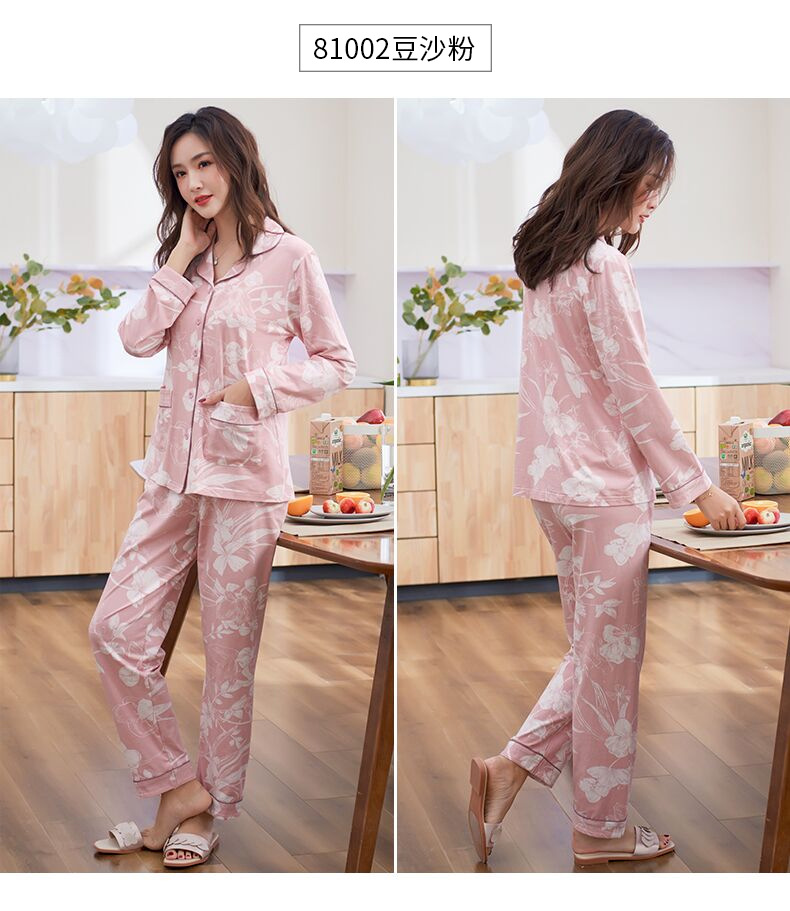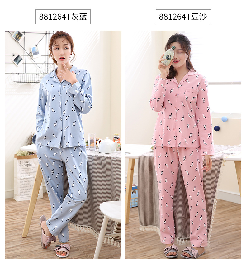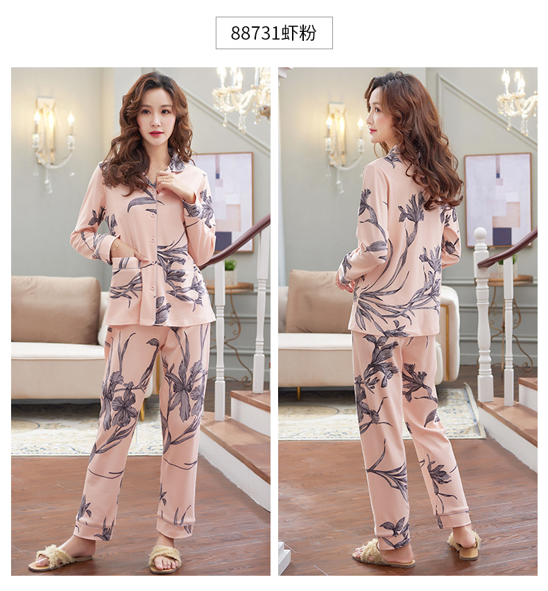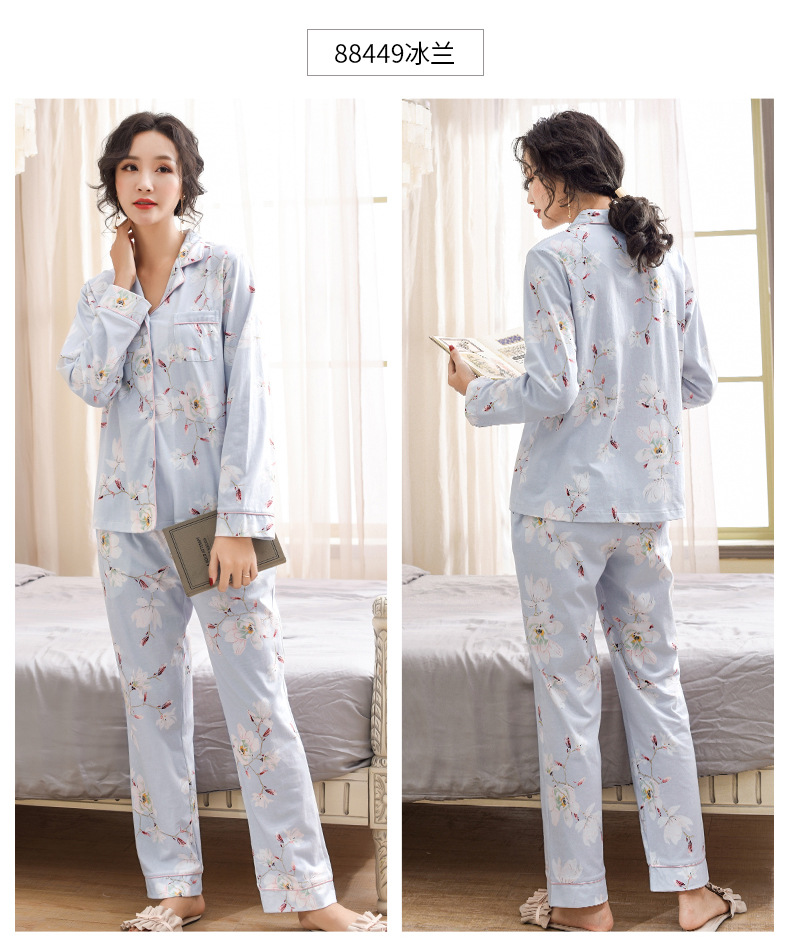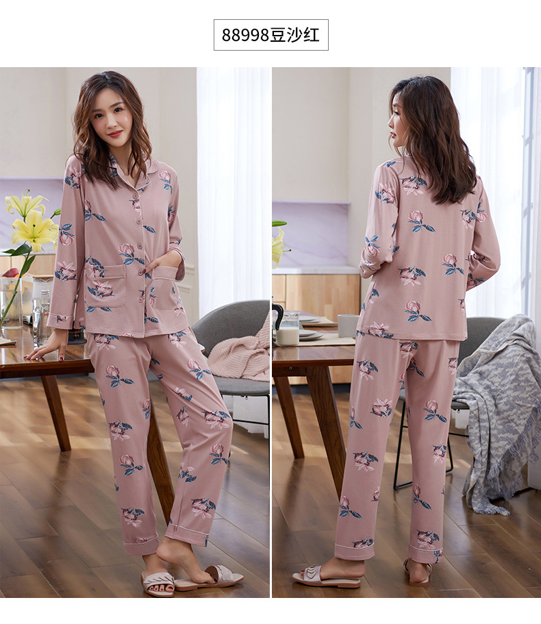 Pijamas de las mujeres primavera y otoño primavera manga larga 100% algodón Delgado homewear más tamaño suelto traje de mamá de mediana edad