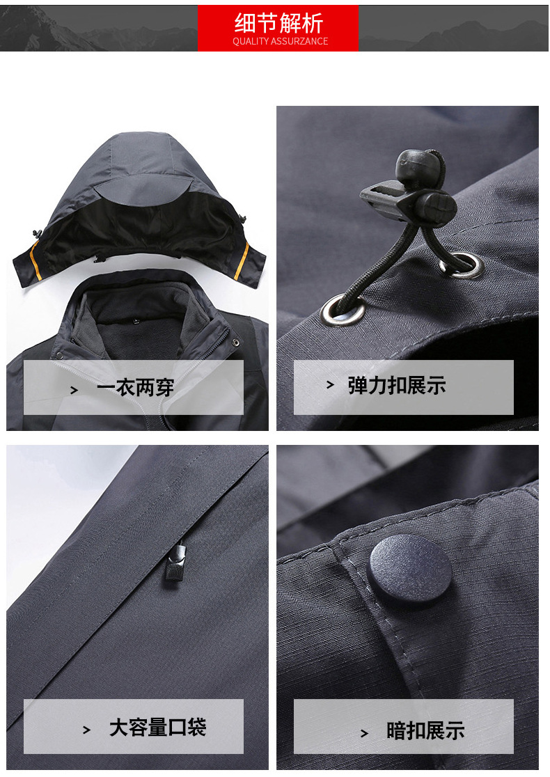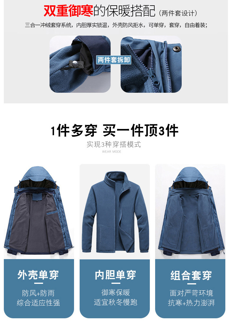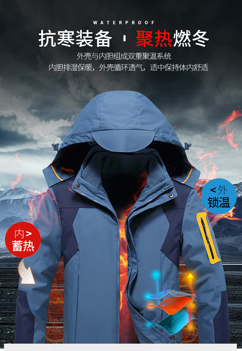 Chaqueta al aire libre tres en uno para mujer desmontable otoño e invierno con forro polar cálido traje de Montañismo a prueba de viento abrigo transpirable para hombres
