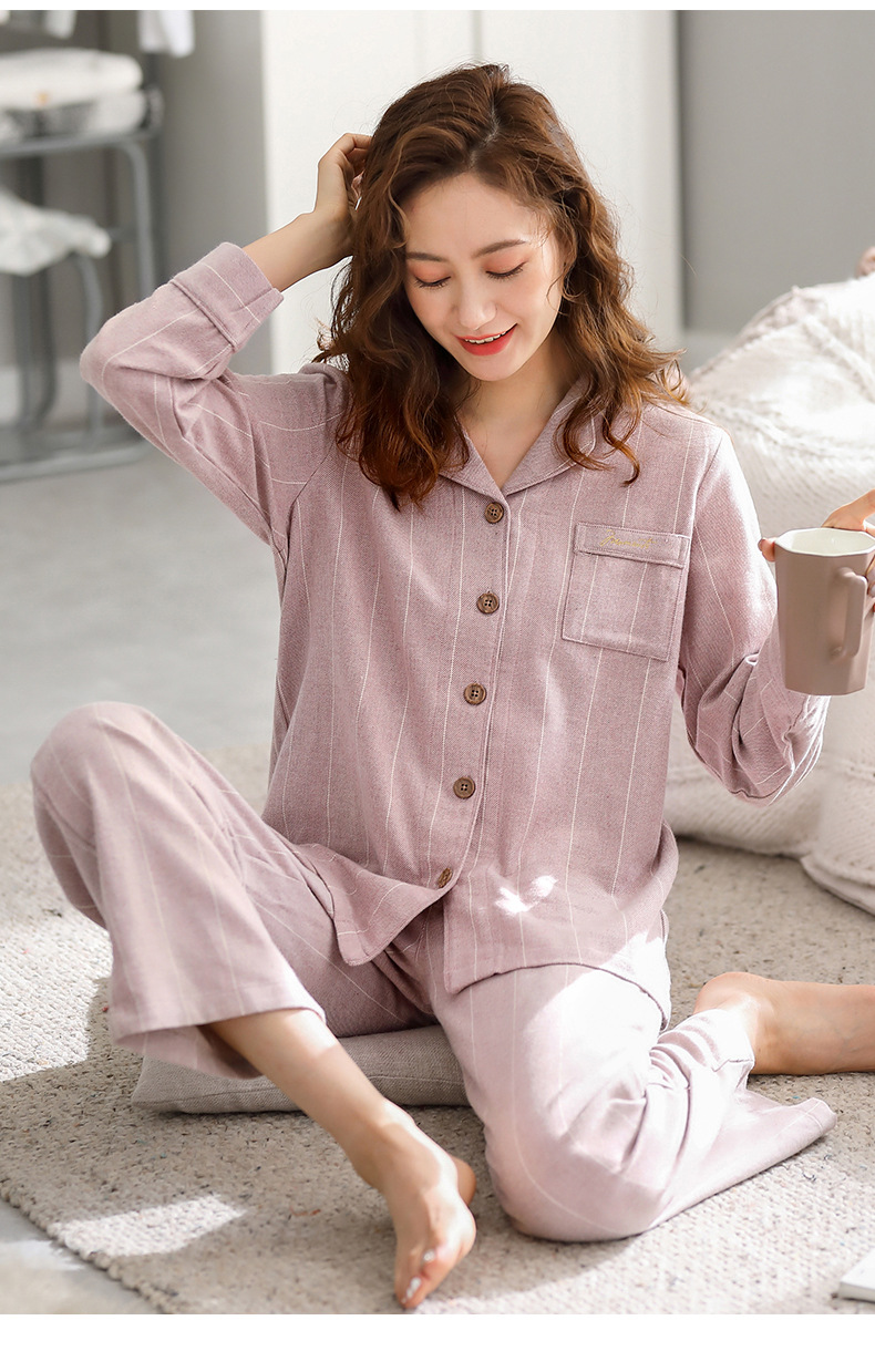 Pijamas de mujer primavera y otoño 100% algodón de manga larga ropa para el hogar Otoño e Invierno traje fino de talla grande