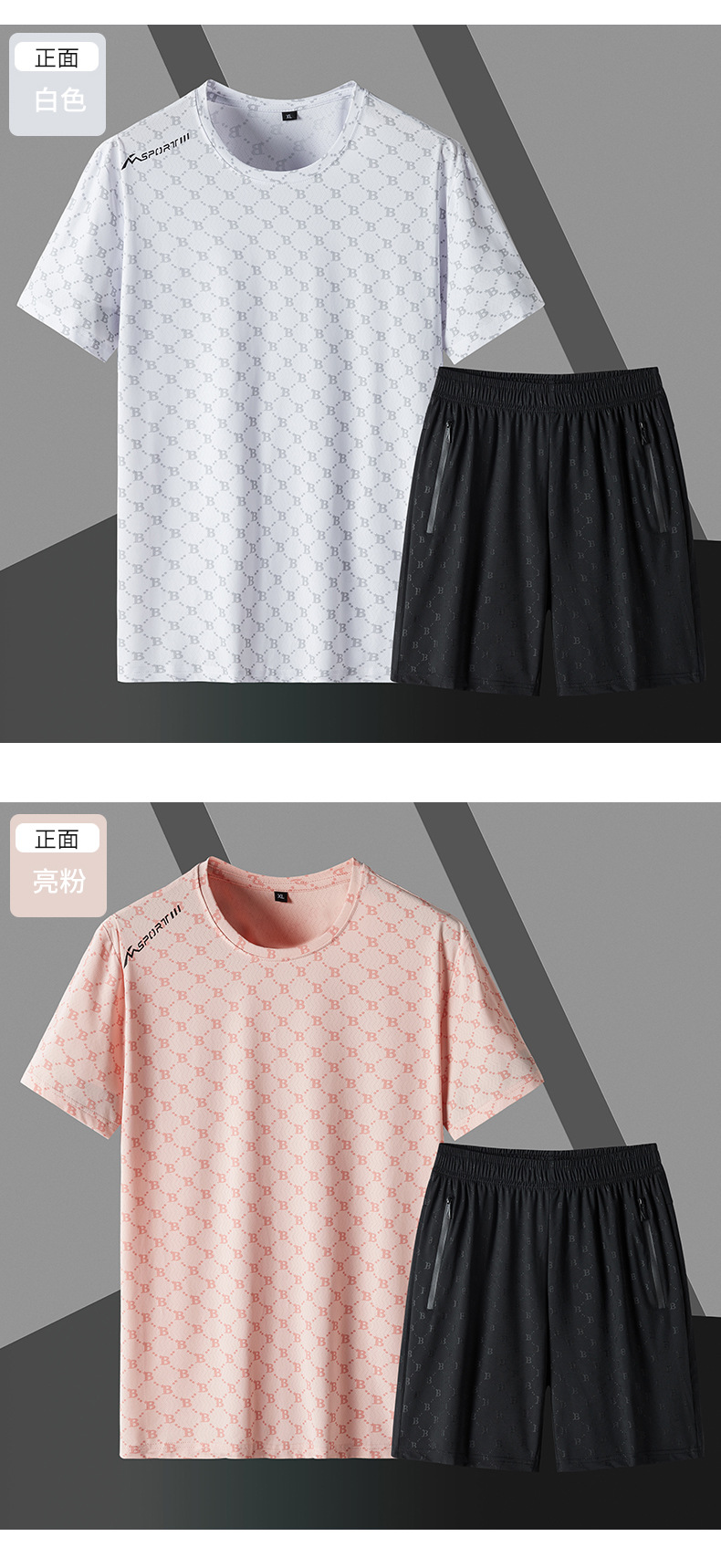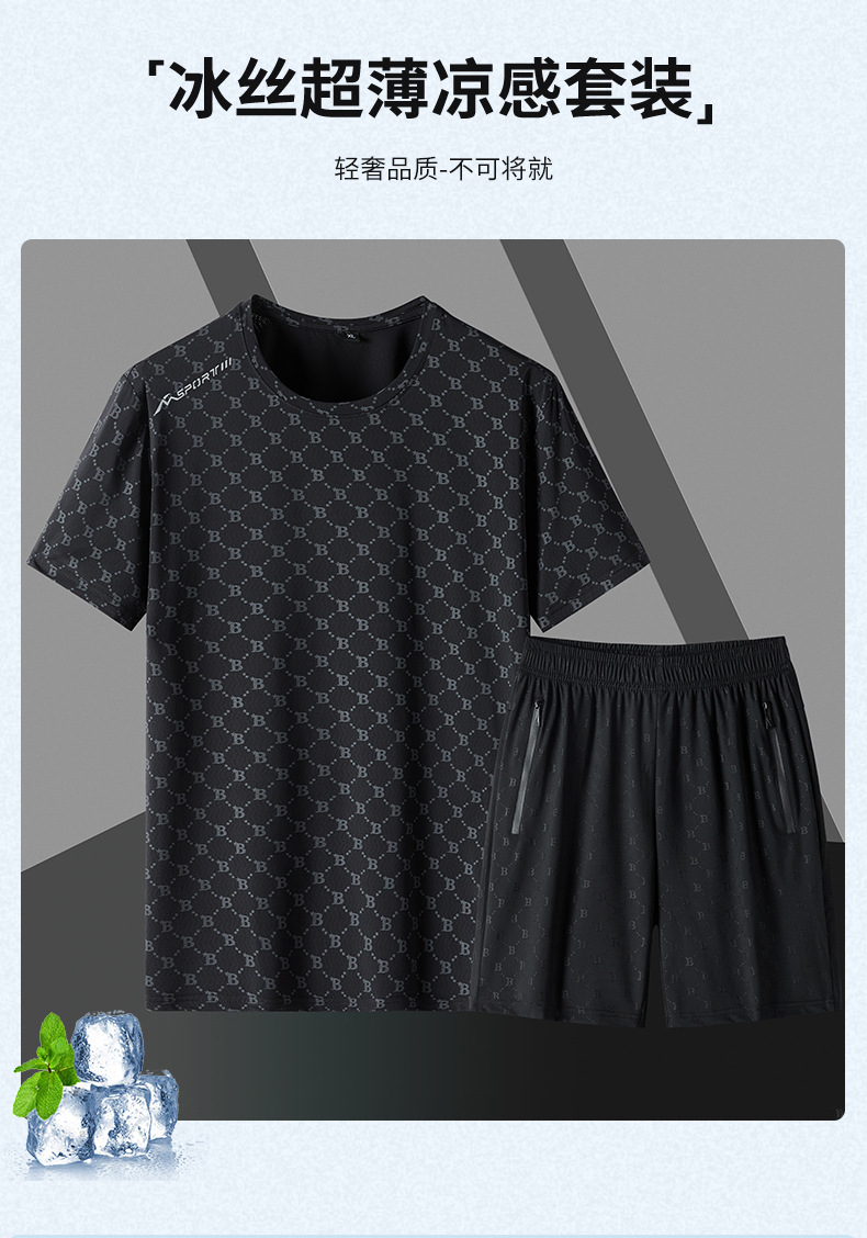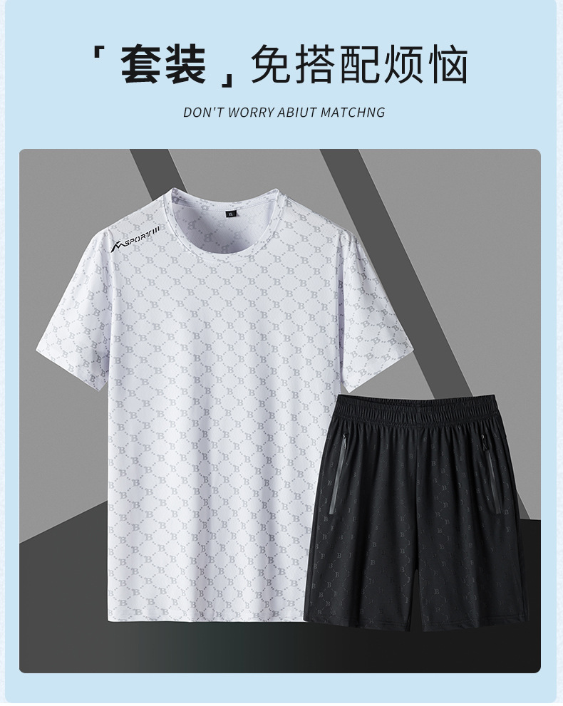 Traje deportivo de ocio de verano para hombre de seda de hielo de manga corta Camiseta pantalones cortos de dos piezas nuevo aire acondicionado de secado rápido conjunto corto venta al por mayor