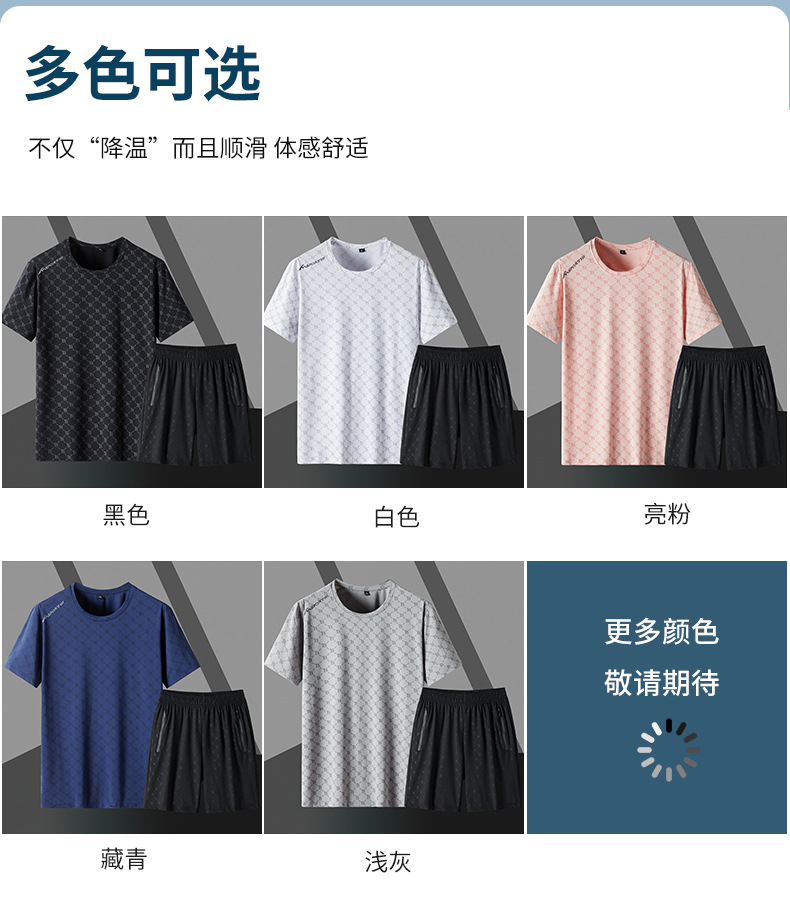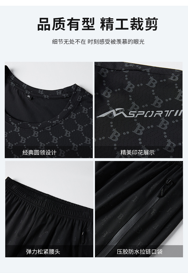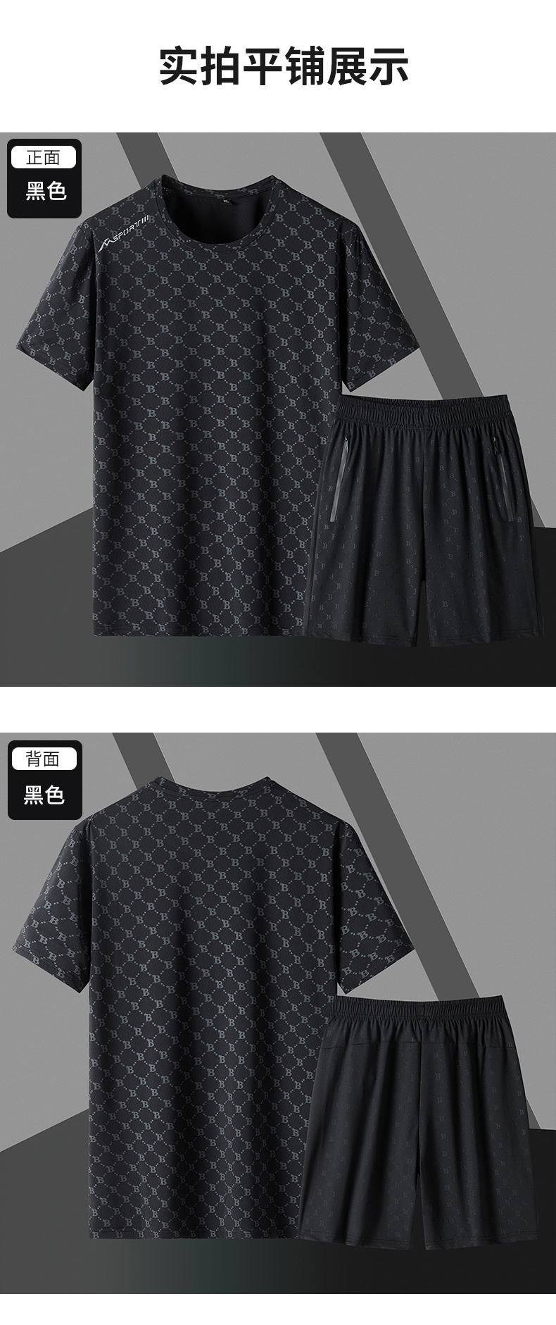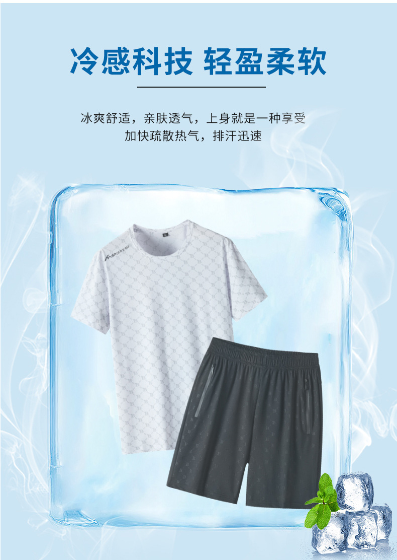 Traje deportivo de ocio de verano para hombre de seda de hielo de manga corta Camiseta pantalones cortos de dos piezas nuevo aire acondicionado de secado rápido conjunto corto venta al por mayor