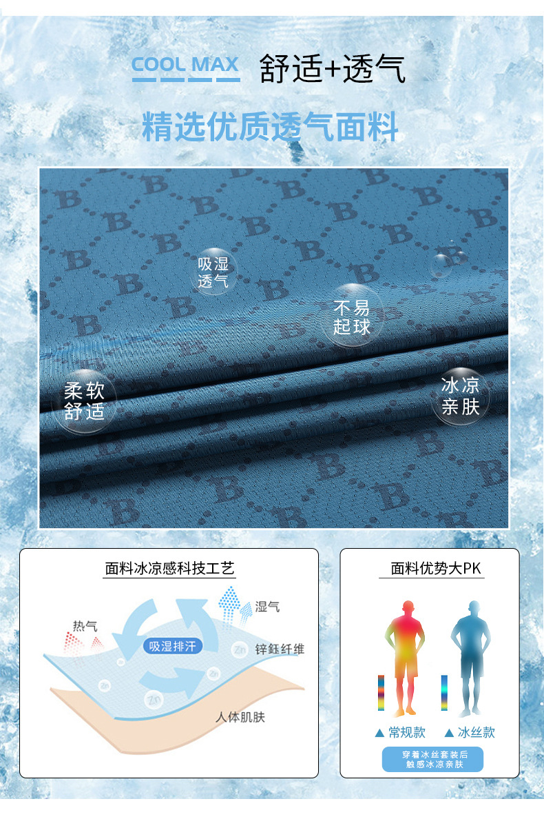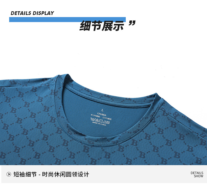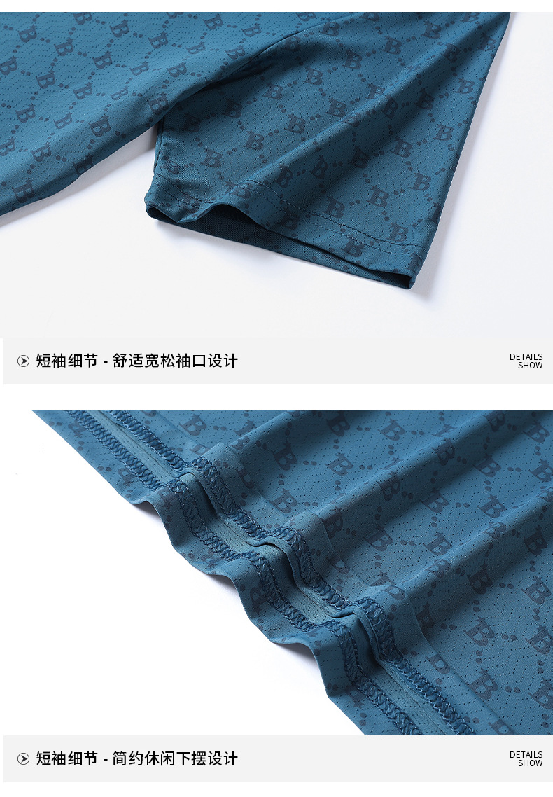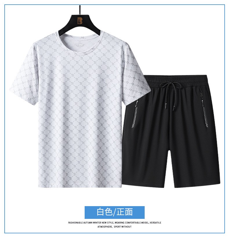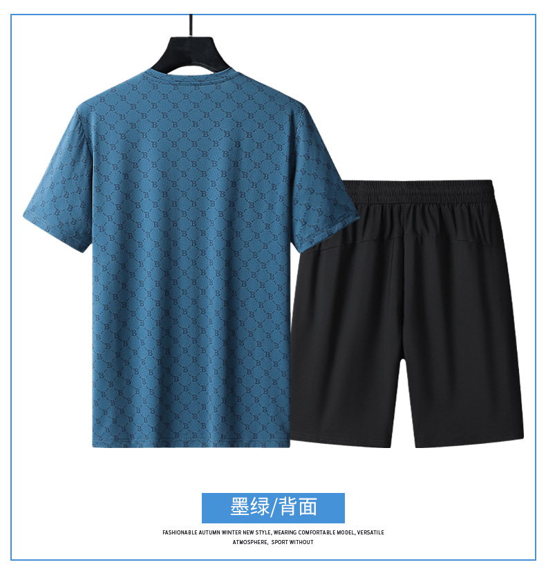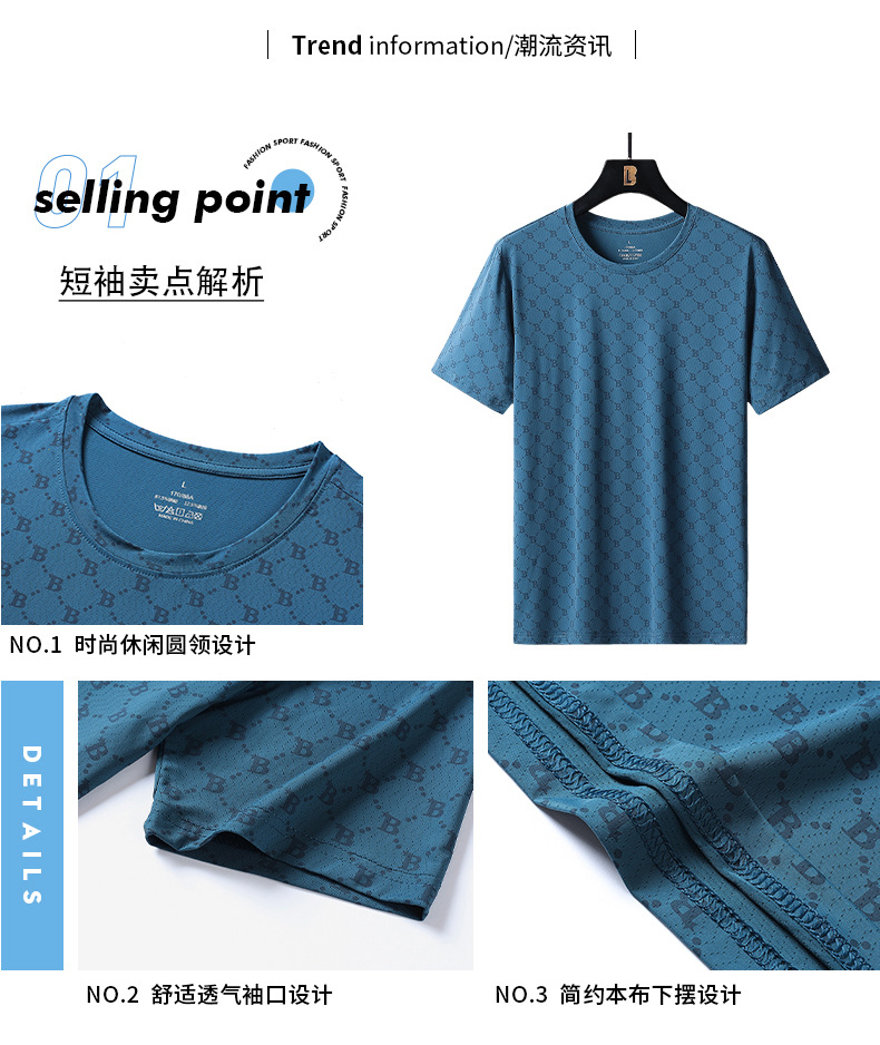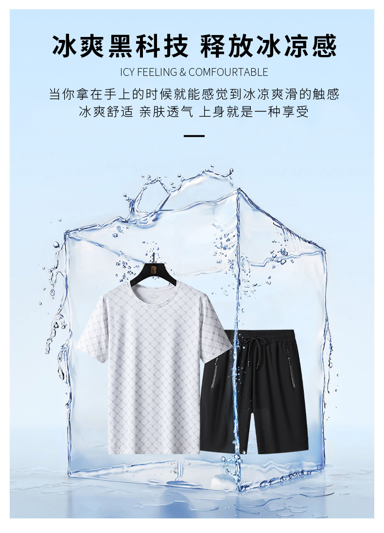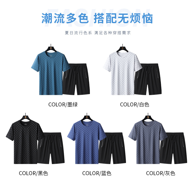 Nuevo traje de manga corta de seda de hielo para hombre Camiseta fresca de verano ropa de secado rápido cuello redondo traje de manga corta