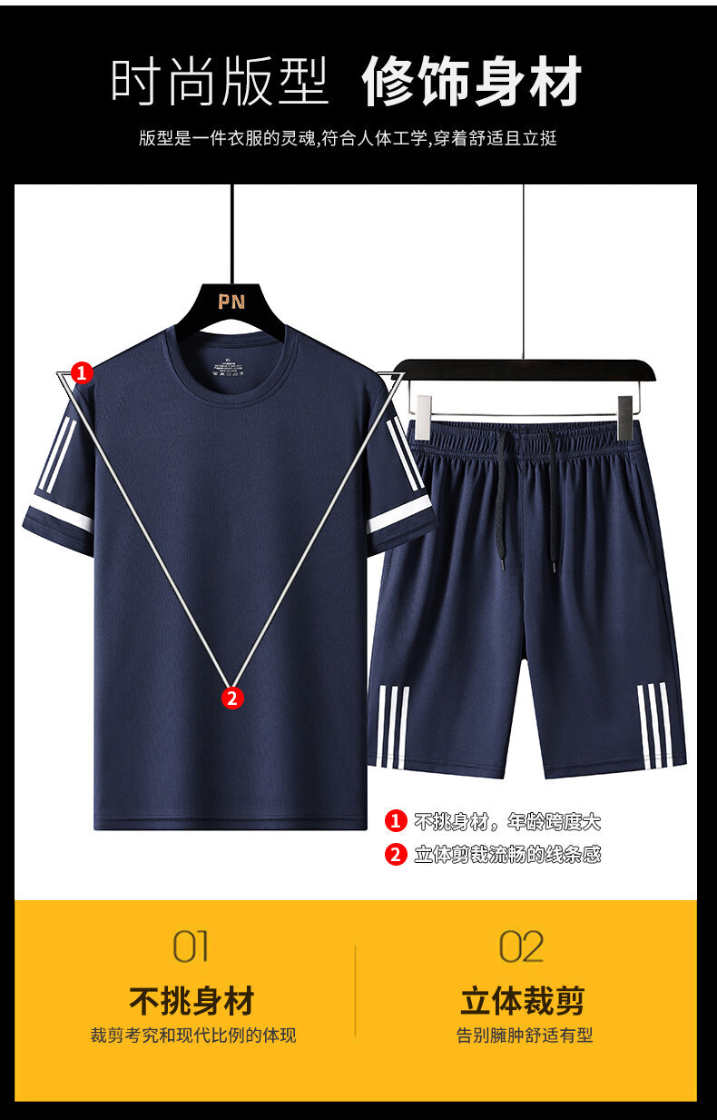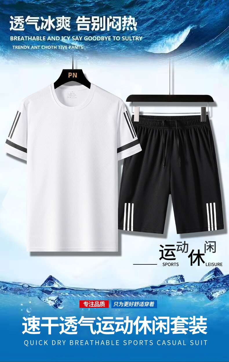 Cross-border 2023 nuevo traje deportivo de manga corta para hombres de verano corriendo traje suelto de dos piezas de secado rápido