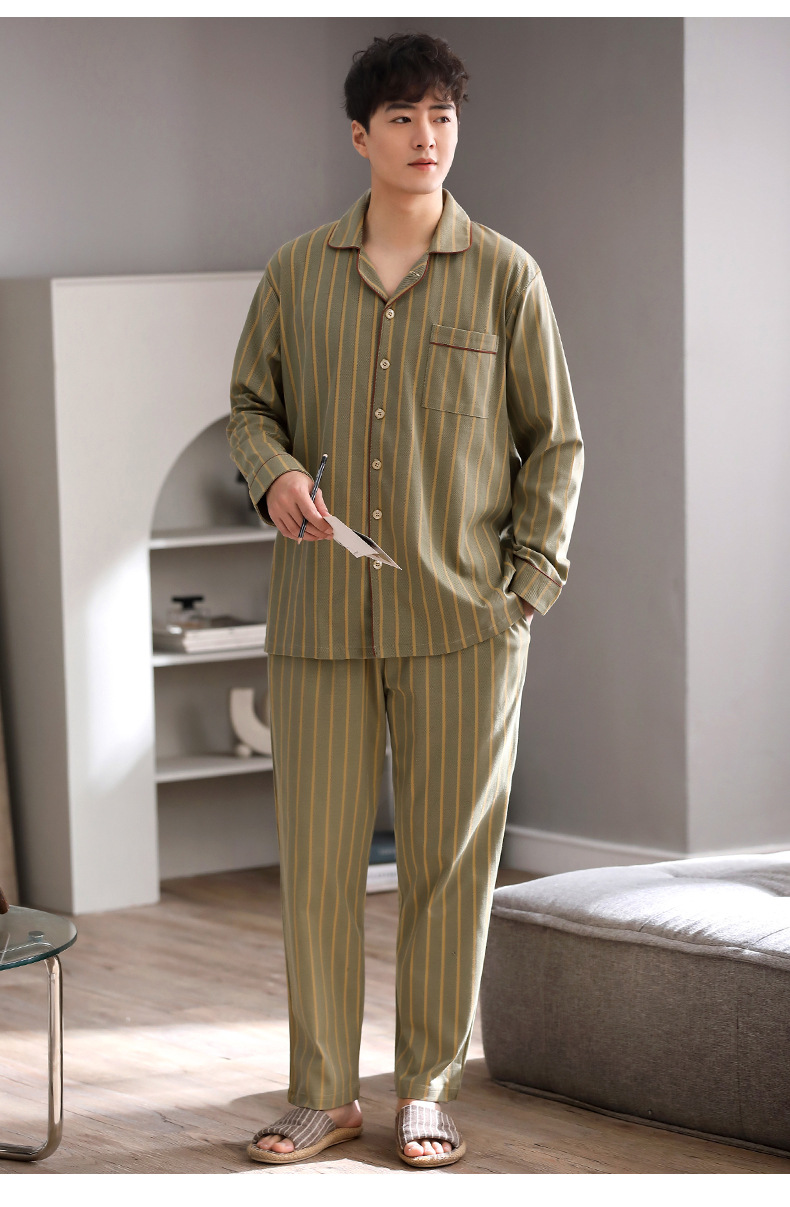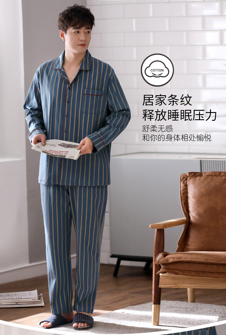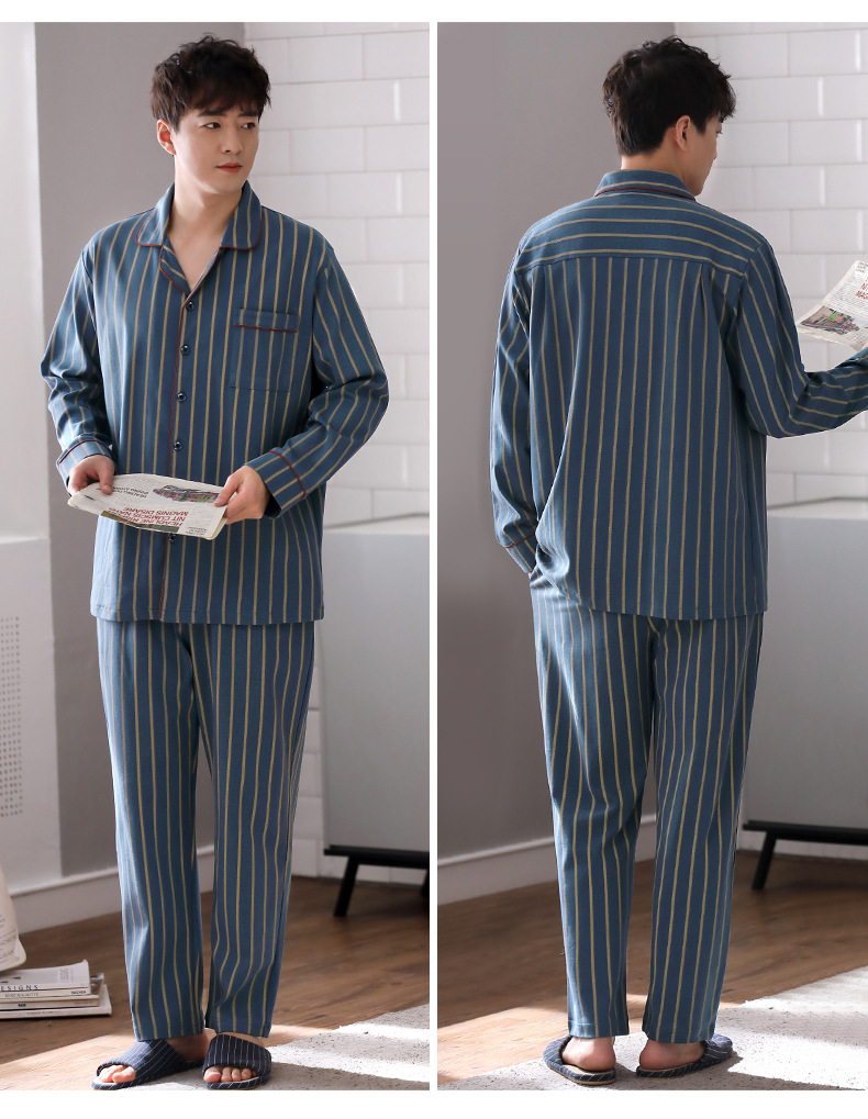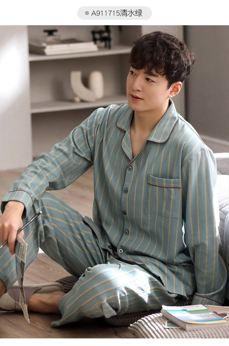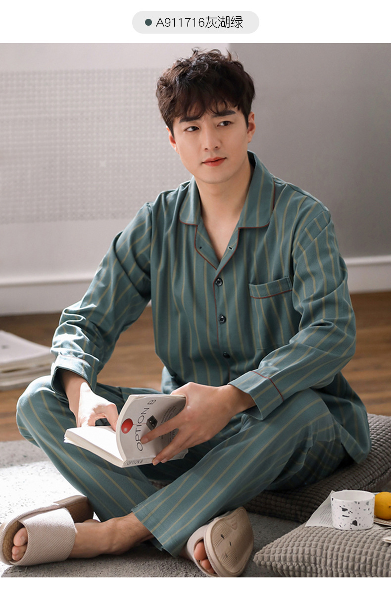 2023 nuevos pijamas de los hombres de primavera y otoño 100% algodón de manga larga ropa de los hombres cuatro estaciones traje fino